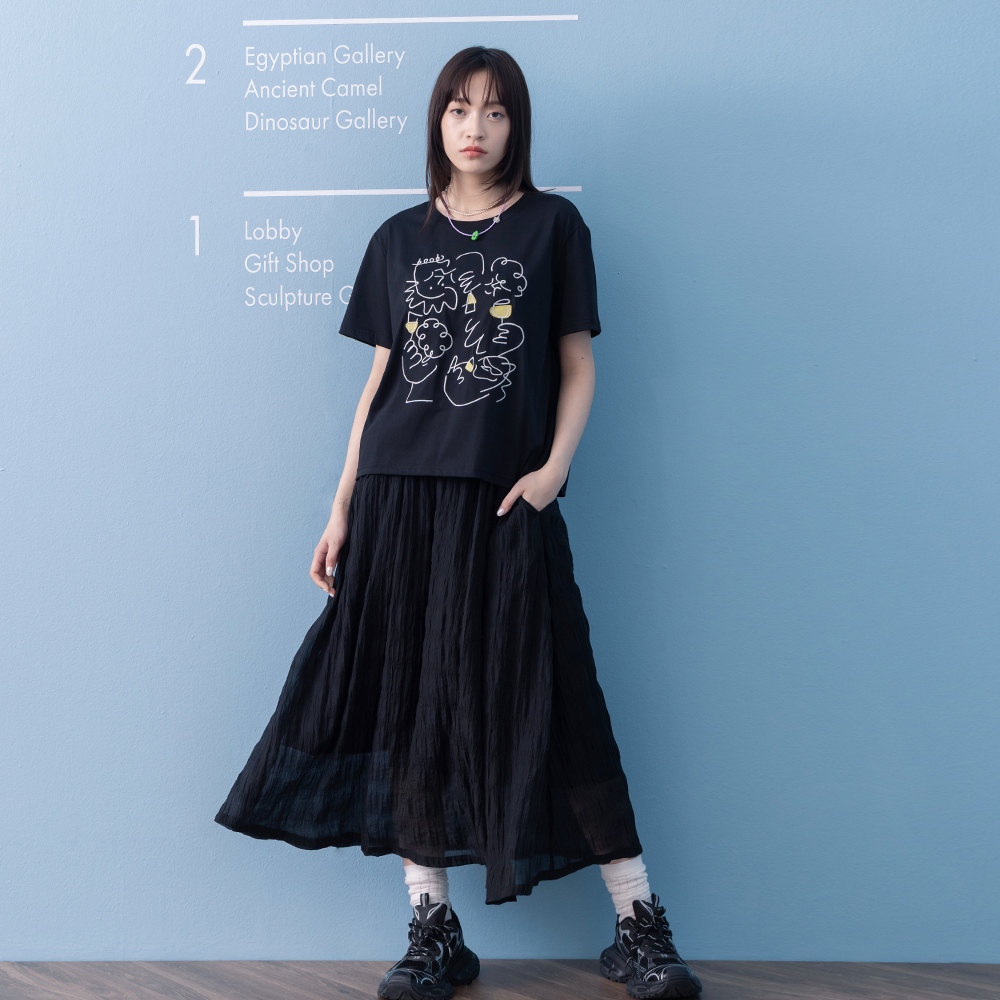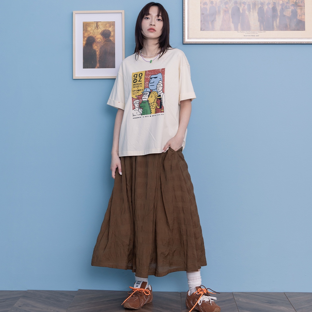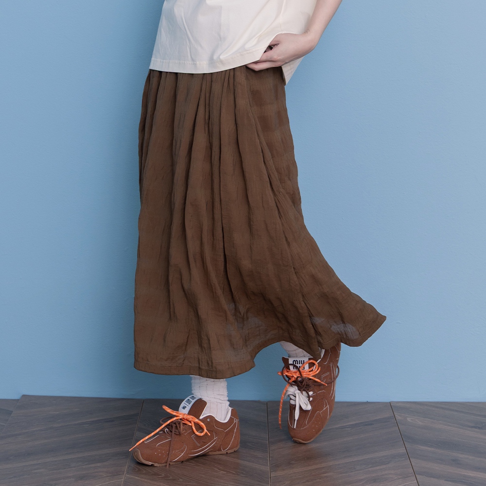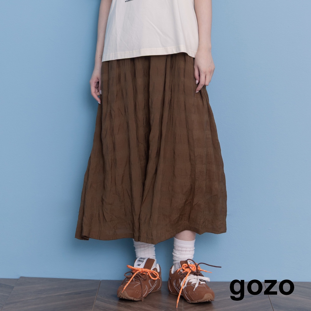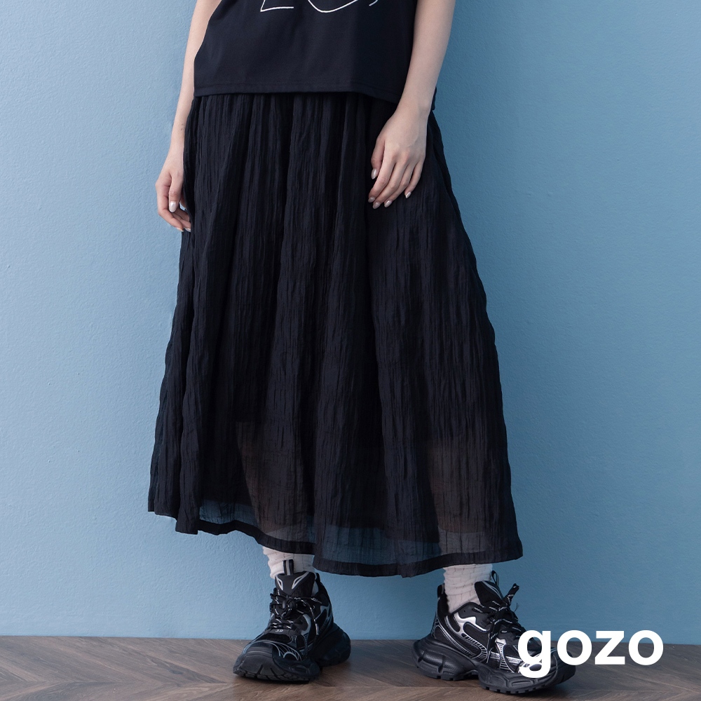 【gozo】➤涼感天絲皺皺紋理圓裙(黑色/深綠_F) | 女裝 顯瘦 休閒黑色,F|深綠,Fgozo 品牌旗艦店