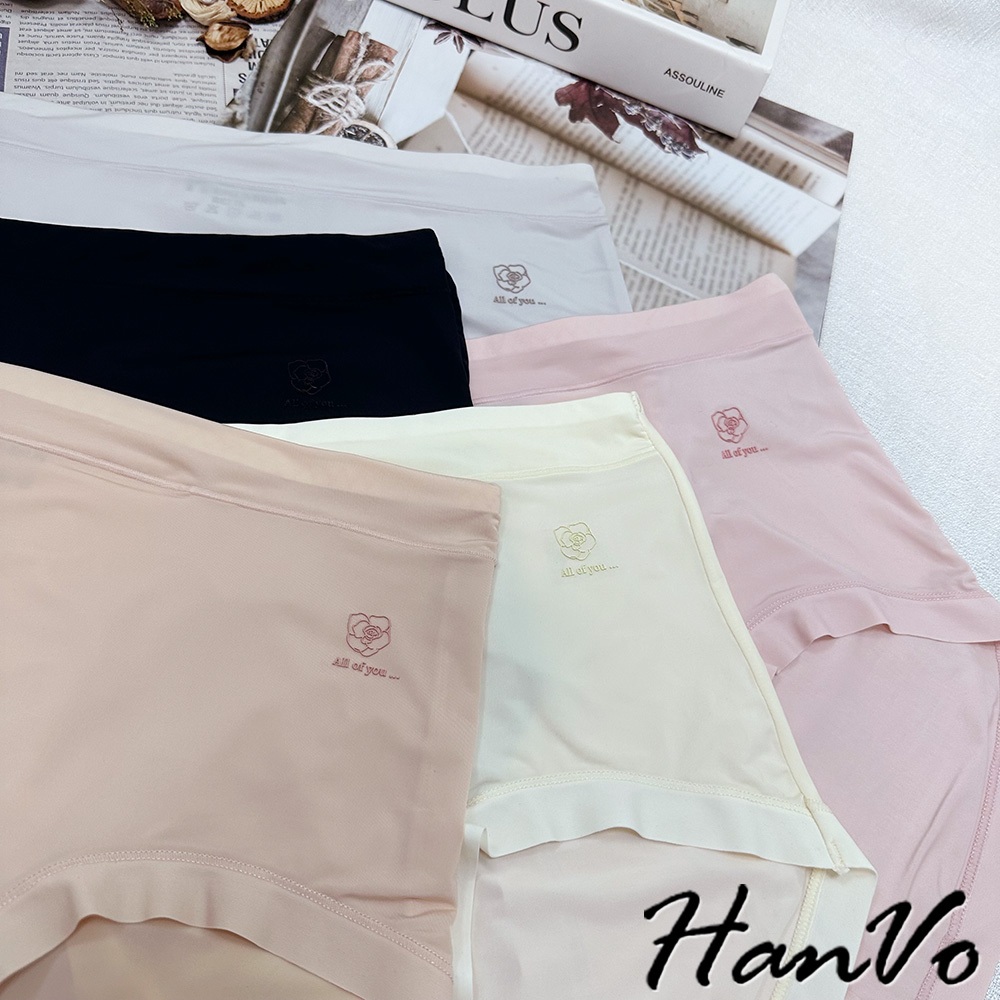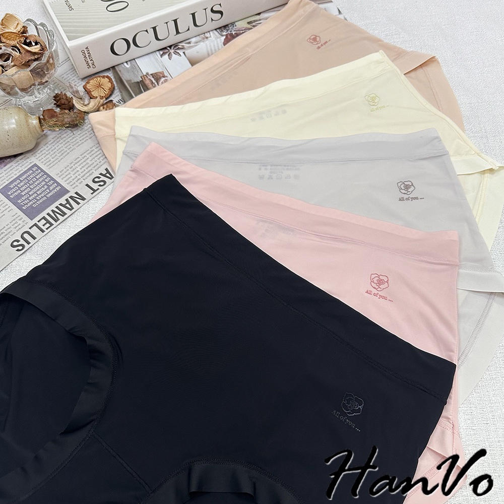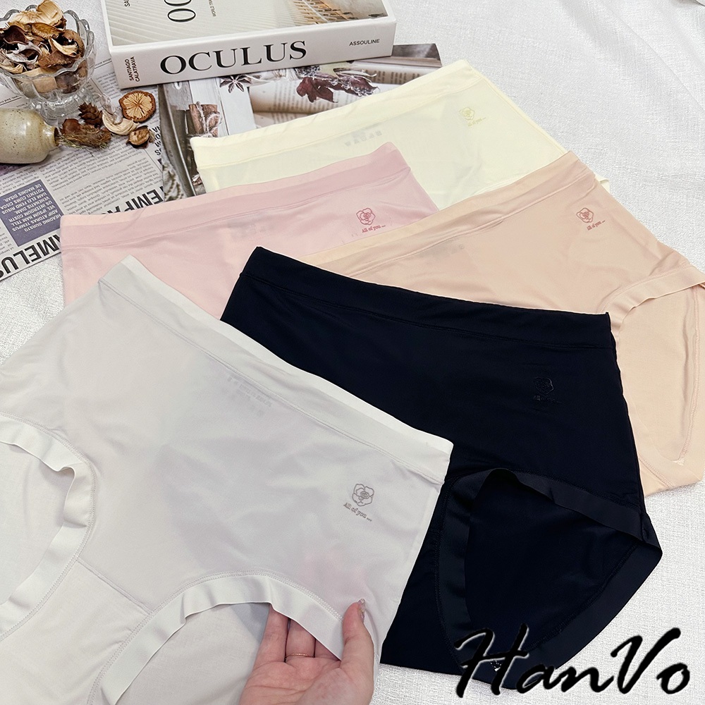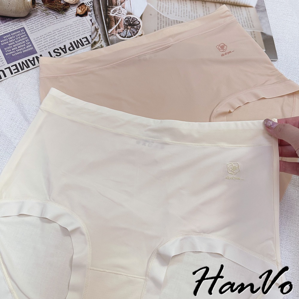 【HanVo】單朵花素色高腰加大尺碼冰絲內褲 獨立包裝 速乾涼感輕薄三角褲 冰絲內褲 女生內褲 內褲 A11-5249花瓣粉|甜粉橘|香檸黃|午夜黑|靜謐灰PantiesHanVo Wear Collection