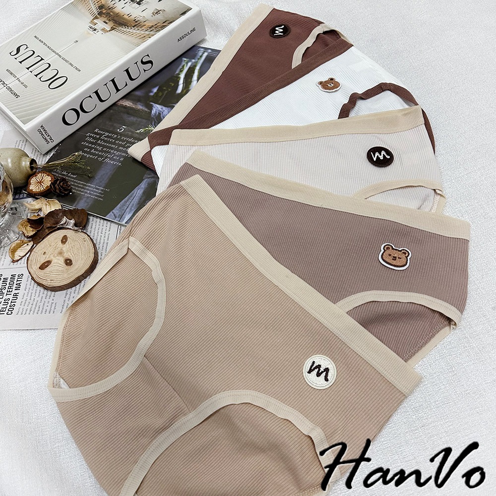 【HanVo】奶咖巧克力小熊棉質內褲 吸濕排汗底襠 獨立包裝 零束縛包臀中腰內褲 女生內褲 內褲 A11-5849NG福利品(不挑色不退貨)|柔和杏|奶茶棕|深木咖|杏仁白|可可咖PantiesHanVo Wear Collection
