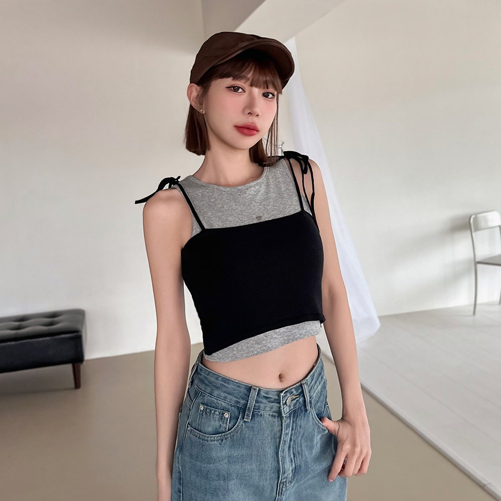 LULUS/現貨/針織肩綁帶平口背心4色【A01250530】疊穿 細肩 250702灰|黑|藍|白Tanks & CamisolesLULUS