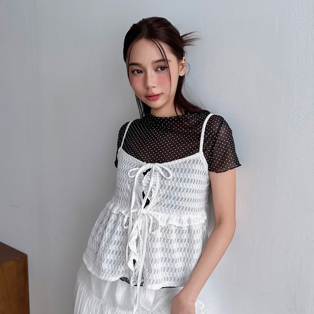 LULUS/細肩菱格紋前綁帶罩衫4色【A03250057】250730