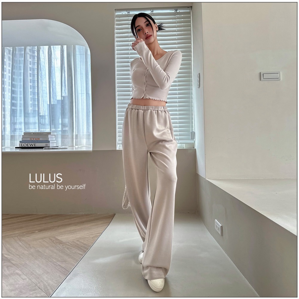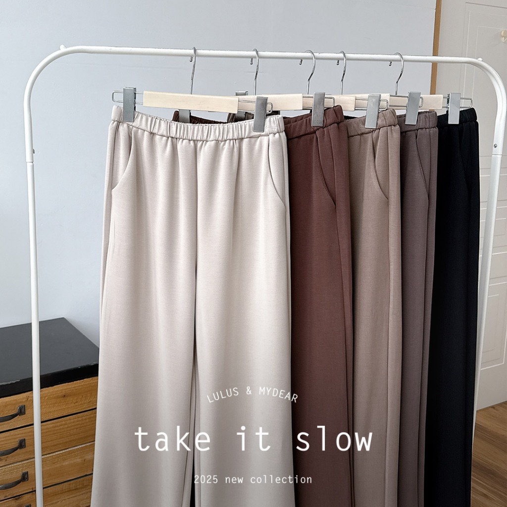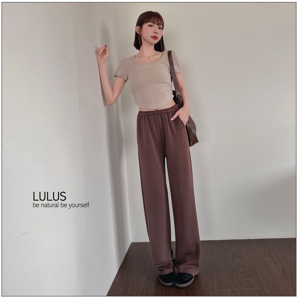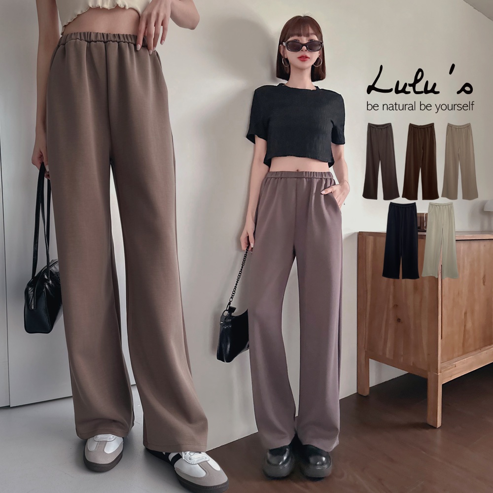 LULUS/太空輕柔棉褲頭窄鬆緊帶休閒寬鬆長褲5色【A04250003】口袋250213灰杏|灰綠|咖|黑|灰PantsLULUS