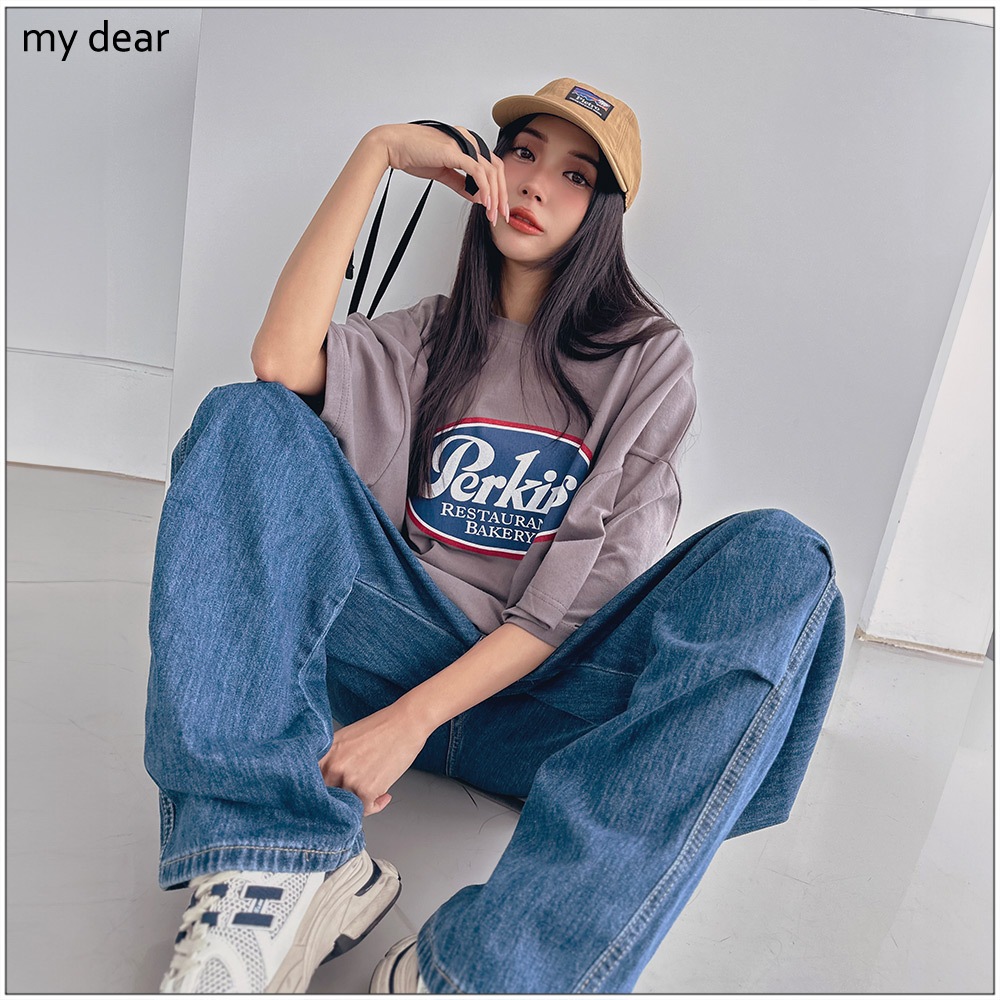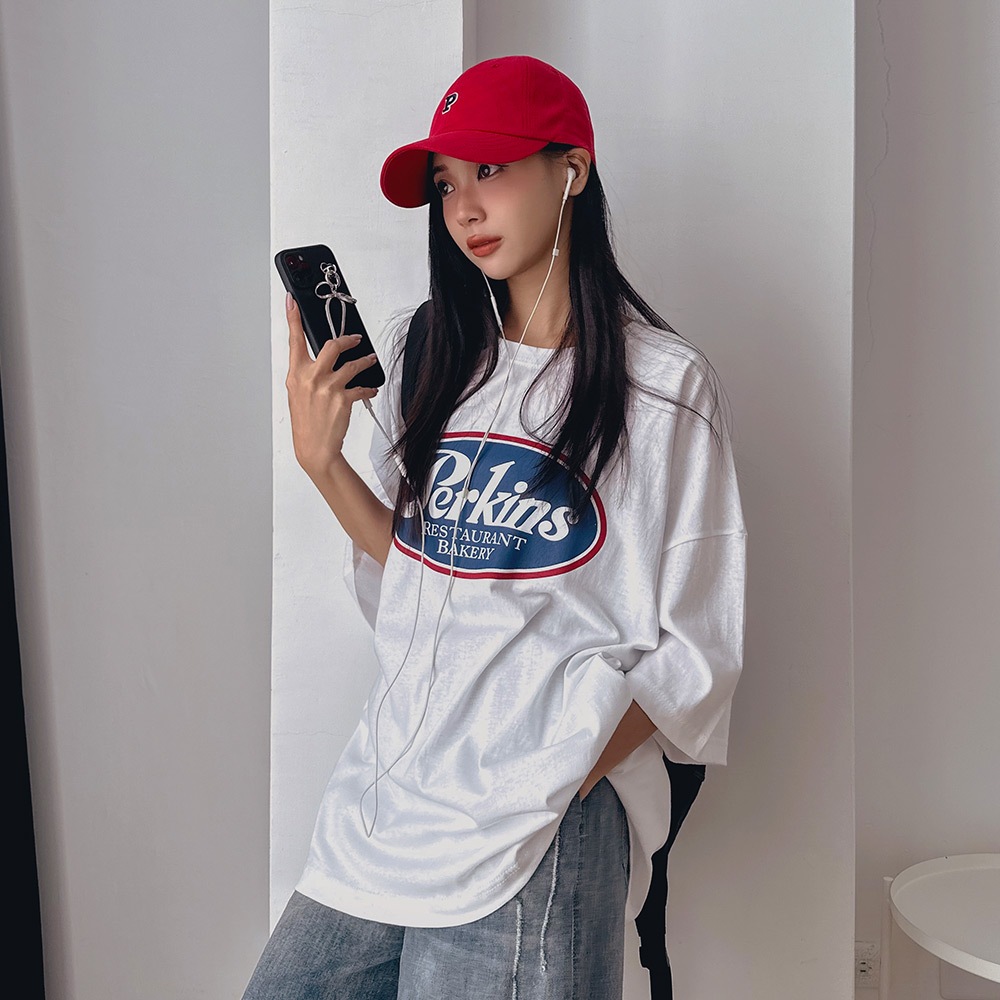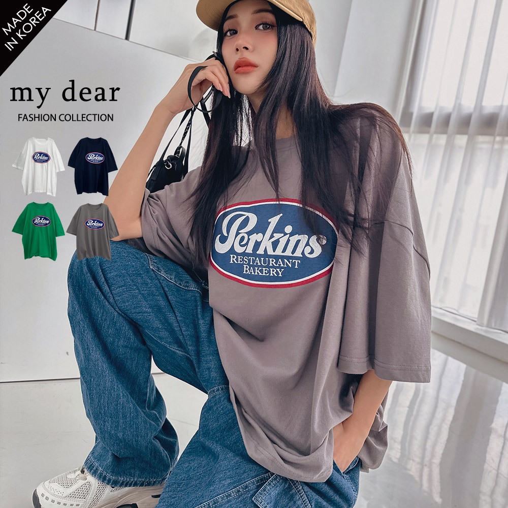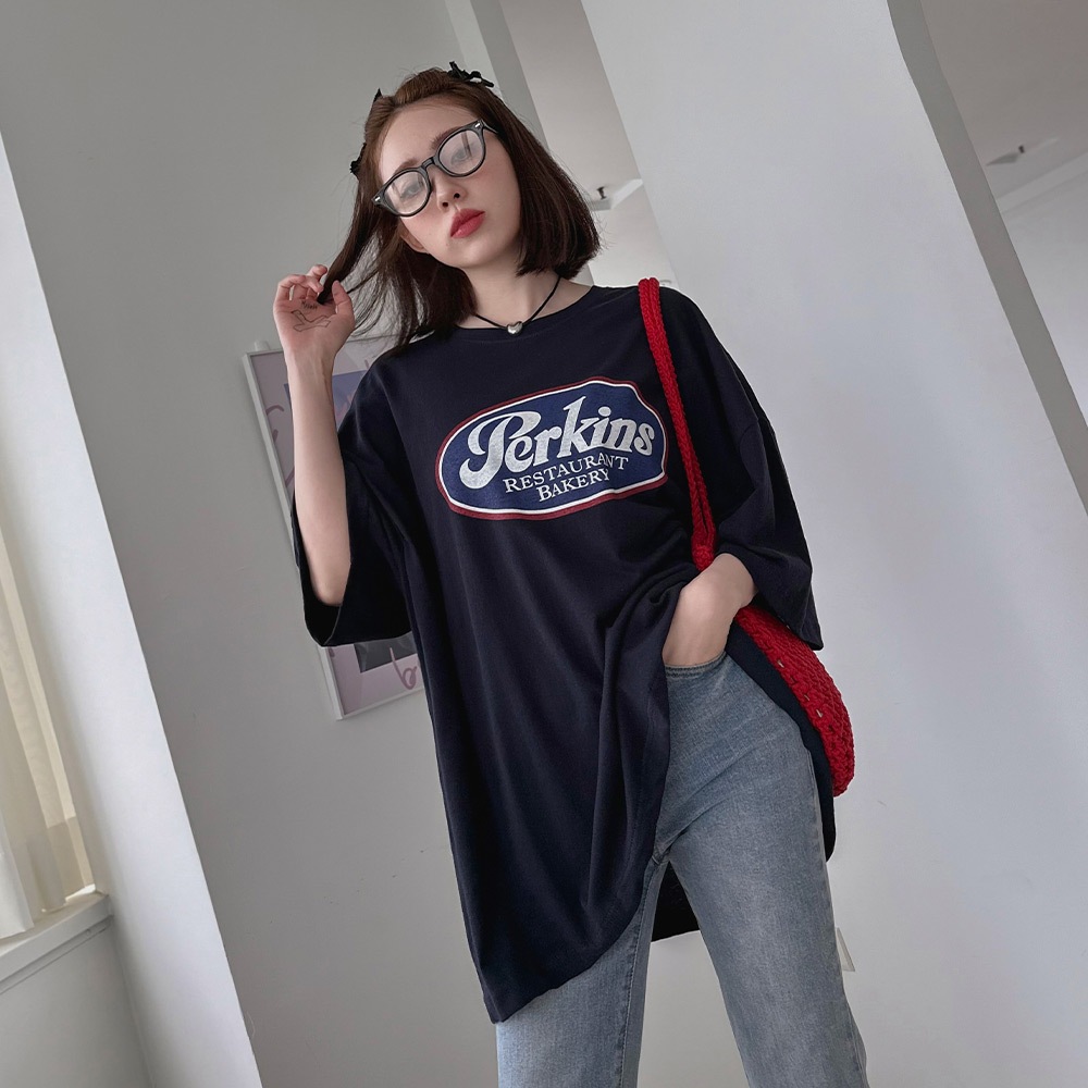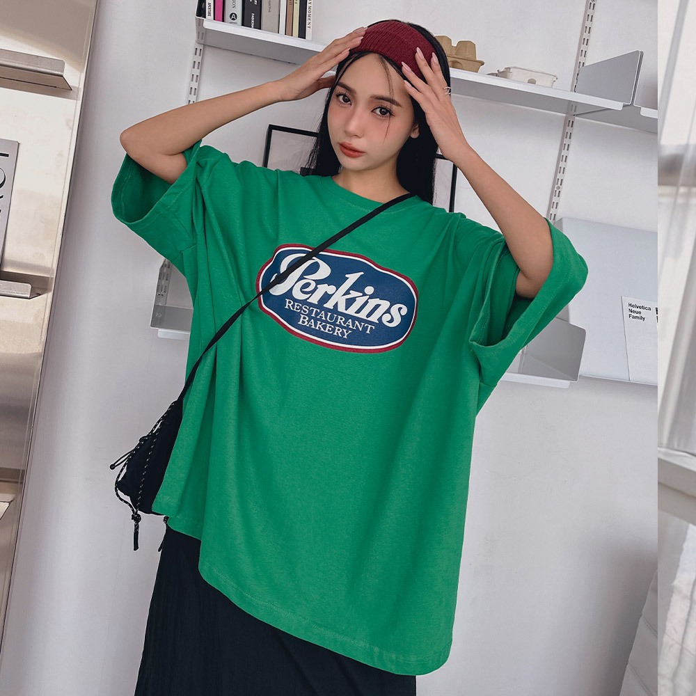 LULUS韓製/復古配色英字寬鬆T恤4色【A01240314】正韓 韓國上衣 240614深藍|綠|白|深灰T-shirtsLULUS