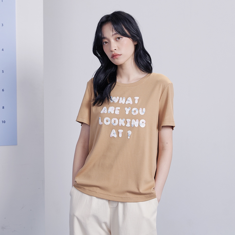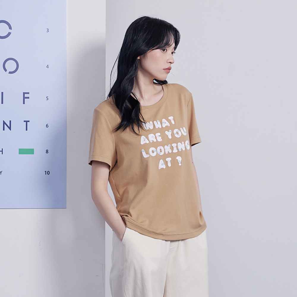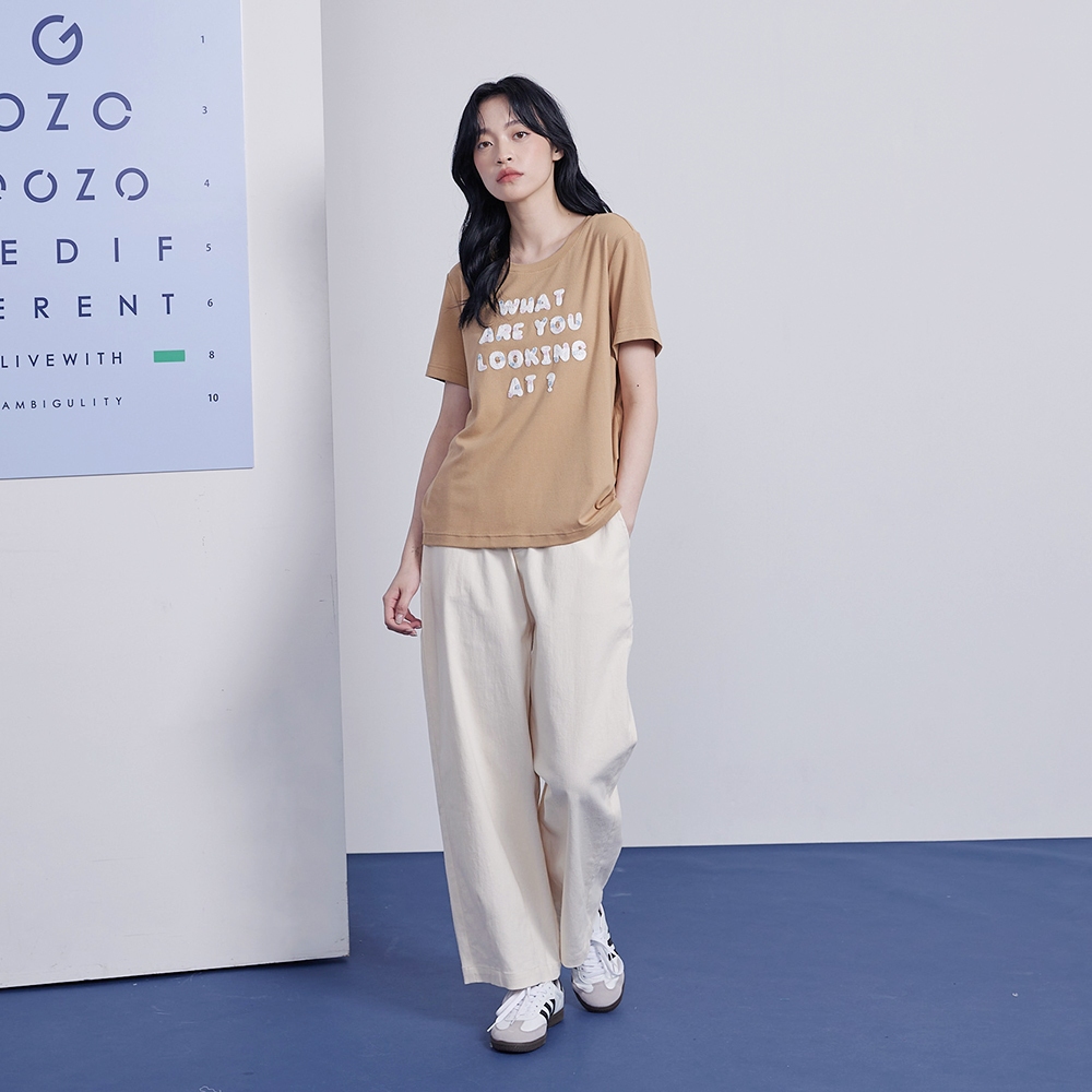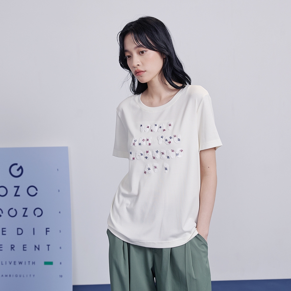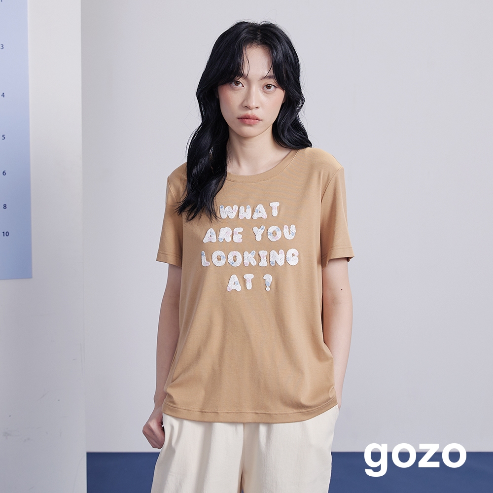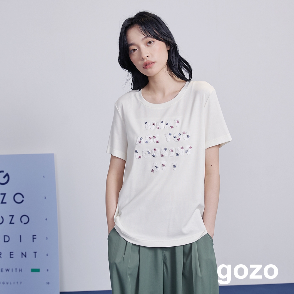 【gozo】字母繩股繡彈性T恤(白色/卡其_M/L) | 女裝 圓領 休閒白色,M|白色,L|卡其,M|卡其,LT-shirtsgozo 品牌旗艦店