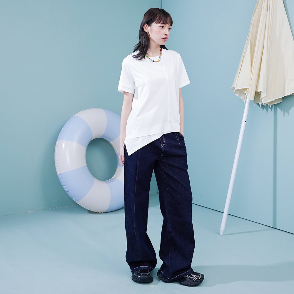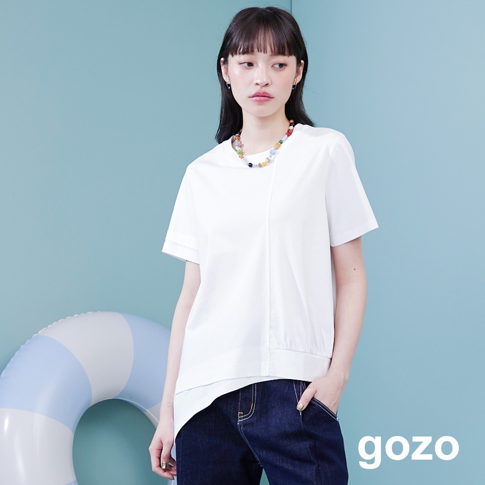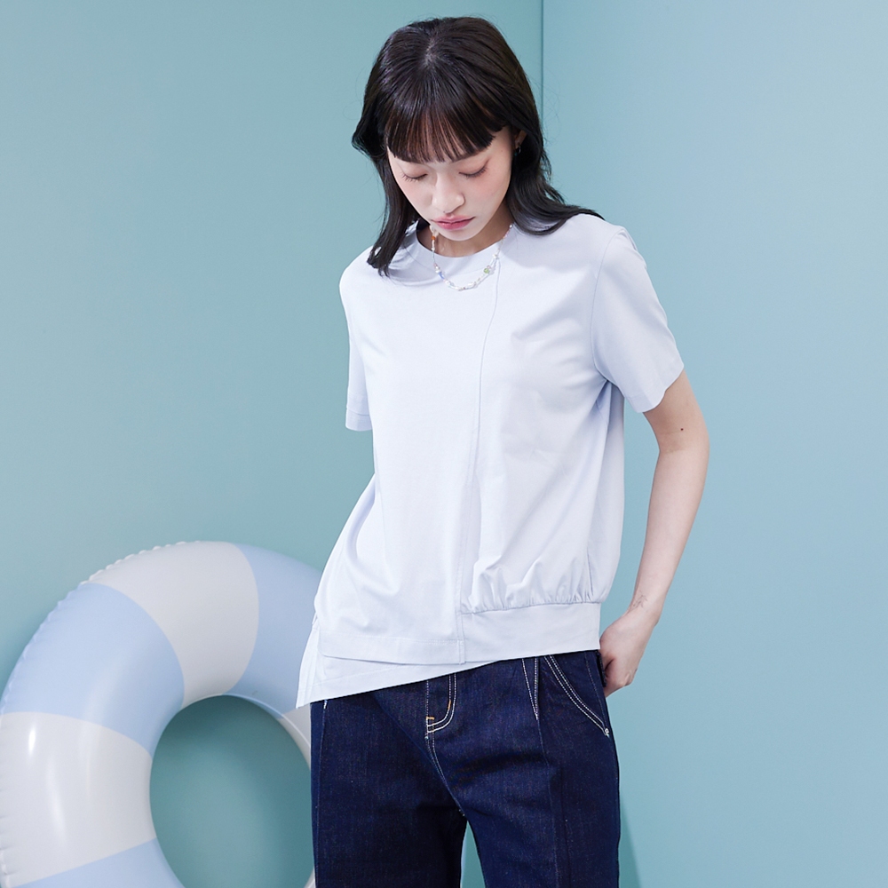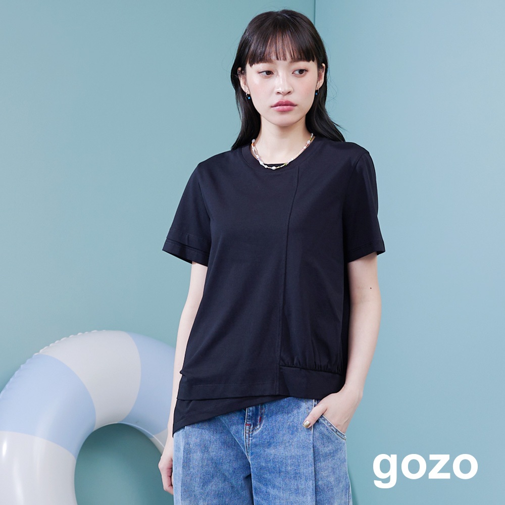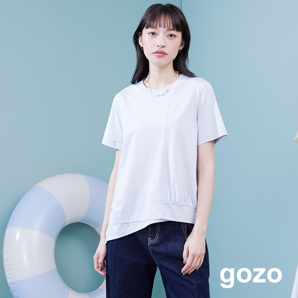 【gozo】➤不對稱斜邊造型涼感T恤(黑色/白色/淺藍_F) | 女裝 圓領 涼感黑色,F|白色,F|淺藍,FT-shirtsgozo 品牌旗艦店