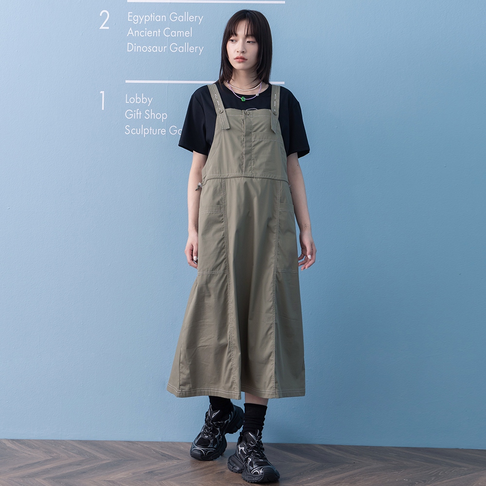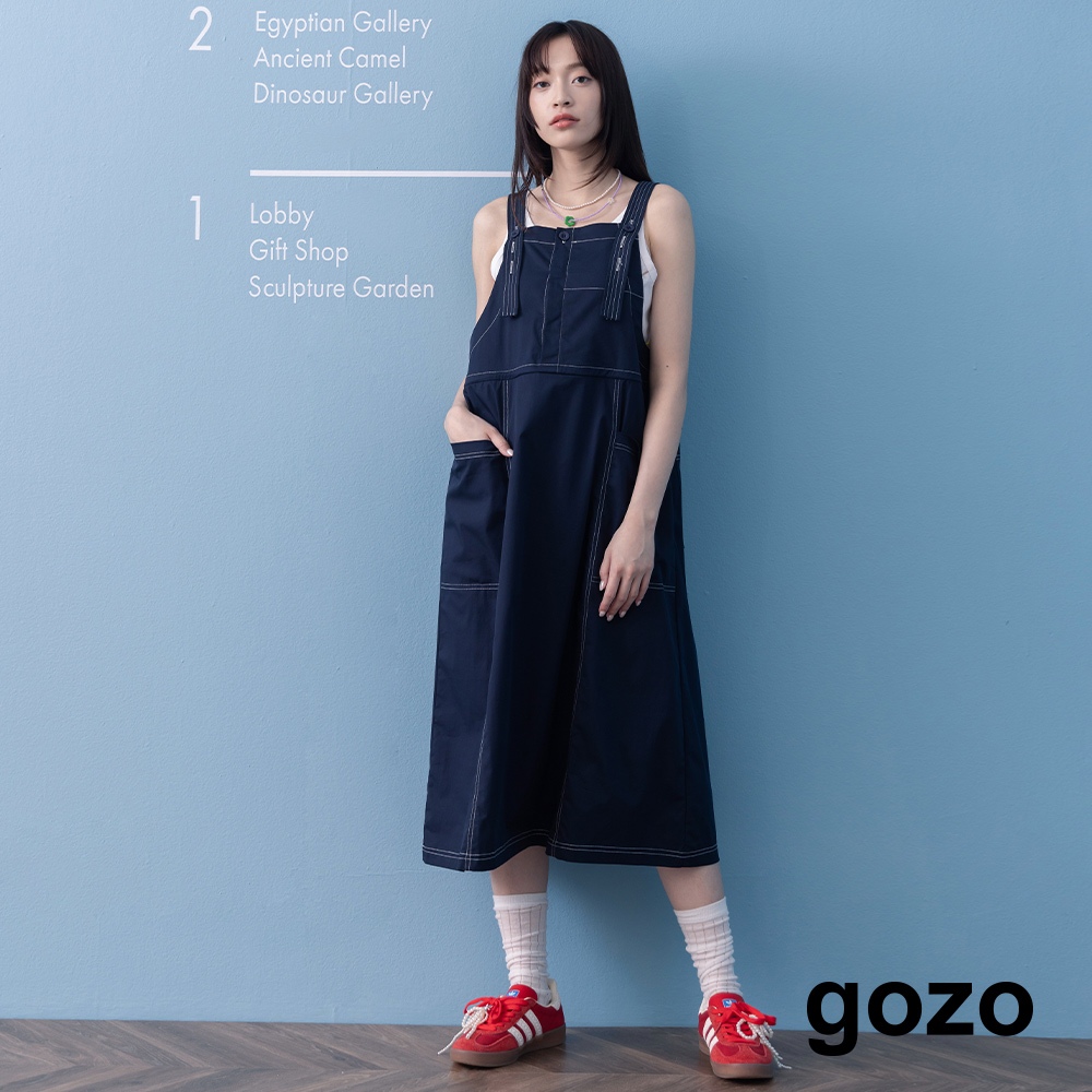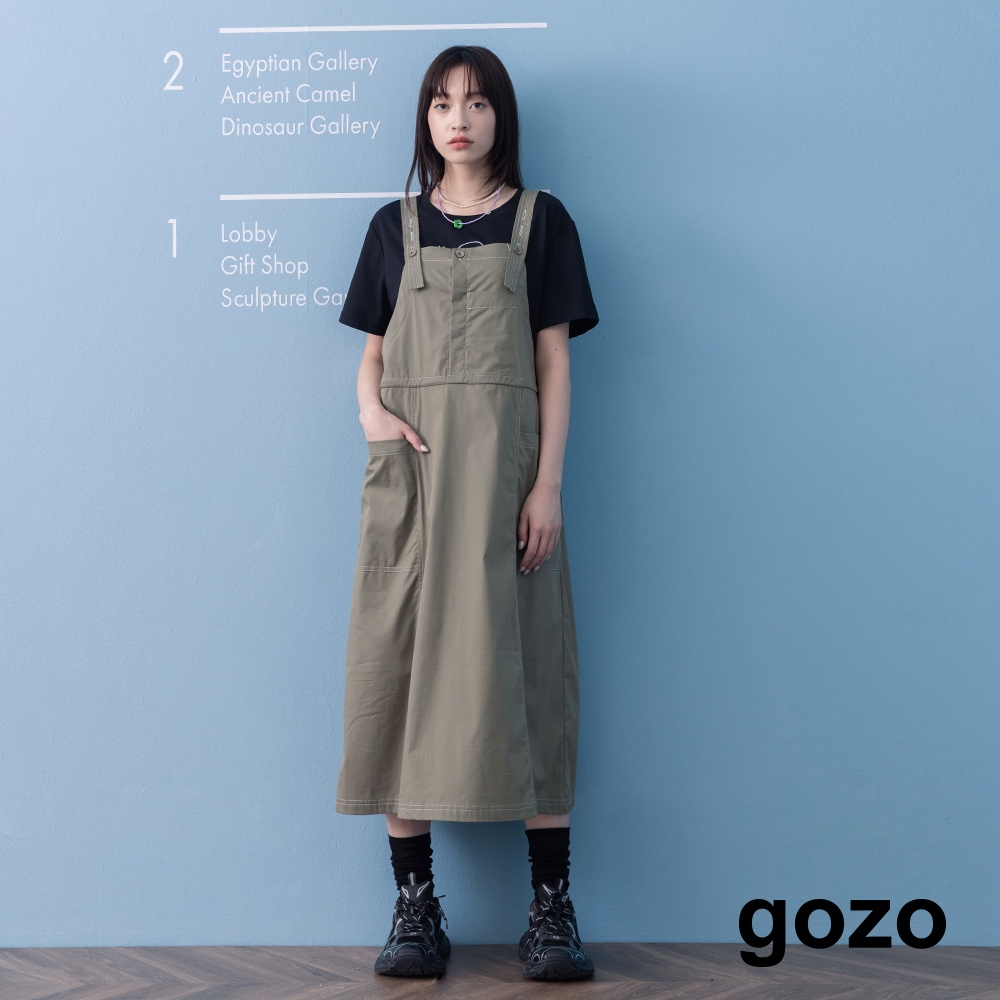 【gozo】➤抽繩收腰工裝吊帶裙(綠色/深藍_F) | 女裝 修身 休閒綠色,F|深藍,FOverallsgozo 品牌旗艦店