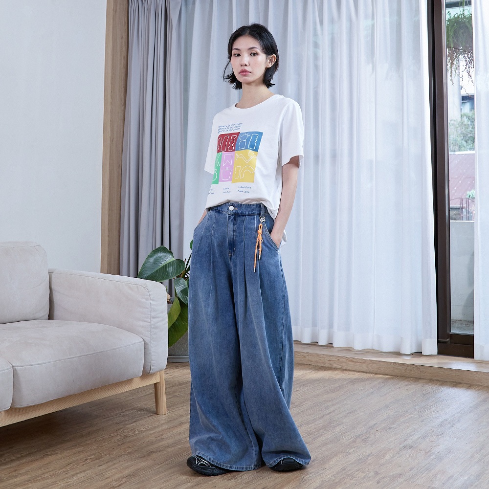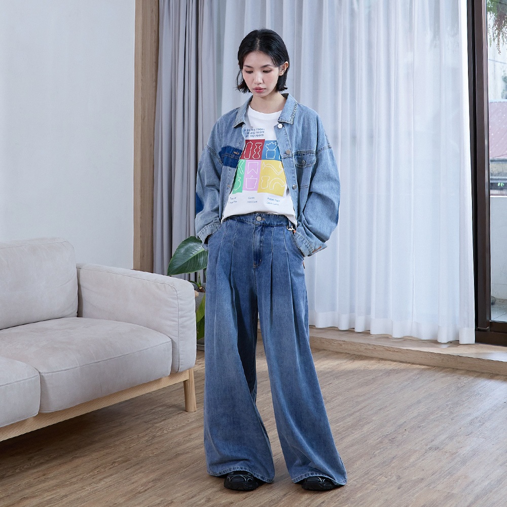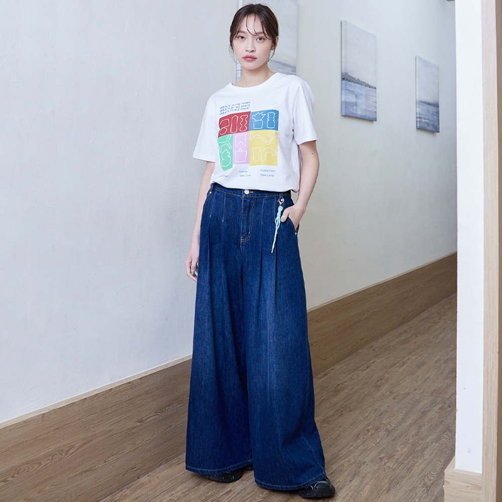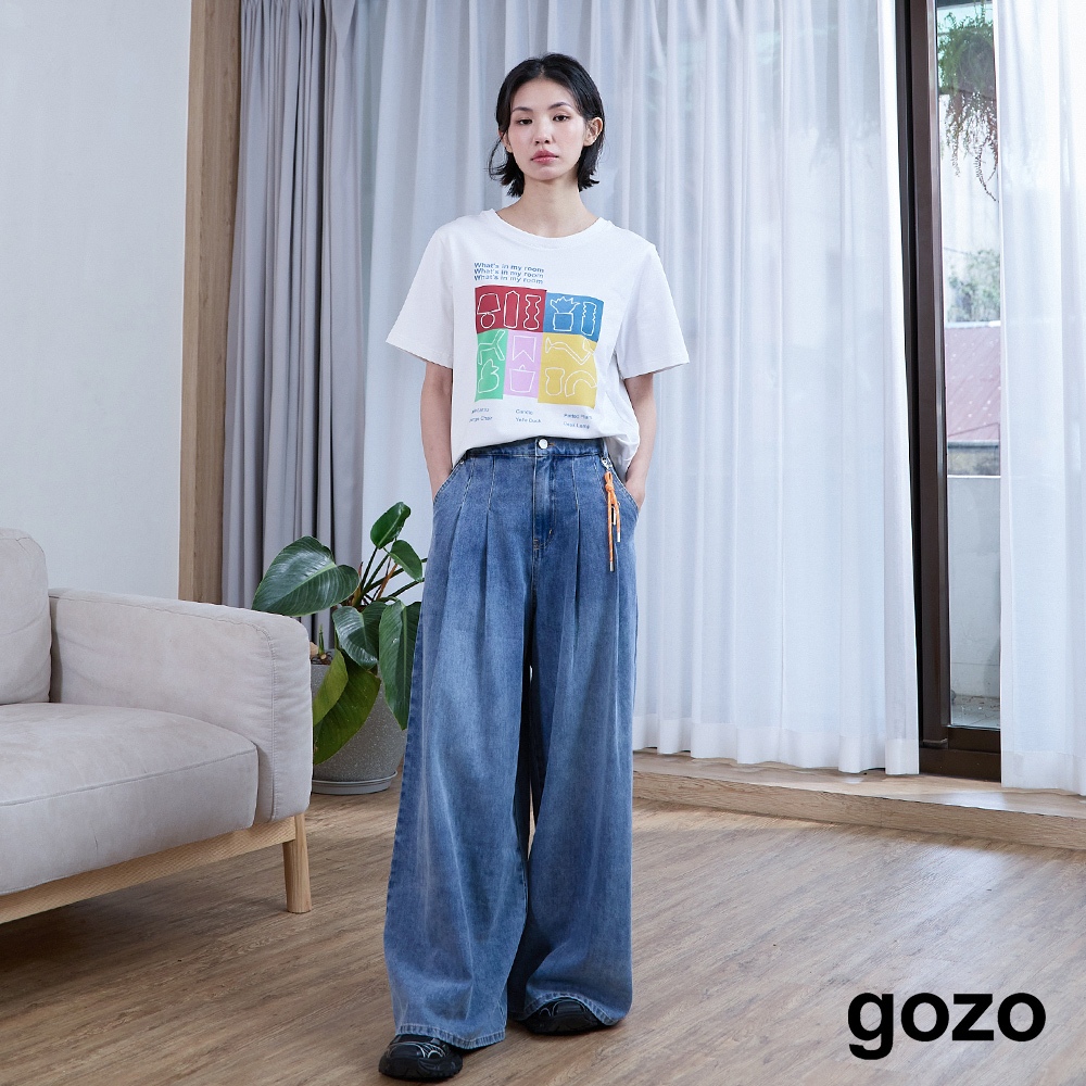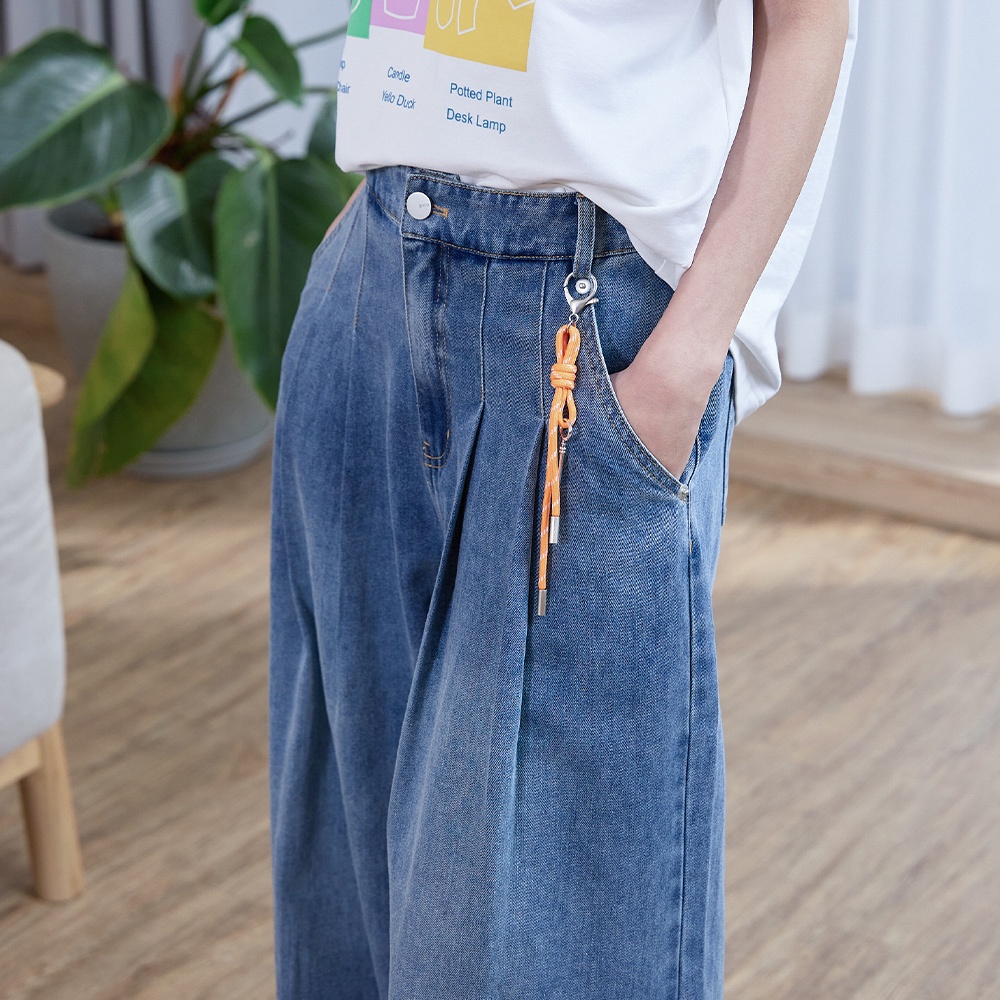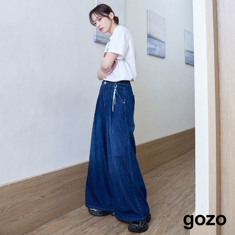 【gozo】好比例鑰匙吊飾打褶牛仔大寬褲(藍色/深藍_S/M/L) | 女裝 顯瘦 休閒藍色,S|藍色,M|藍色,L|深藍,S|深藍,M|深藍,Lgozo 品牌旗艦店