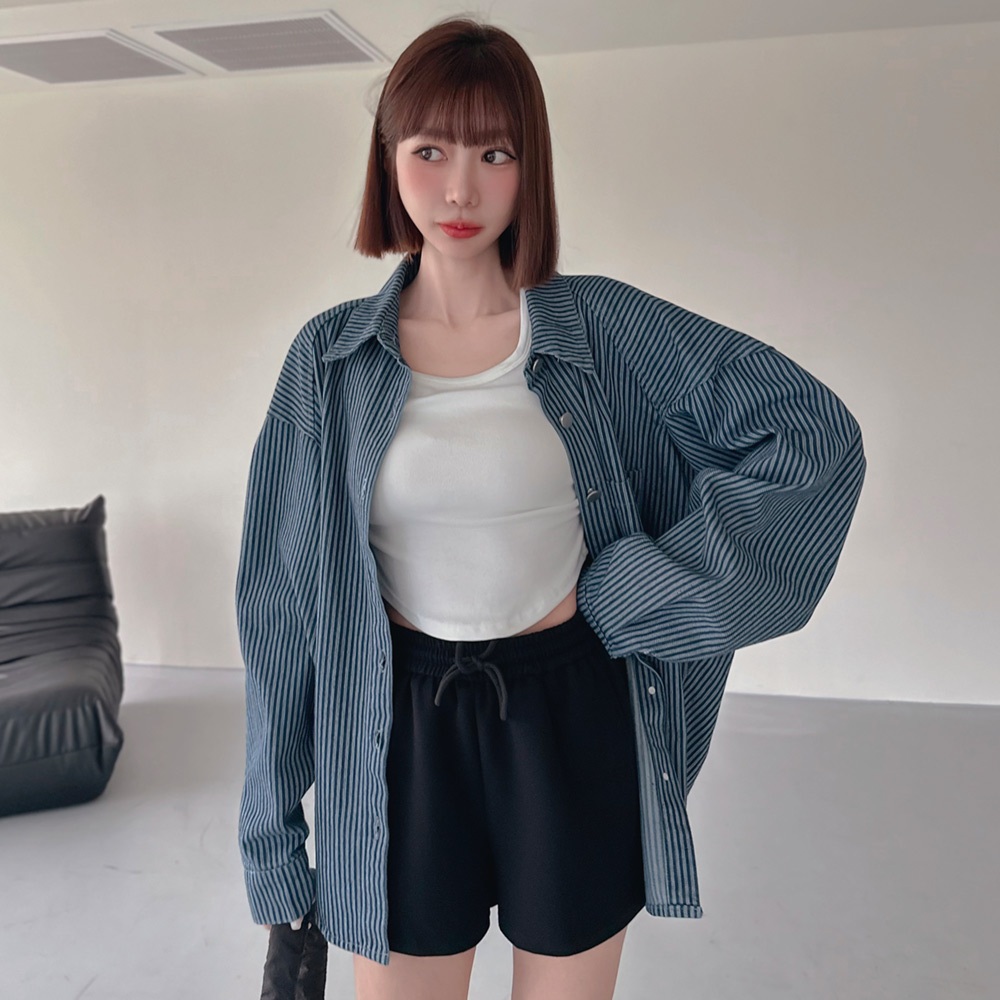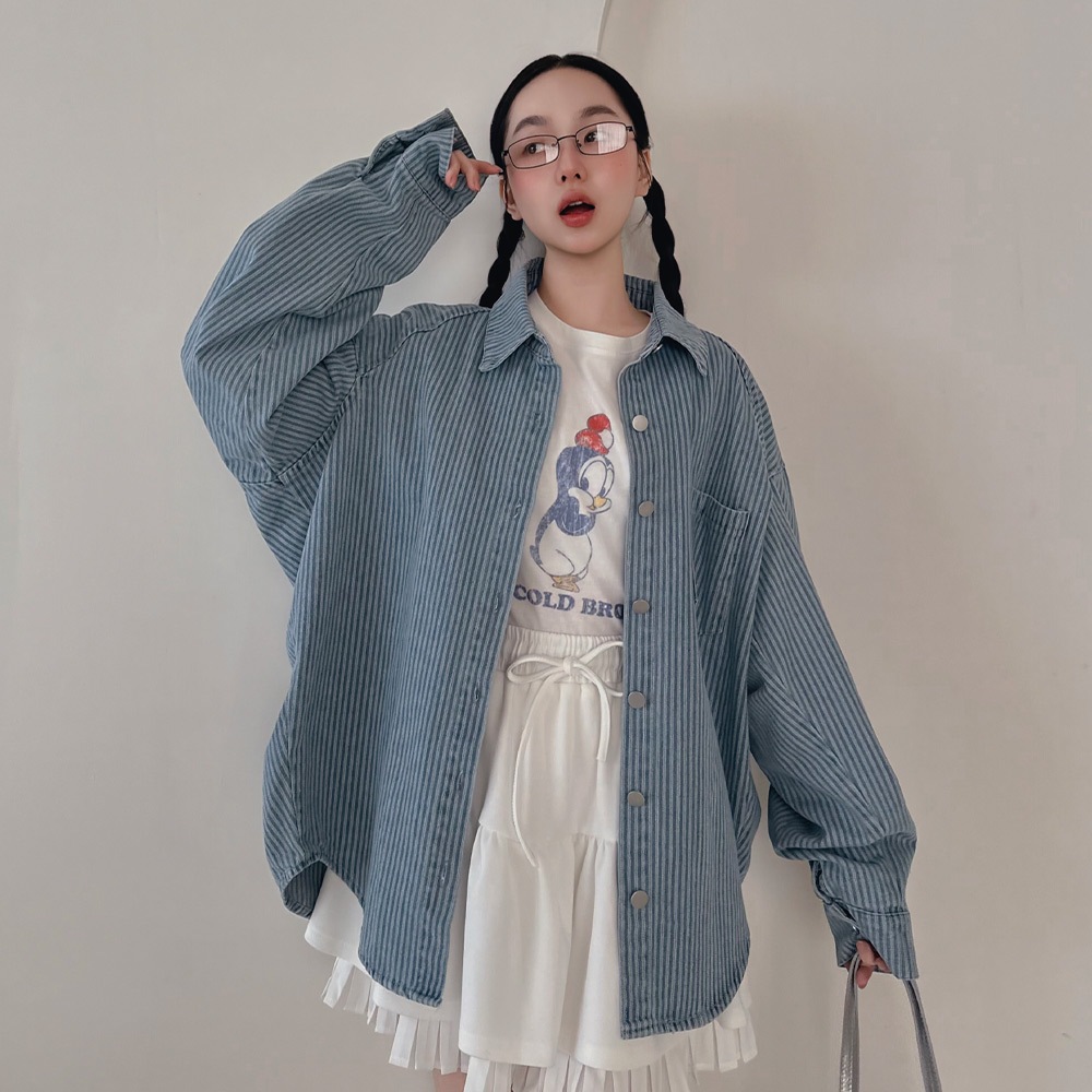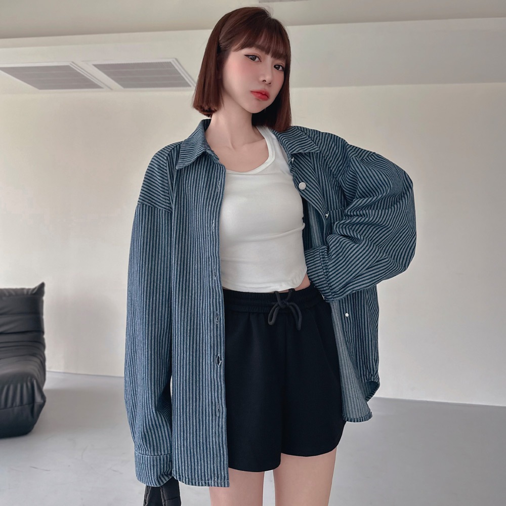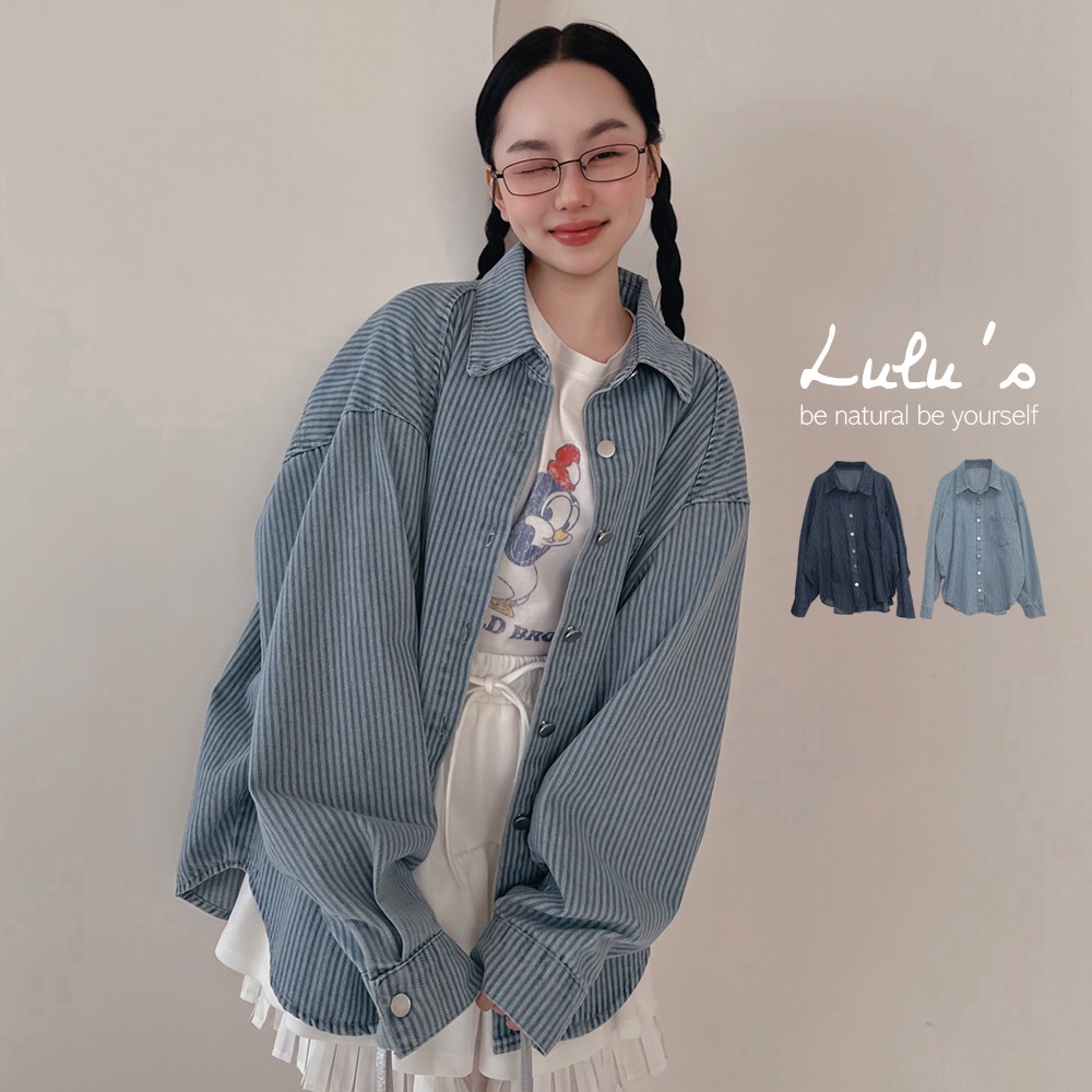 LULUS/韓系高級直紋牛仔襯衫外套2色【A03250007】牛仔外套 男友外套 250206淺藍|深藍JacketsLULUS