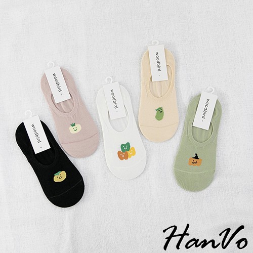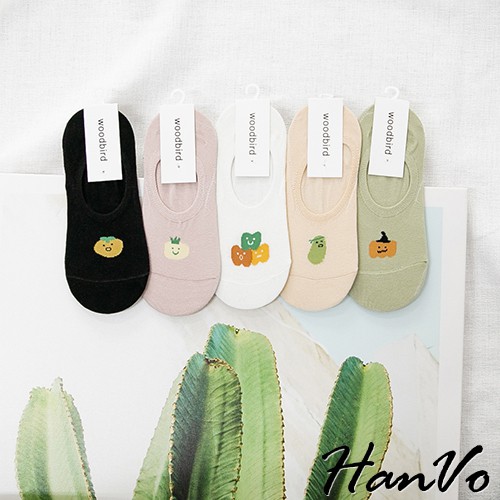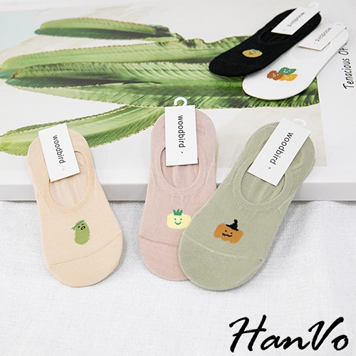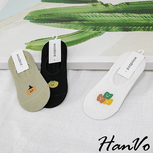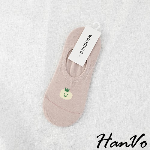 【HanVo】醜美風小食物止滑隱形襪 現貨韓系少女襪船型襪 韓妞必備 襪子 白襪 女襪 女生衣著 A12-6051黑色|白色|綠色|粉色|米色SocksHanVo Wear Collection