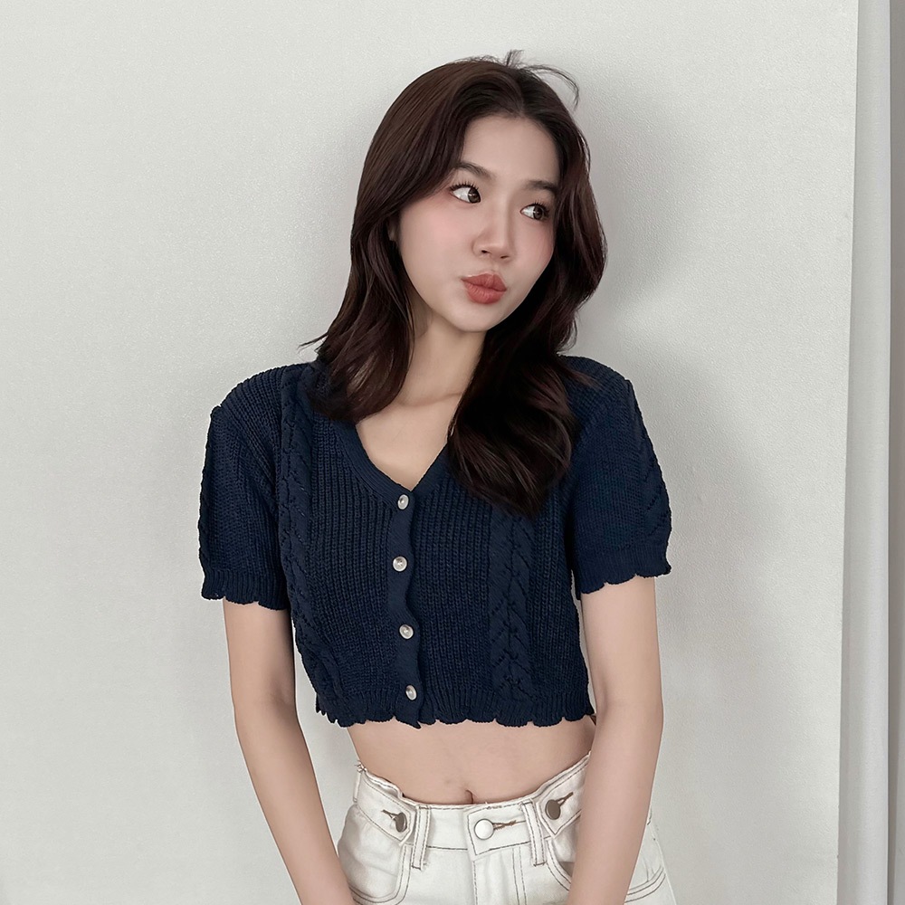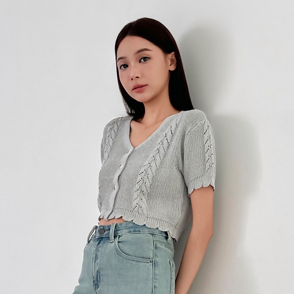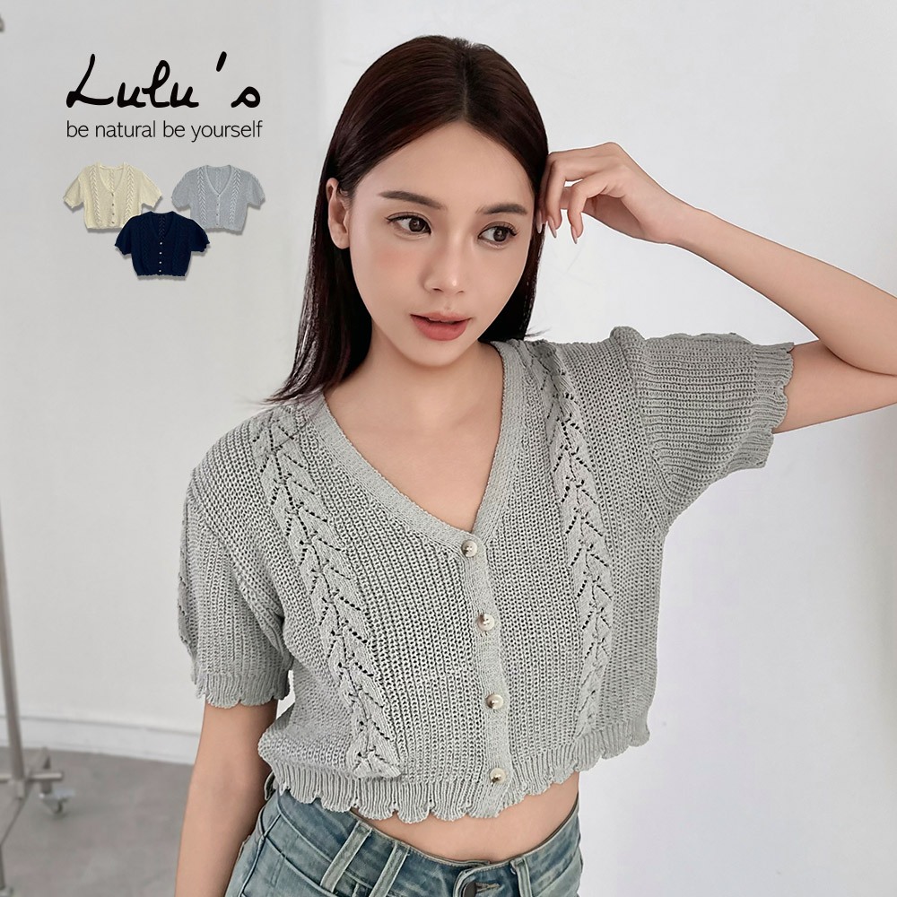 LULUS/顯腰身短版麻花排釦針織上衣3色【A01250658】250813丈青|淺灰|米杏T-shirtsLULUS