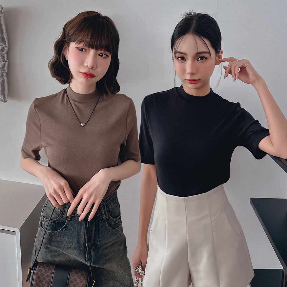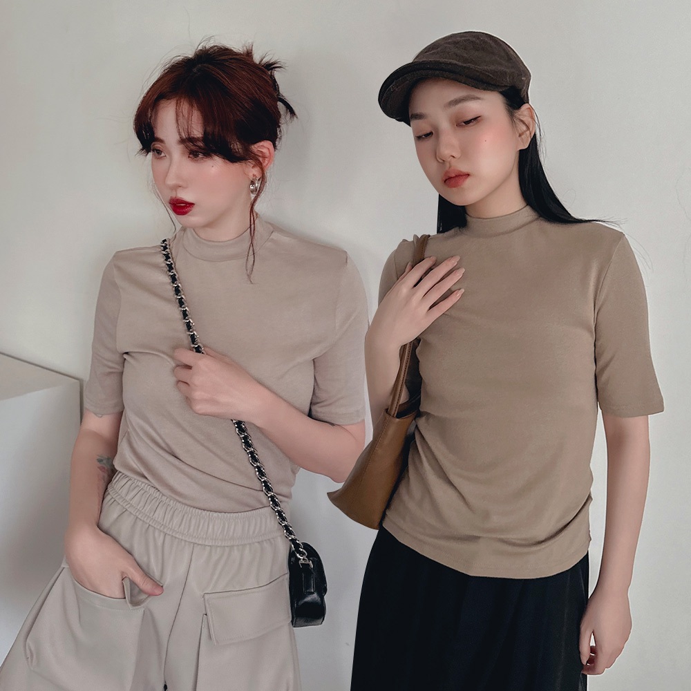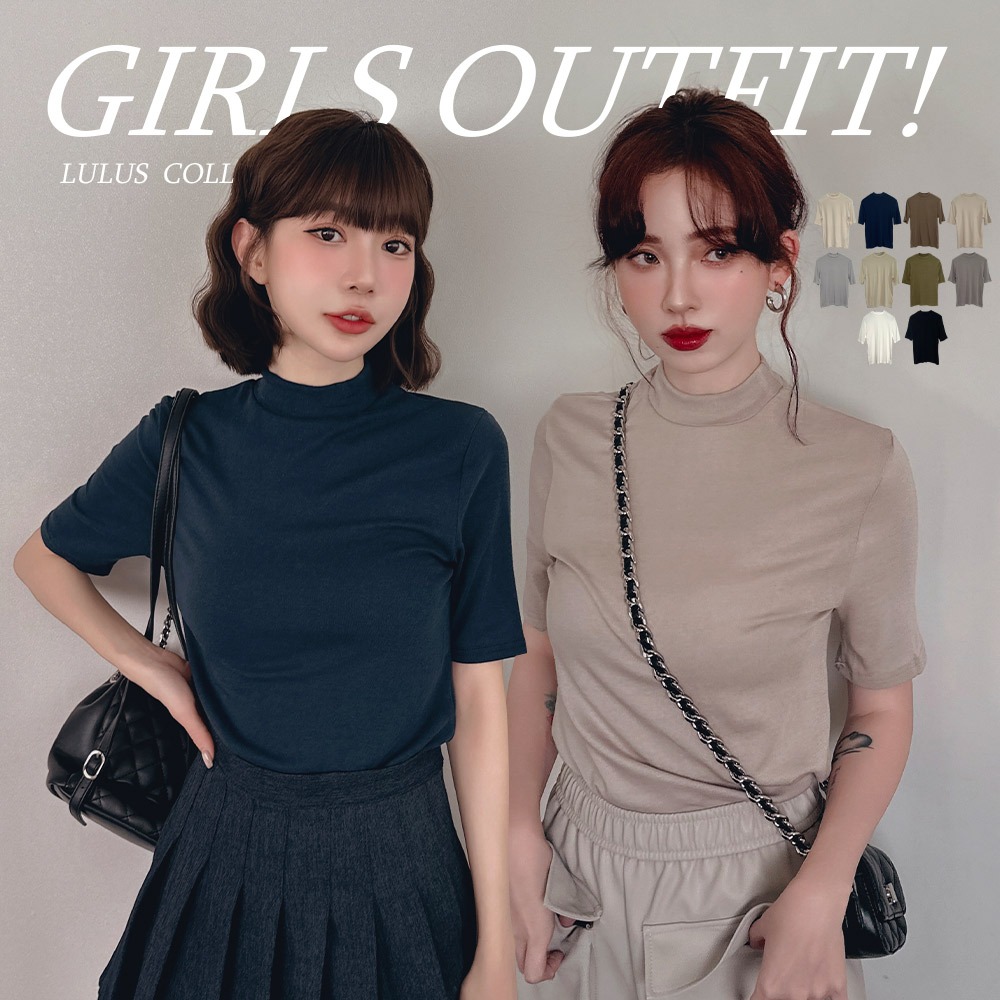 LULUS/小立領軟彈寬鬆上衣10色【A01240566】秋冬 打底衣 彈性241003軍綠|白|奶茶|摩卡|杏|深灰|淺灰|黑|寶藍|粉杏T-shirtsLULUS