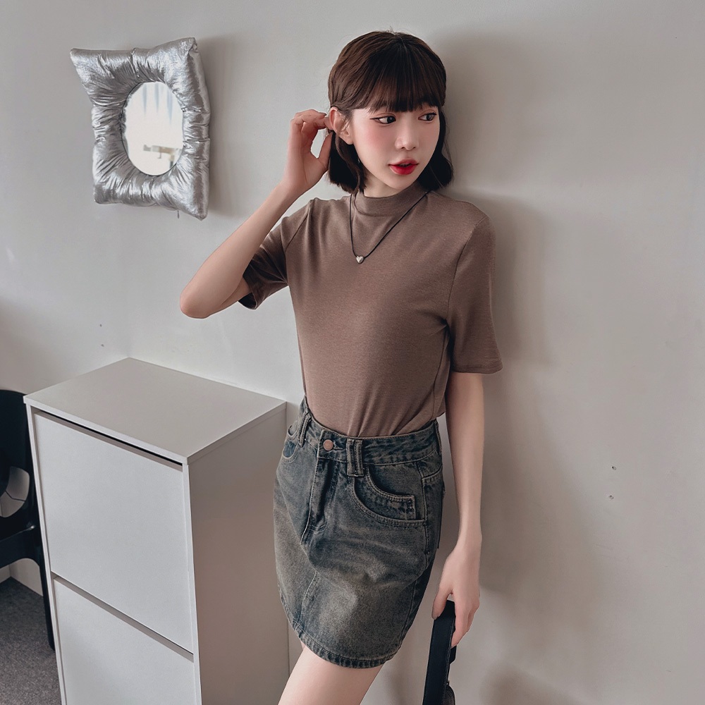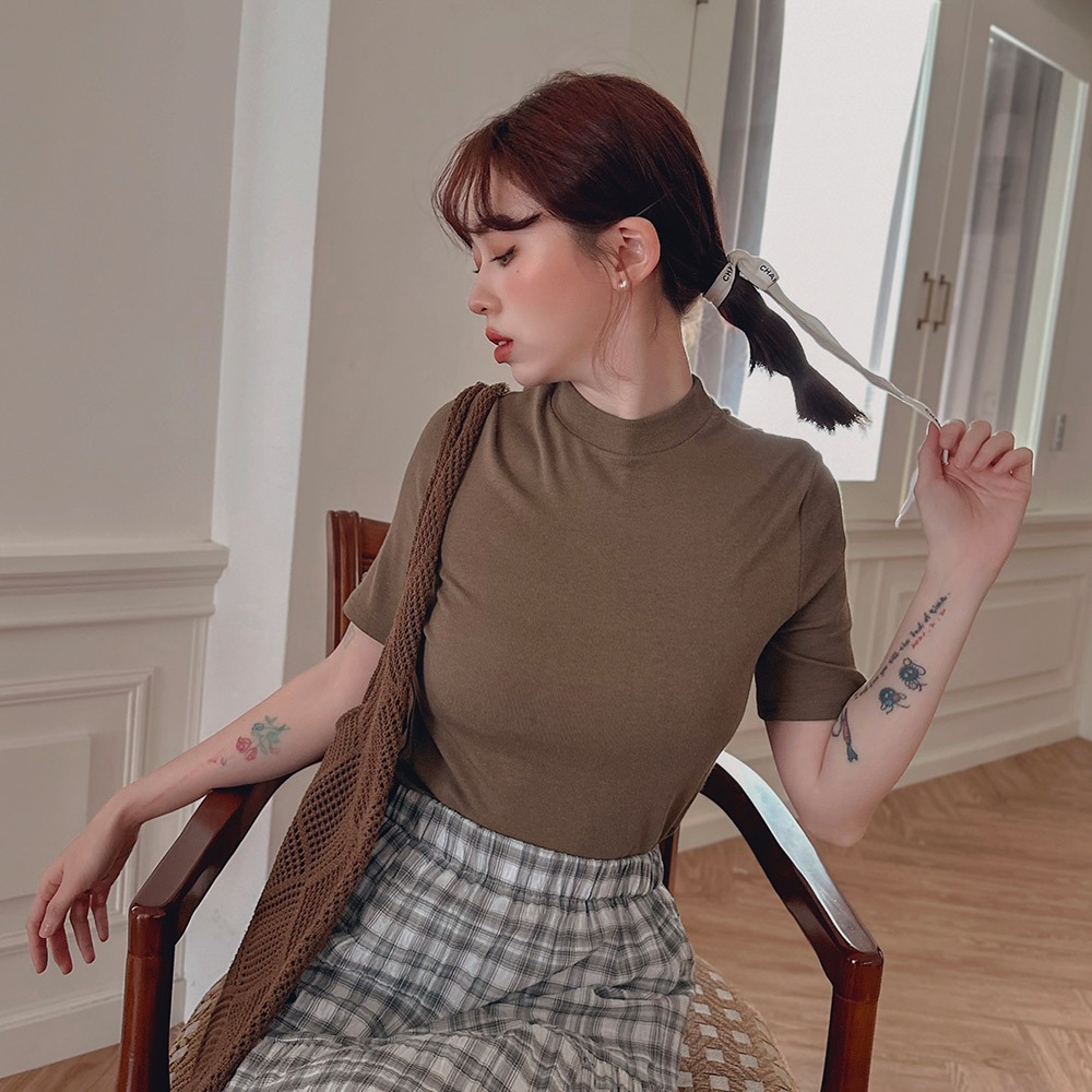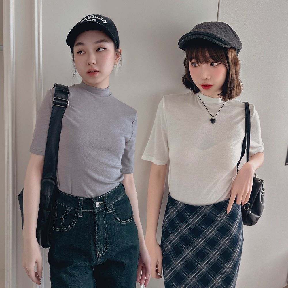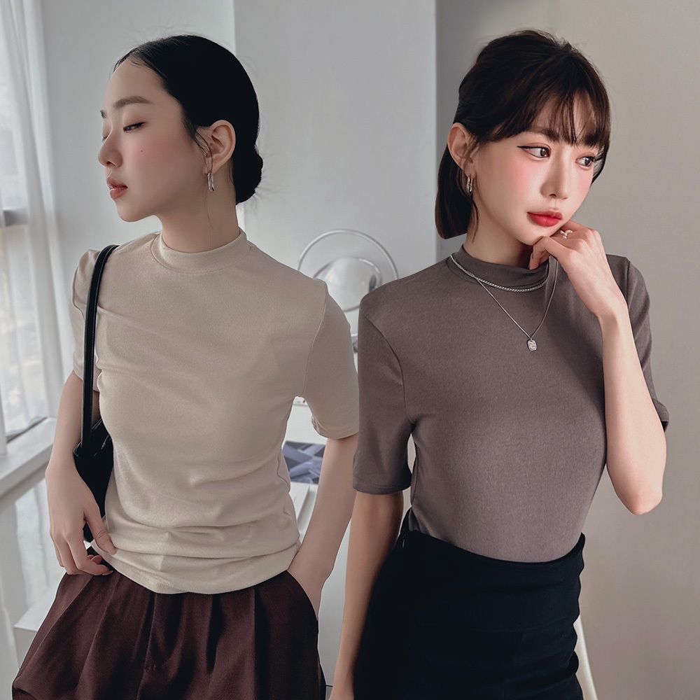 LULUS/小立領軟彈寬鬆上衣10色【A01240566】秋冬 打底衣 彈性241003軍綠|白|奶茶|摩卡|杏|深灰|淺灰|黑|寶藍|粉杏T-shirtsLULUS