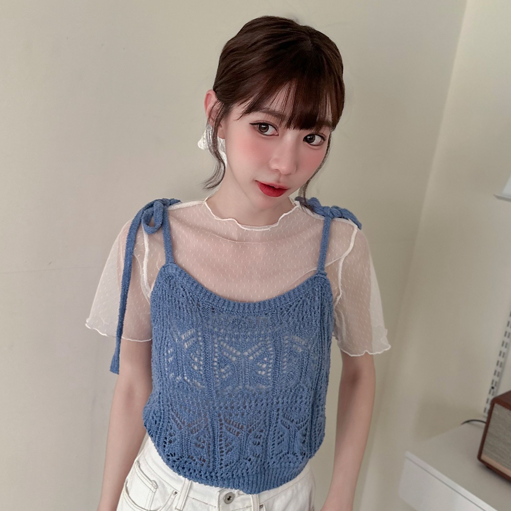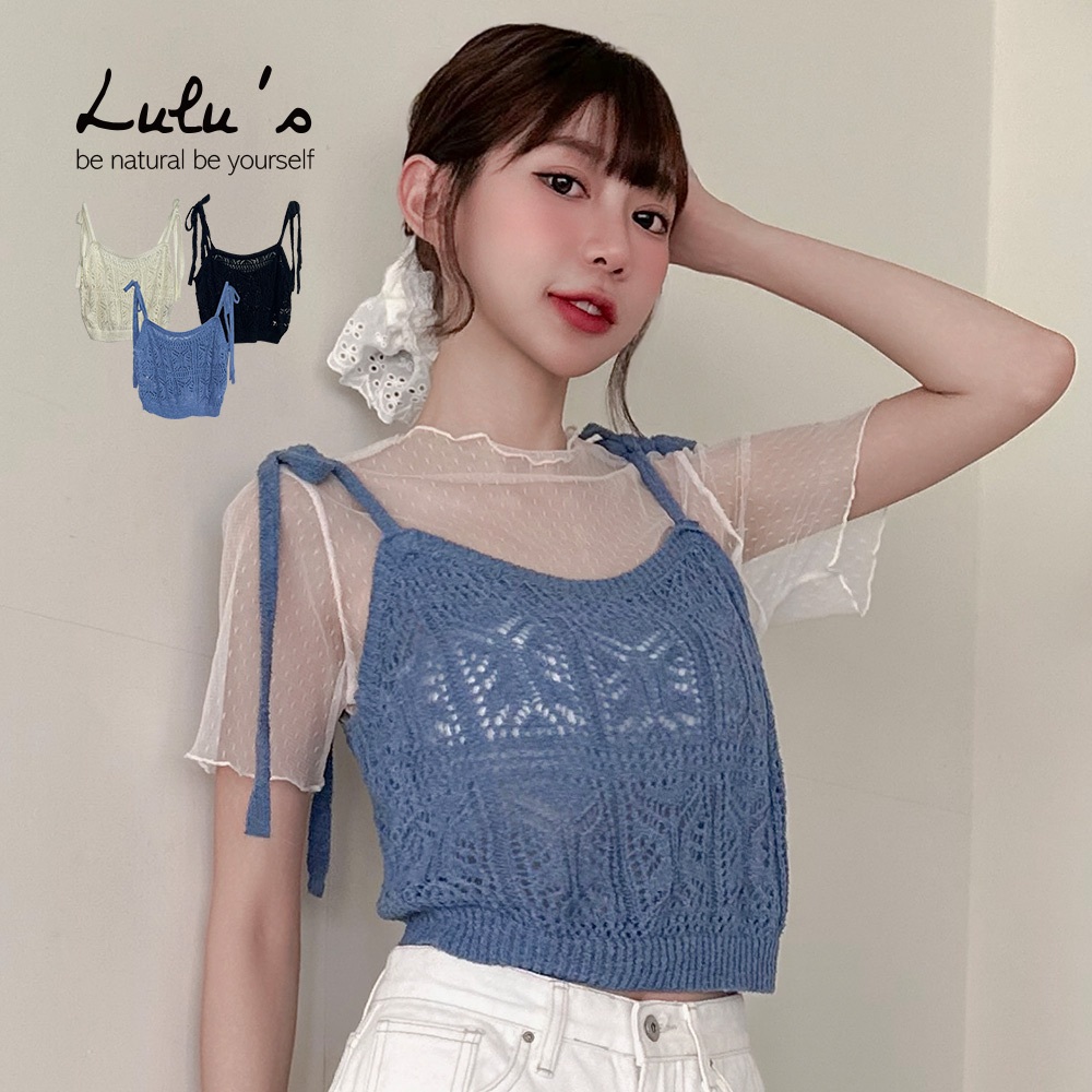 LULUS/現貨/針織綁帶簍空背心3色【A01250335】層次穿搭 外搭背心 蝴蝶結250604黑|藍|白Tanks & CamisolesLULUS