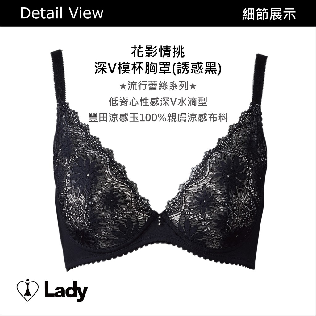 Lady 花影情挑系列 B-F罩 蕾絲 模杯 內衣 (誘惑黑)70B|70C|70D|70E|70F|75E|75F|80D|80E/售完BrasLady內衣官方直營旗艦店