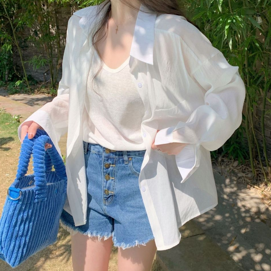 FUXI 薄款防曬外套女 長袖襯衫外套 垂感天絲棉襯衫 韓版寬鬆外穿長袖上衣 透膚襯衫 長袖上衣 女裝 衣服白色,S 48公斤內|白色,M 48-52公斤|白色,L 52-58公斤|白色,XL 58-65公斤|白色,2XL 65-72公斤|粉色,S 48公斤內|粉色,M 48-52公斤|粉色,L 52-58公斤|粉色,XL 58-65公斤|粉色,2XL 65-72公斤|藍色,S 48公斤內|藍色,M 48-52公斤|藍色,L 52-58公斤|藍色,XL 58-65公斤|藍色,2XL 65-72公斤|茶色,S 48公斤內|茶色,M 48-52公斤|茶色,L 52-58公斤|茶色,XL 58-65公斤|茶色,2XL 65-72公斤Shirts & BlousesFUXI 服喜行