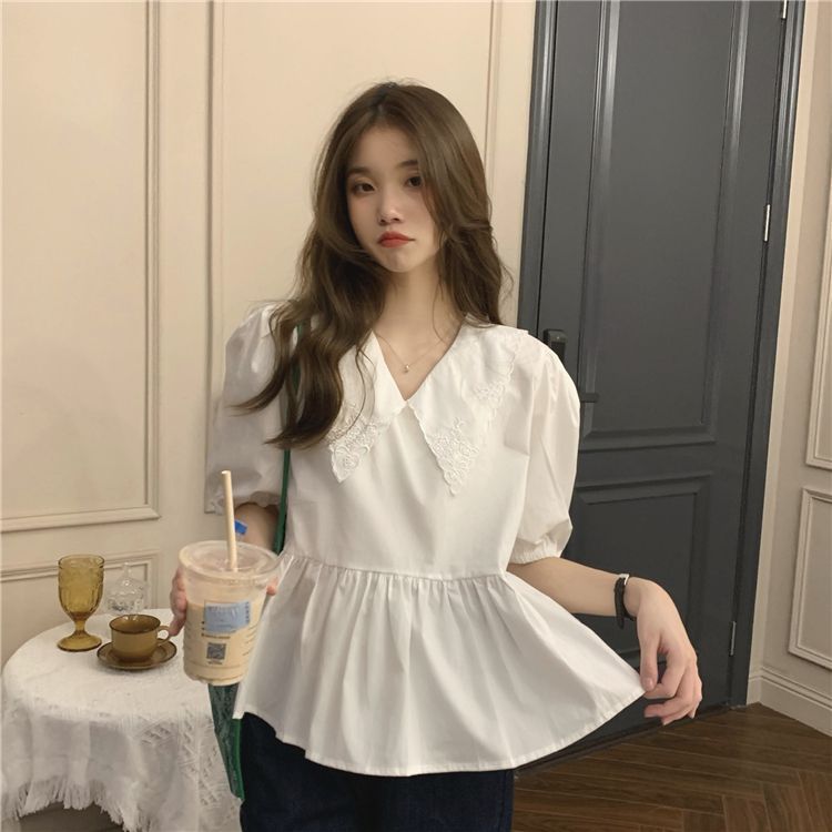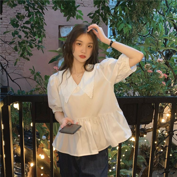 FUXI 短袖襯衫女 短袖上衣 韓版顯瘦拼接娃娃領上衣 收腰襯衫 雪紡上衣 女裝 衣服白色,S 40-48公斤|白色,M 48-55公斤|白色,L 55-62公斤|白色,XL 62-70公斤|白色,2XL 70-78公斤|黑色,S 40-48公斤|黑色,M 48-55公斤|黑色,L 55-62公斤|黑色,XL 62-70公斤|黑色,2XL 70-78公斤Shirts & BlousesFUXI 服喜行