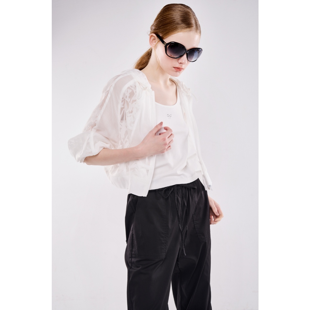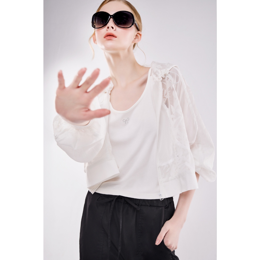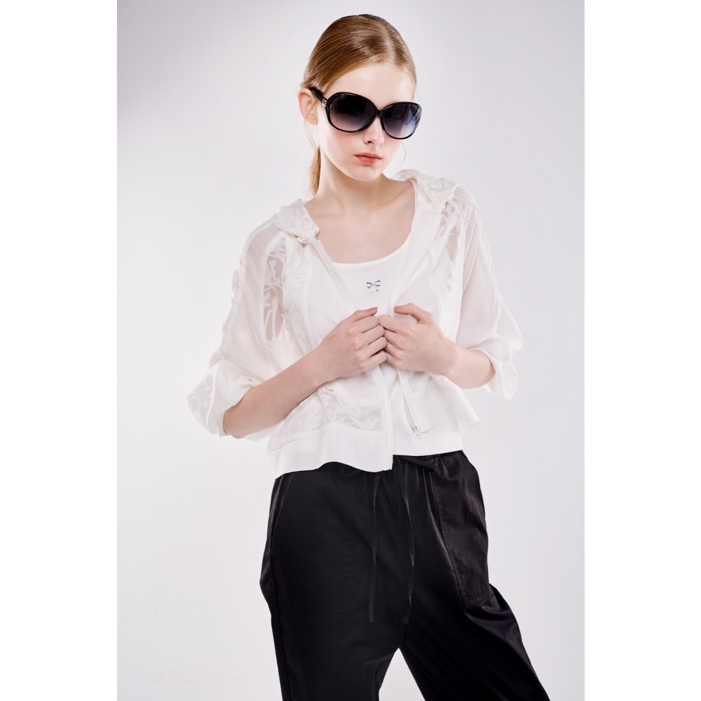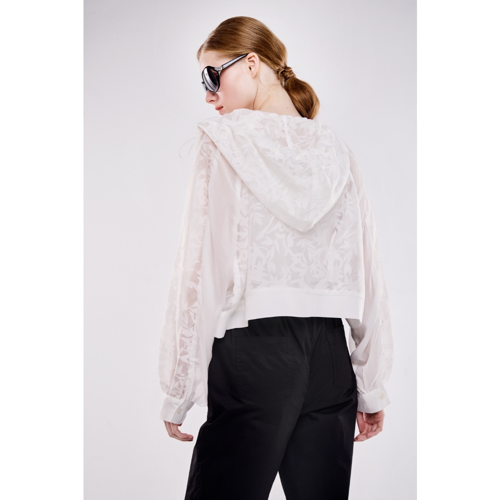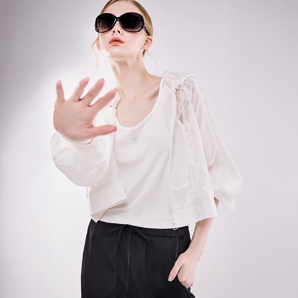 湛藍知性 ● 雕花蕾絲連帽外套白,FWinter Jackets & CoatsLe Polka