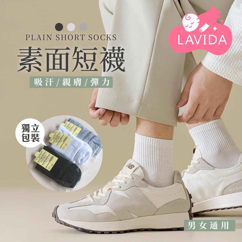 素面短襪 透氣短襪 棉襪 半筒襪 短襪 襪子 彈性襪 運動襪 吸汗襪 素色襪 男女都可以穿黑色|白色|灰色SocksLAVIDA 育兒好好玩!