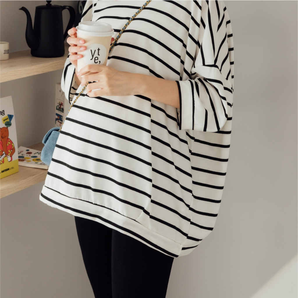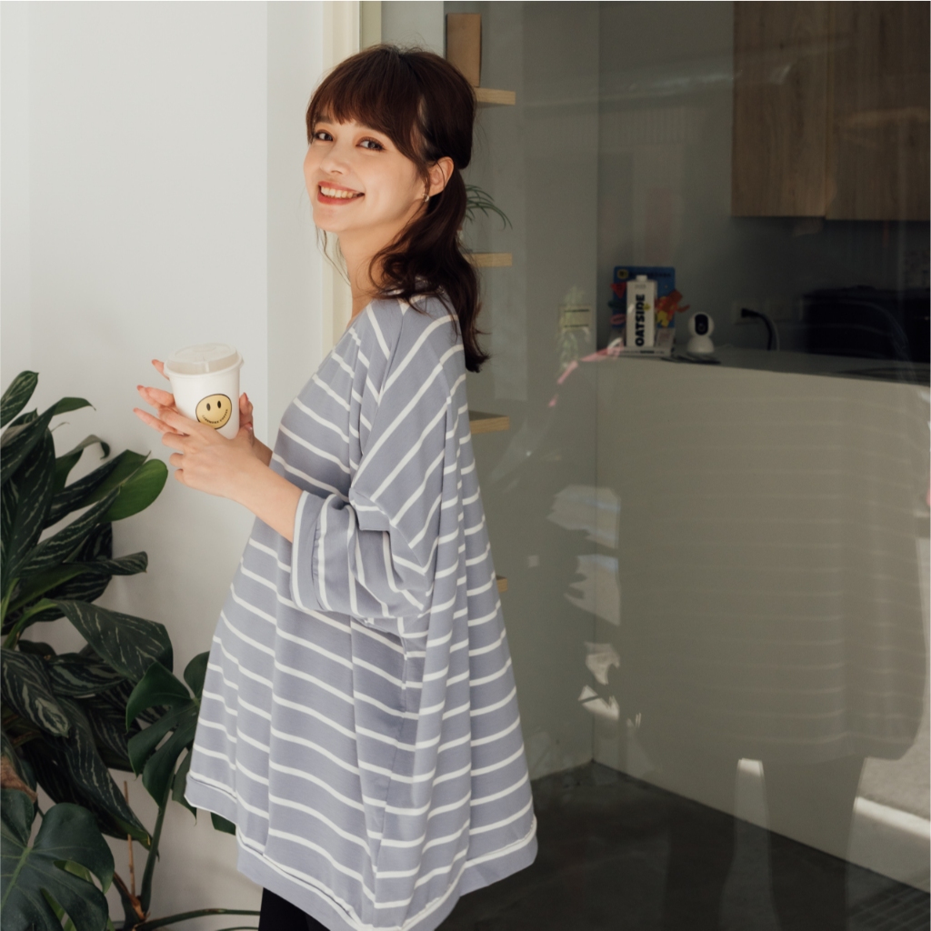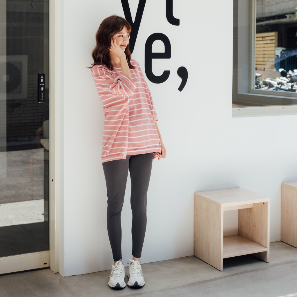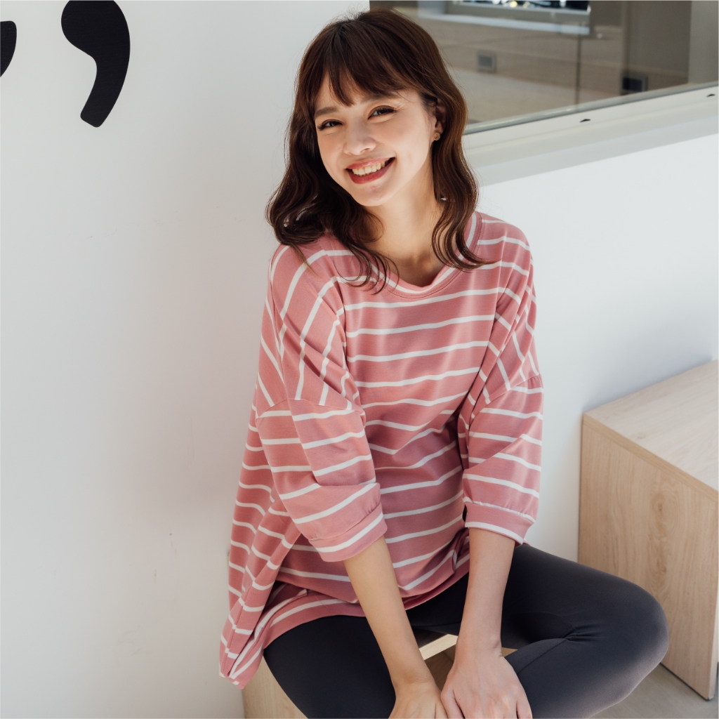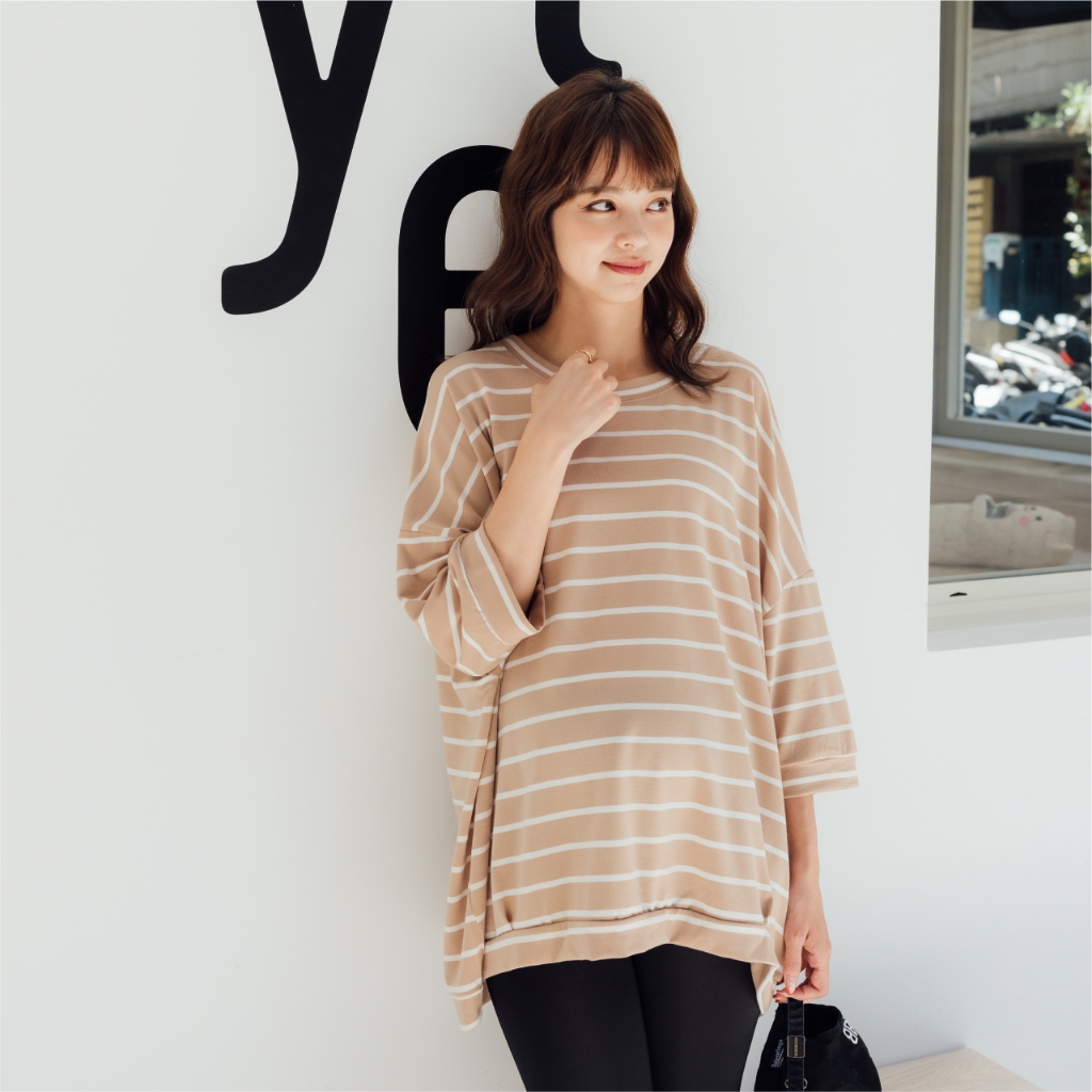 Mamamia孕婦裝 微甜條紋七分連袖孕婦上衣 正韓製 孕婦裝 孕婦上衣 七分袖 短袖 素面上衣 [C3182]奶茶|粉|藍|白Maternity TopsMamamia孕婦裝