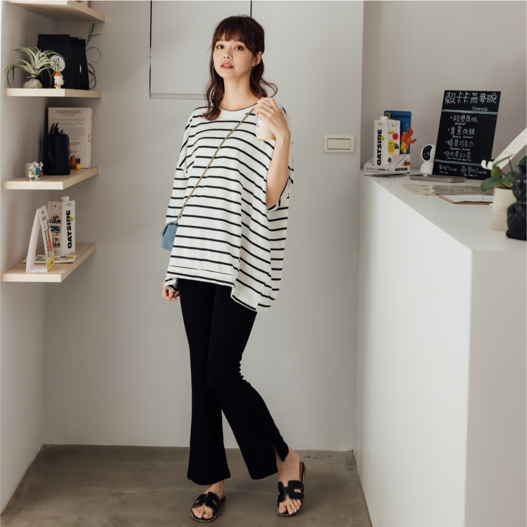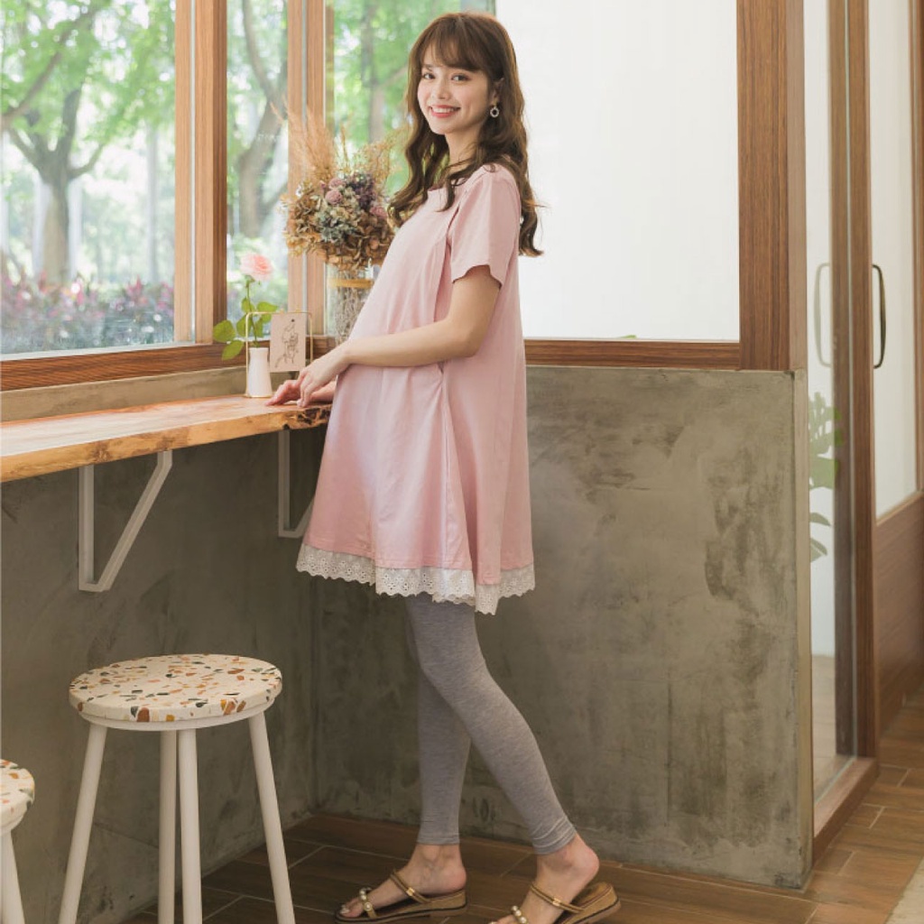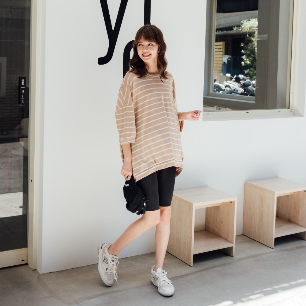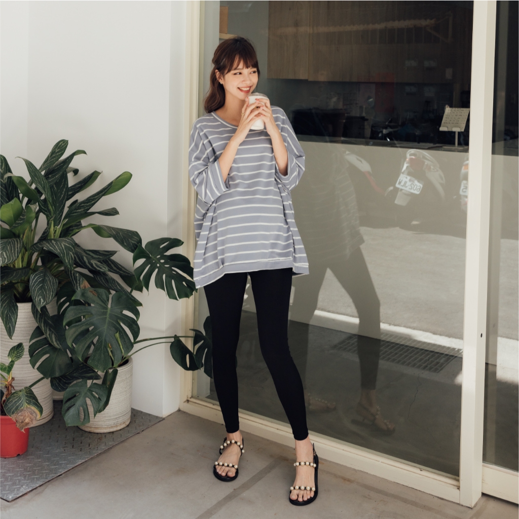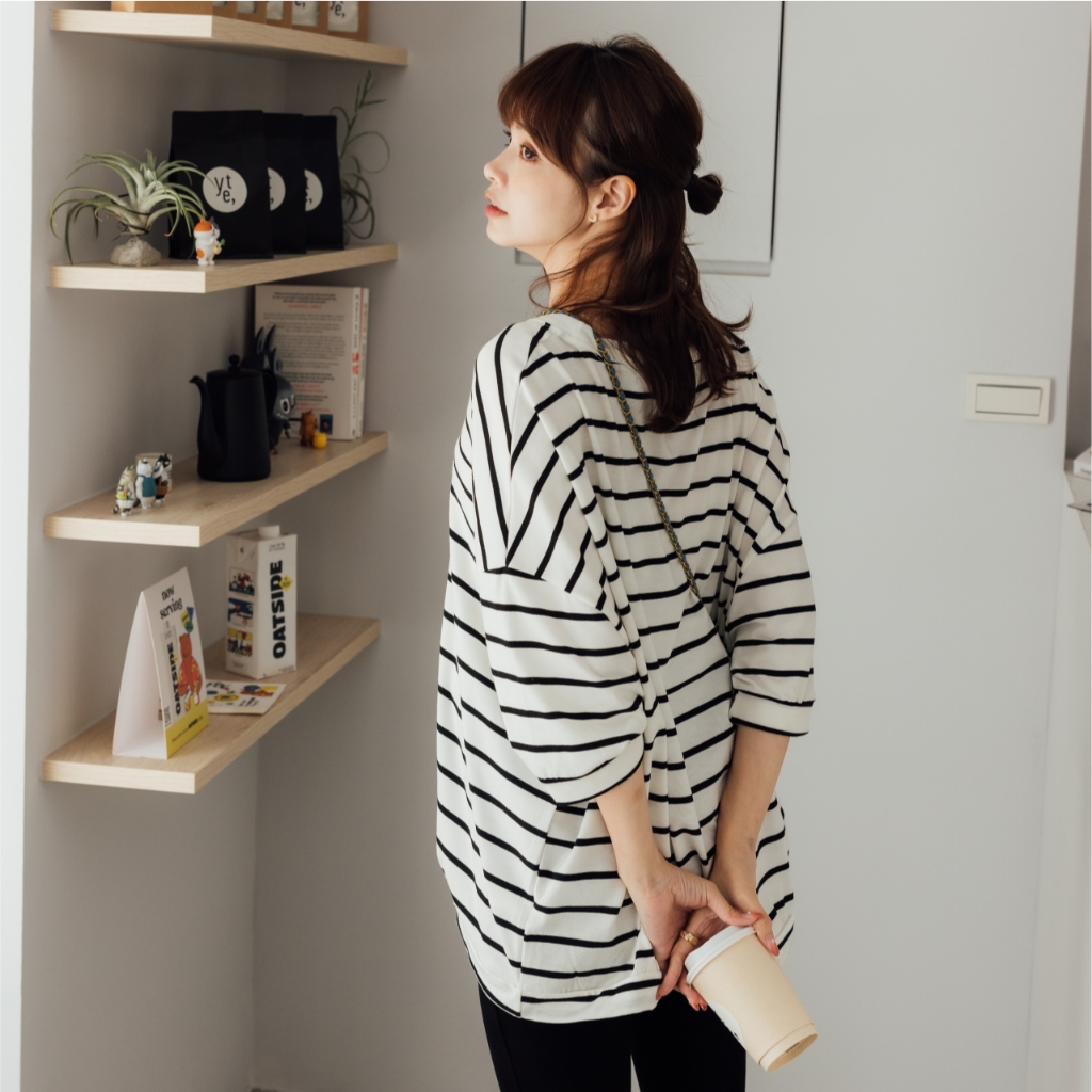 Mamamia孕婦裝 微甜條紋七分連袖孕婦上衣 正韓製 孕婦裝 孕婦上衣 七分袖 短袖 素面上衣 [C3182]奶茶|粉|藍|白Maternity TopsMamamia孕婦裝