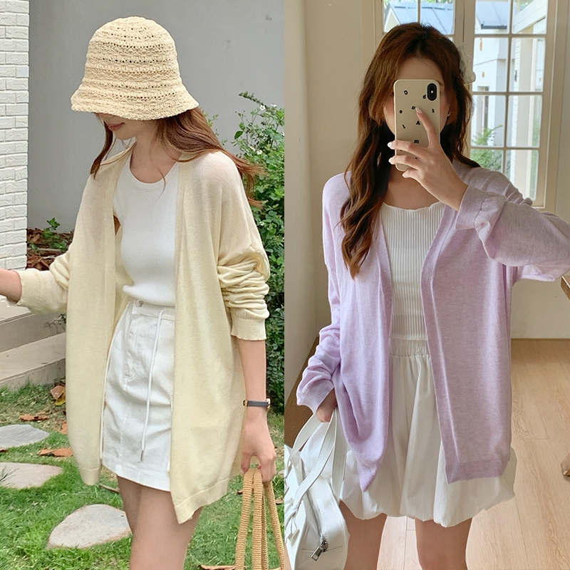 【HARPER】柔美針織開襟罩衫 | 現貨 長袖外套 罩衫 防曬【JTE78914J】白,F|奶油黃,F|紫羅蘭,F|花灰,FHARPER