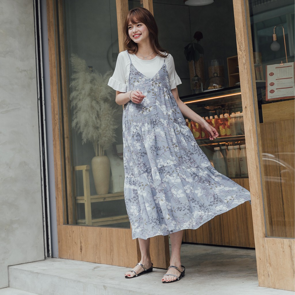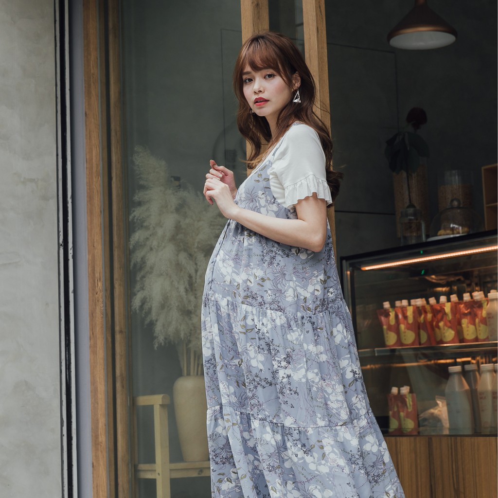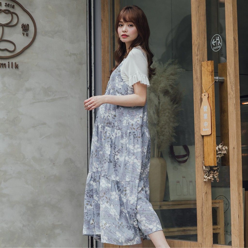 Mamamia孕婦裝 兩件式渡假風花朵哺乳洋裝 正韓製 吊帶洋裝 孕婦裝 孕婦裙 孕婦洋裝 短袖 [A1608]FBreastfeeding WearMamamia孕婦裝