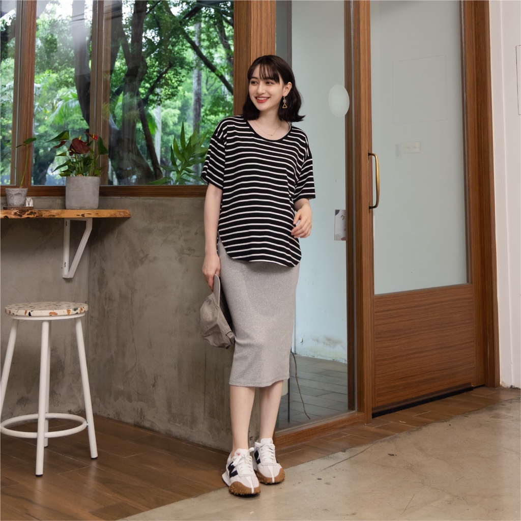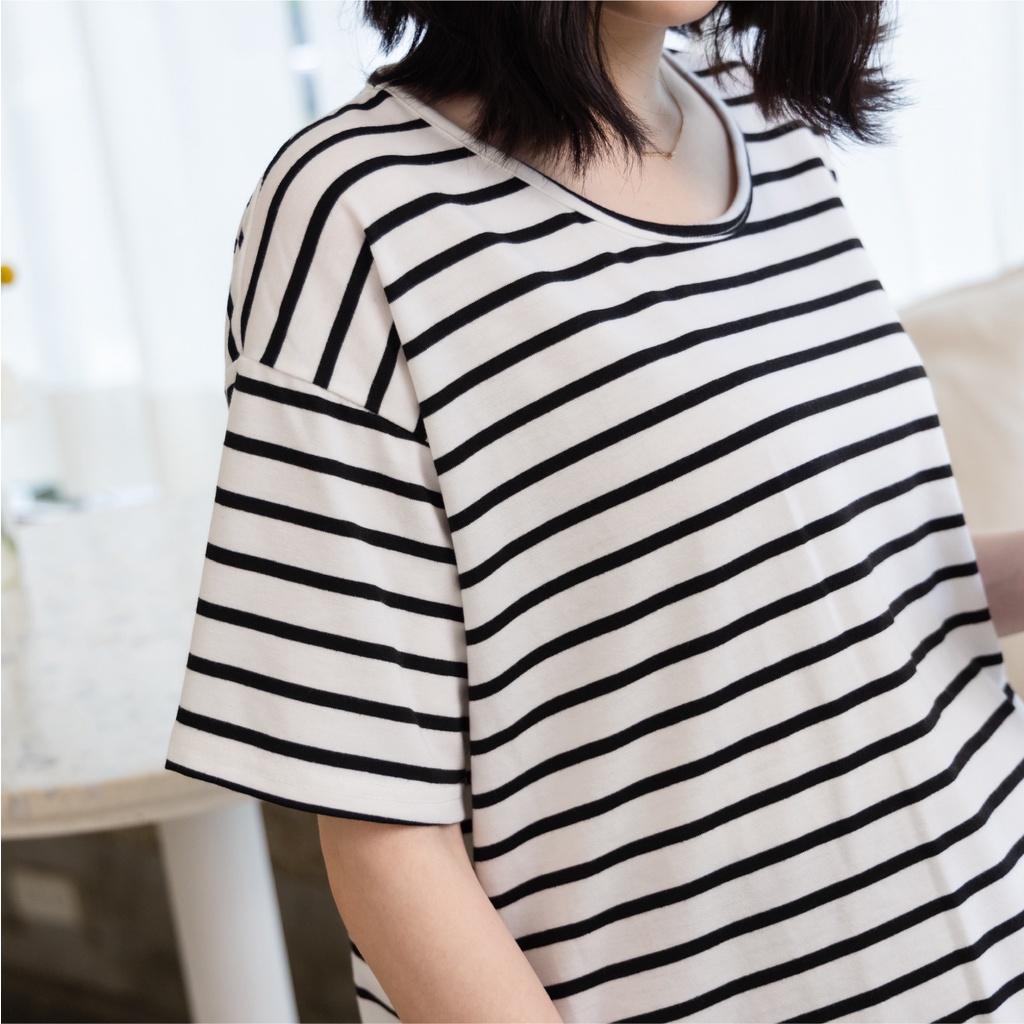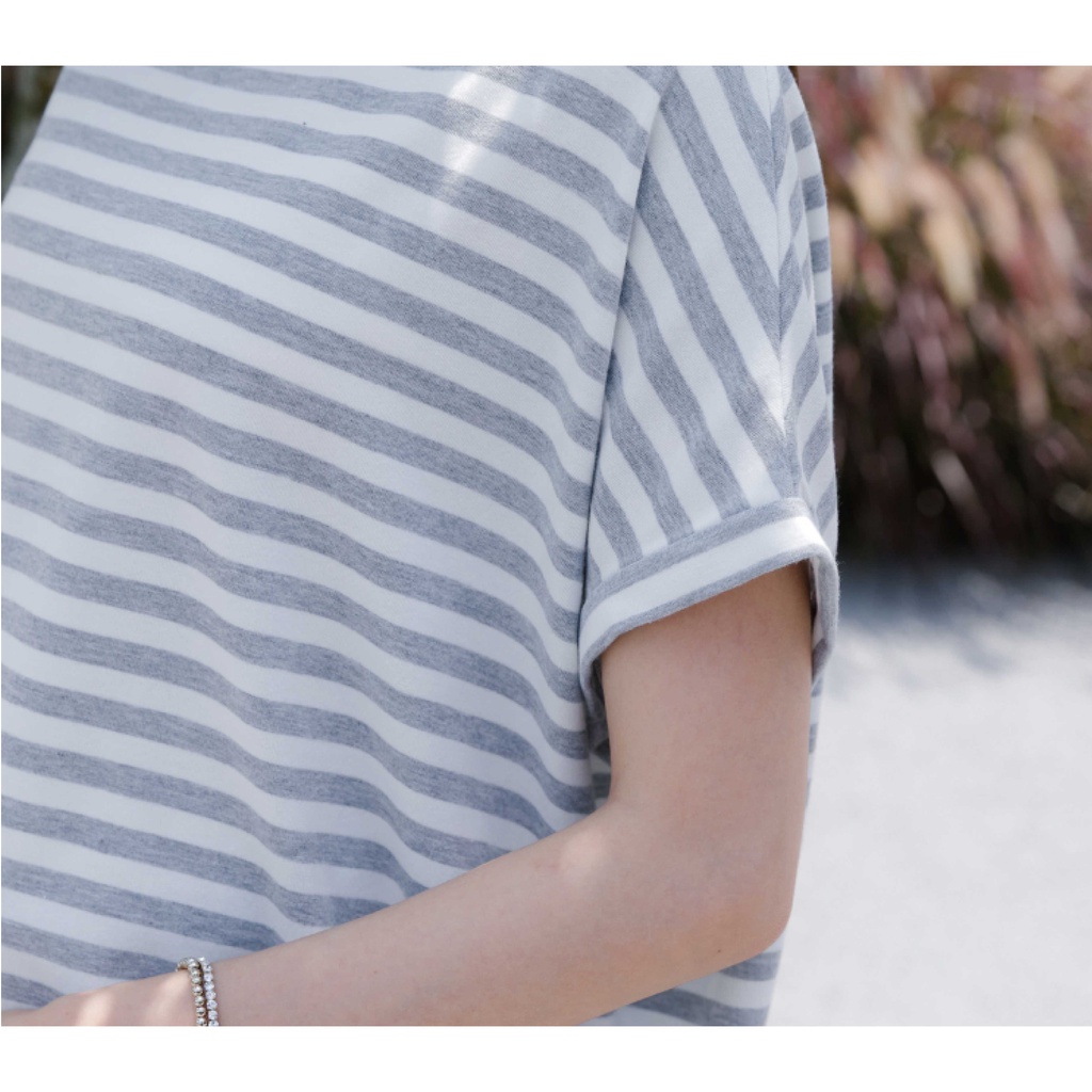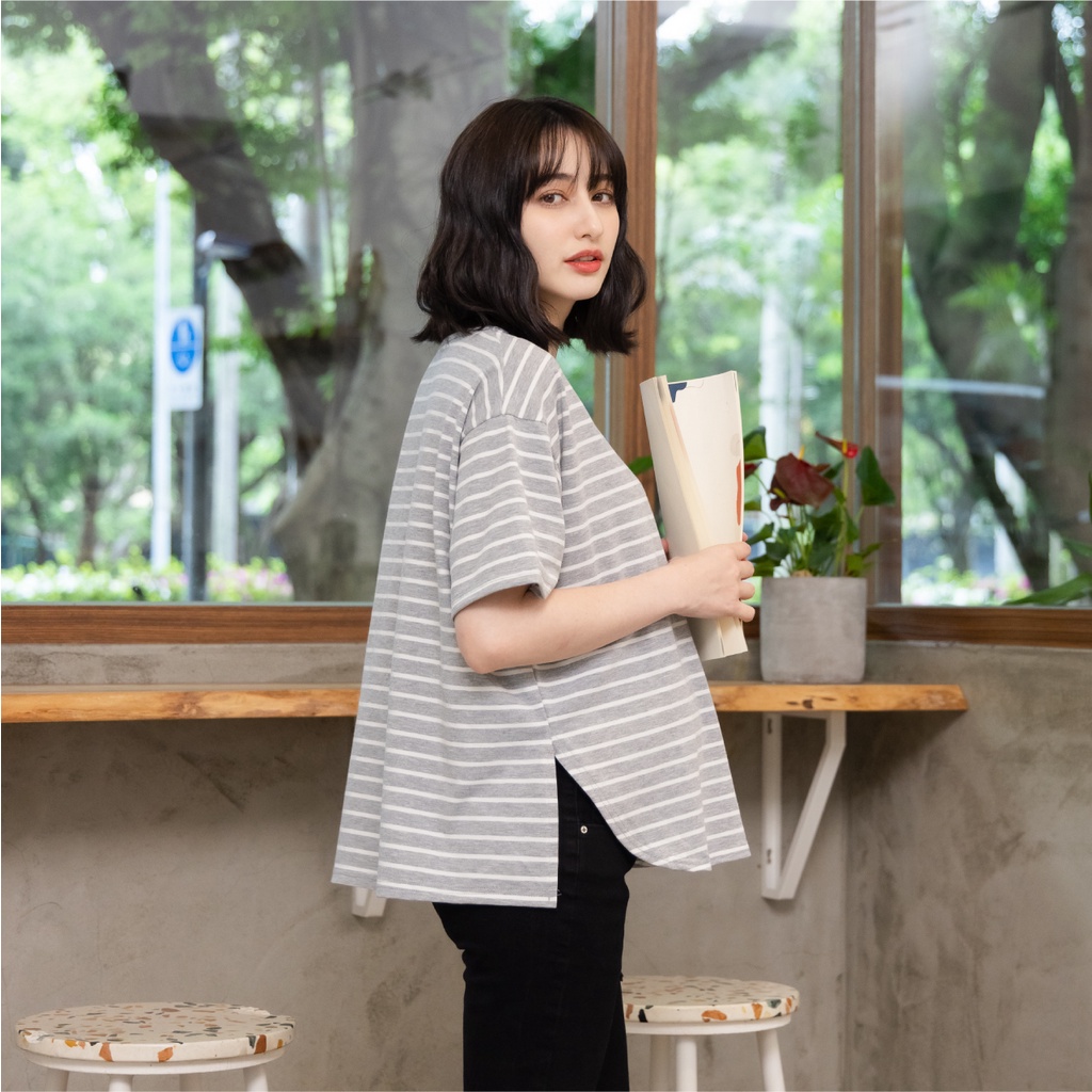 Mamamia孕婦裝 休閒條紋側開岔孕婦裝 正韓製 短袖 孕婦上衣 寬T 百搭T T恤 [A1727]黑|灰|白Maternity TopsMamamia孕婦裝