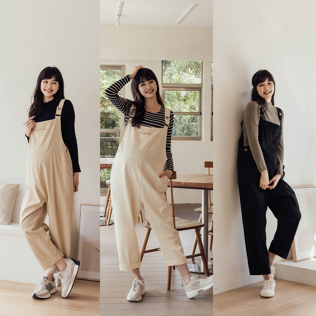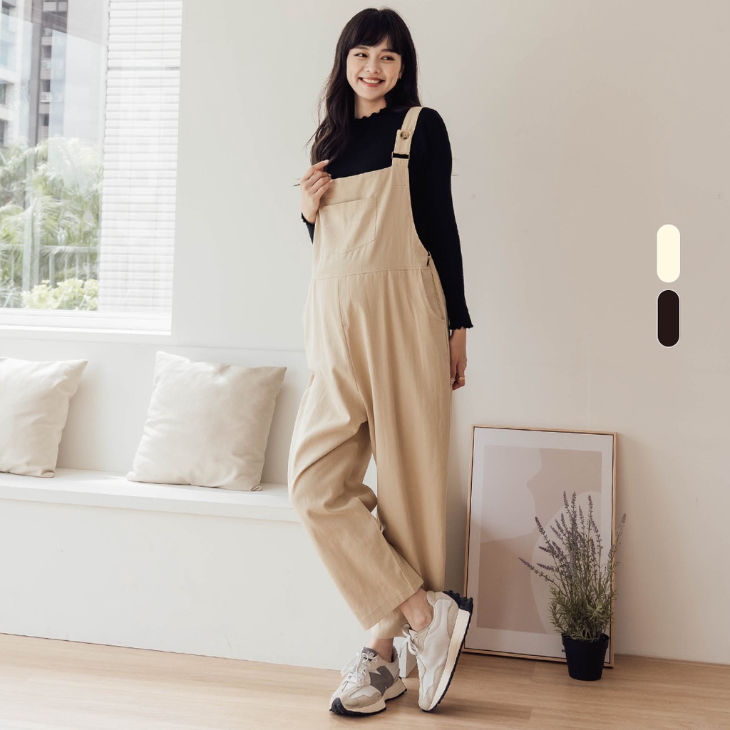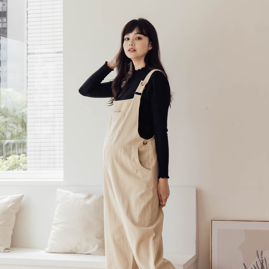 Mamamia孕婦裝 東京甜美感休閒吊帶寬褲 M~L 吊帶褲 吊帶寬褲 孕婦褲 孕婦裝 正韓製 [B6390]卡其,M|卡其,L|米杏,M|米杏,L|黑,M|黑,LMaternity BottomsMamamia孕婦裝