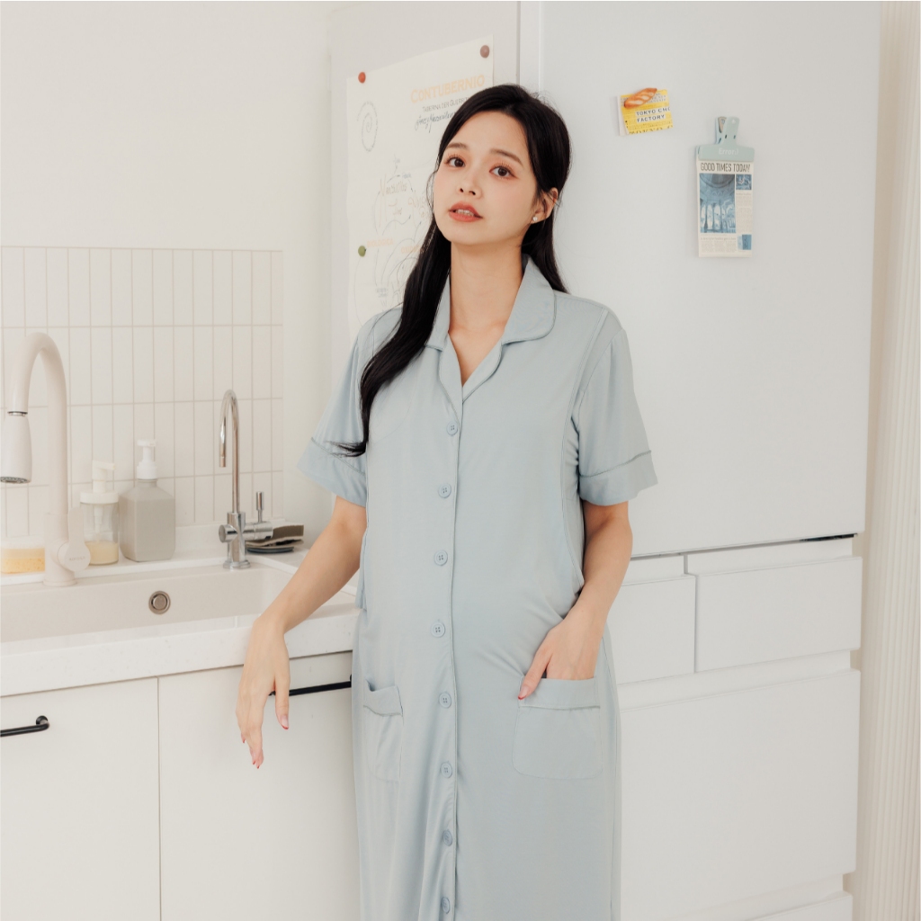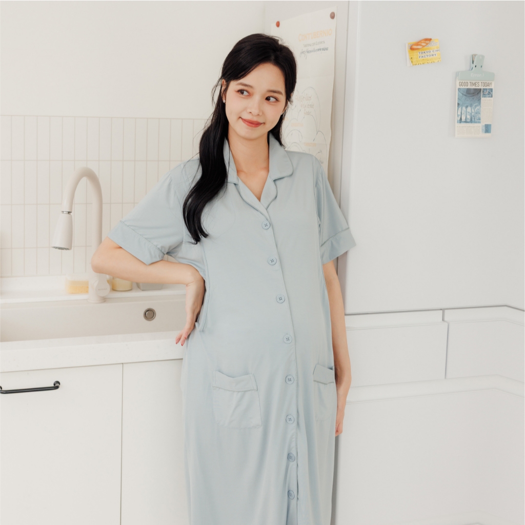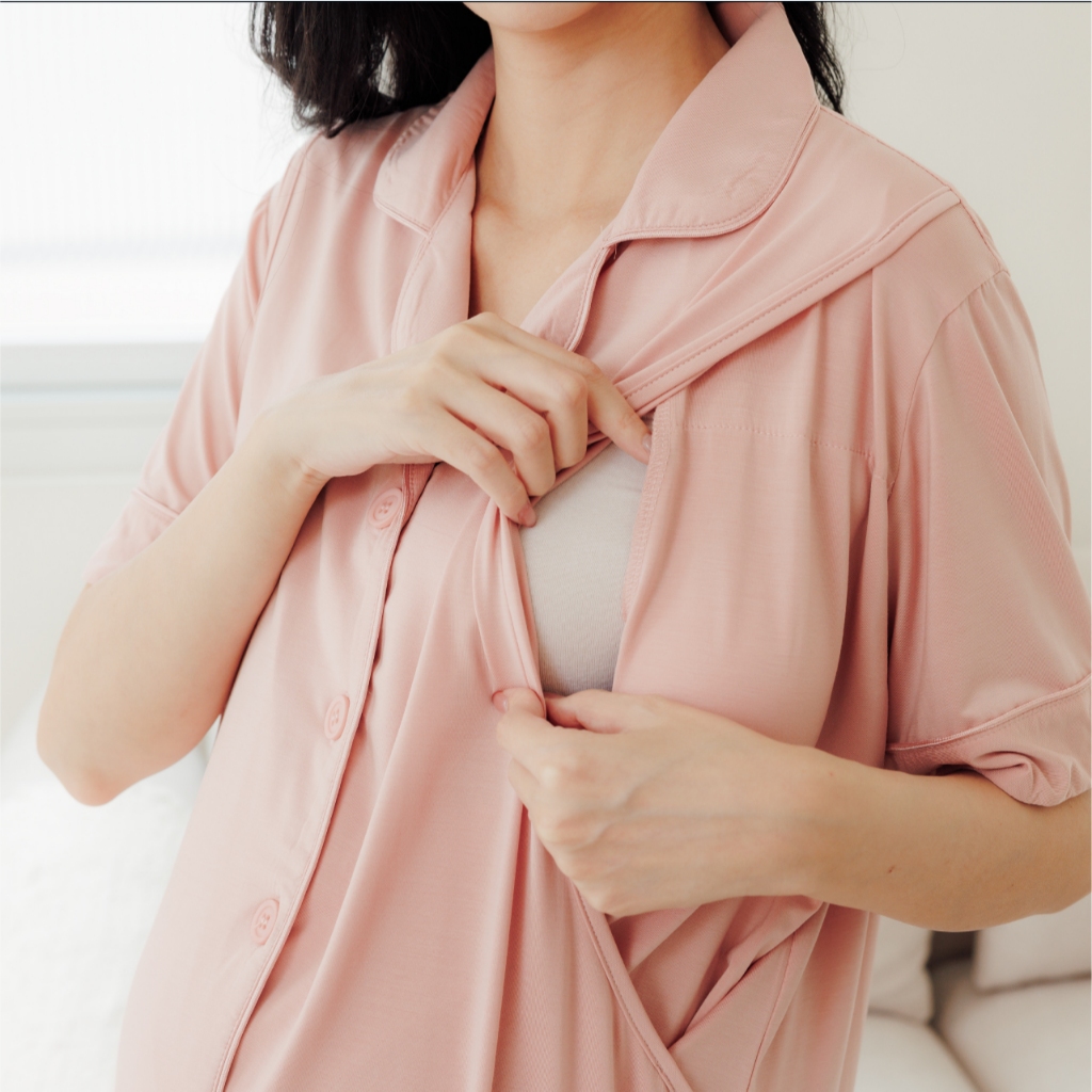 Bra莫代爾柔霧低飽和哺乳洋裝 M~XL 居家服 喂奶衣 短袖 哺乳衣 月子服 孕婦裝[A1974]藍,M|藍,L|藍,XL|咖啡,M|咖啡,L|咖啡,XL|粉,M|粉,L|粉,XLBreastfeeding WearMamamia孕婦裝
