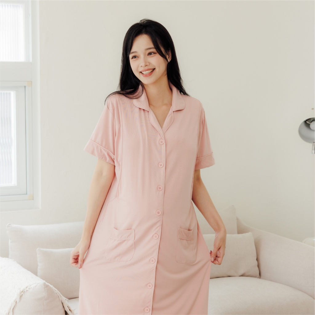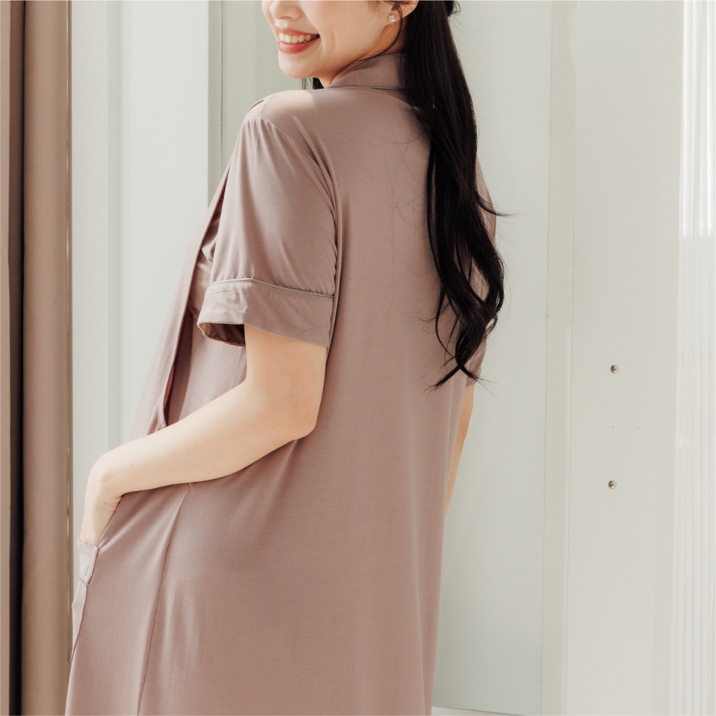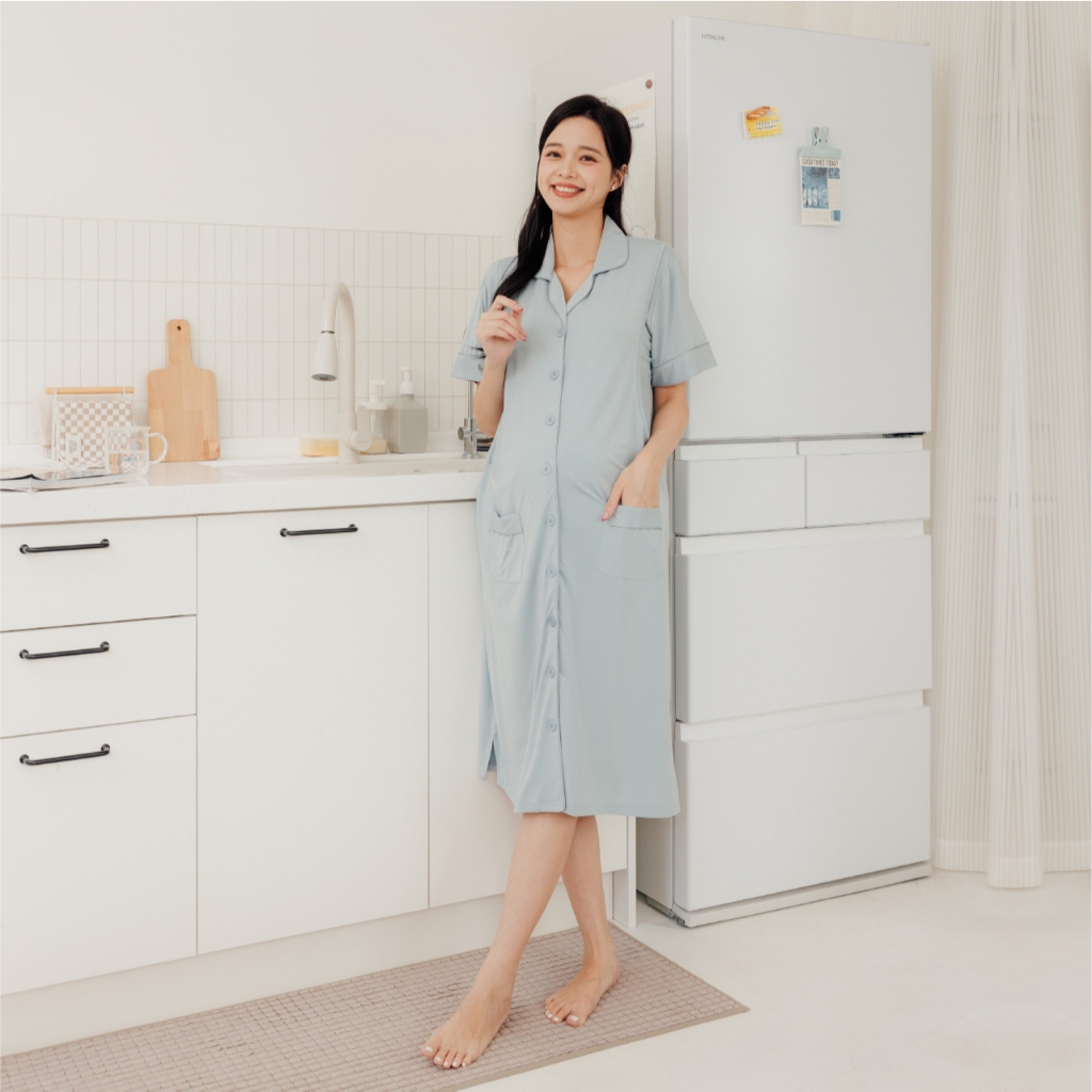 Bra莫代爾柔霧低飽和哺乳洋裝 M~XL 居家服 喂奶衣 短袖 哺乳衣 月子服 孕婦裝[A1974]藍,M|藍,L|藍,XL|咖啡,M|咖啡,L|咖啡,XL|粉,M|粉,L|粉,XLBreastfeeding WearMamamia孕婦裝