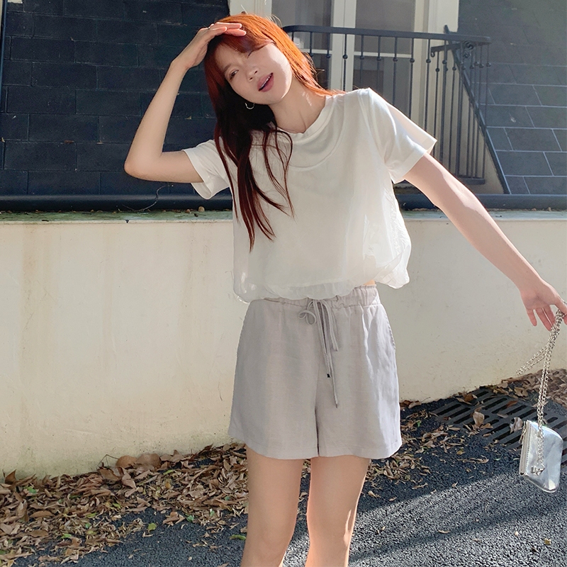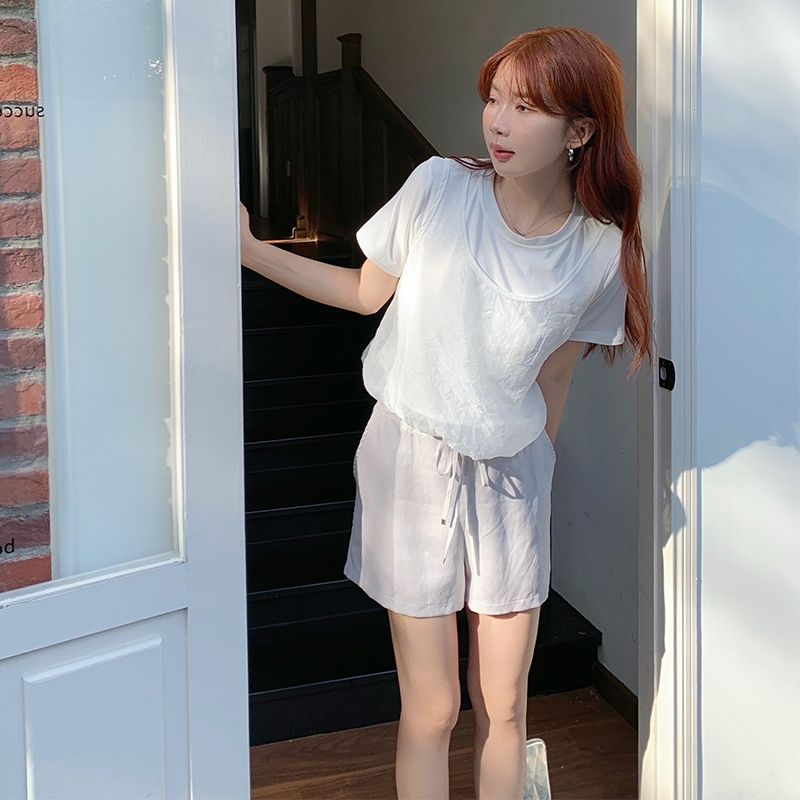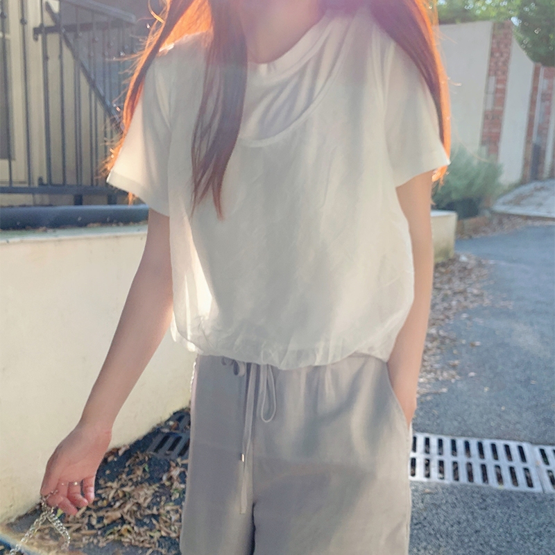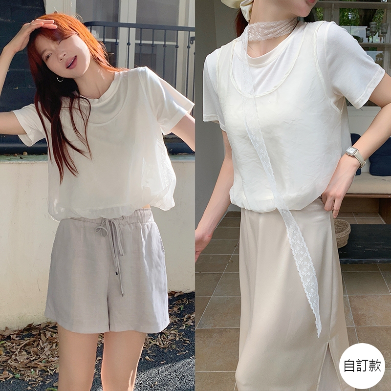 【HARPER】品牌自訂雲朵感假兩件上衣 | 現貨 短袖上衣 婚禮 網紗【CLB45530J】白,S~M|白,L~XL|杏,S~M|杏,L~XLT-shirtsHARPER