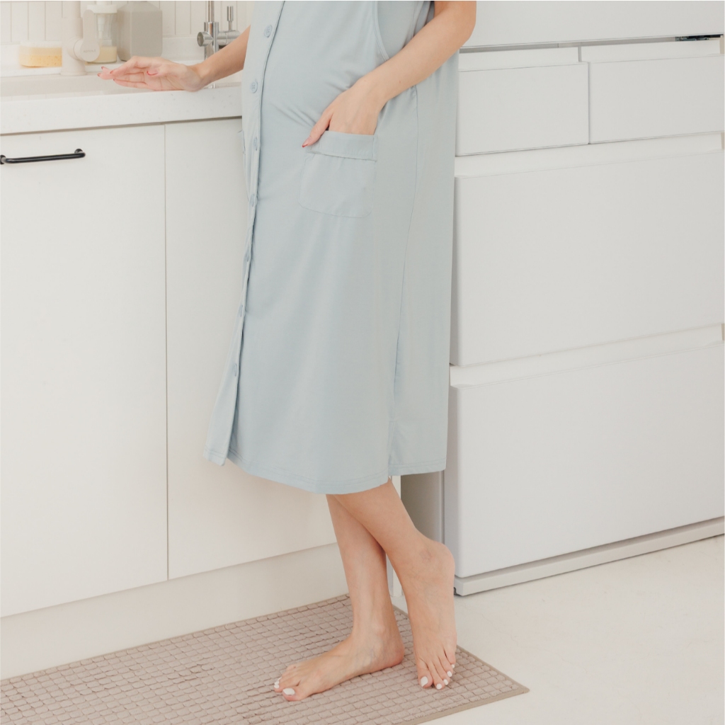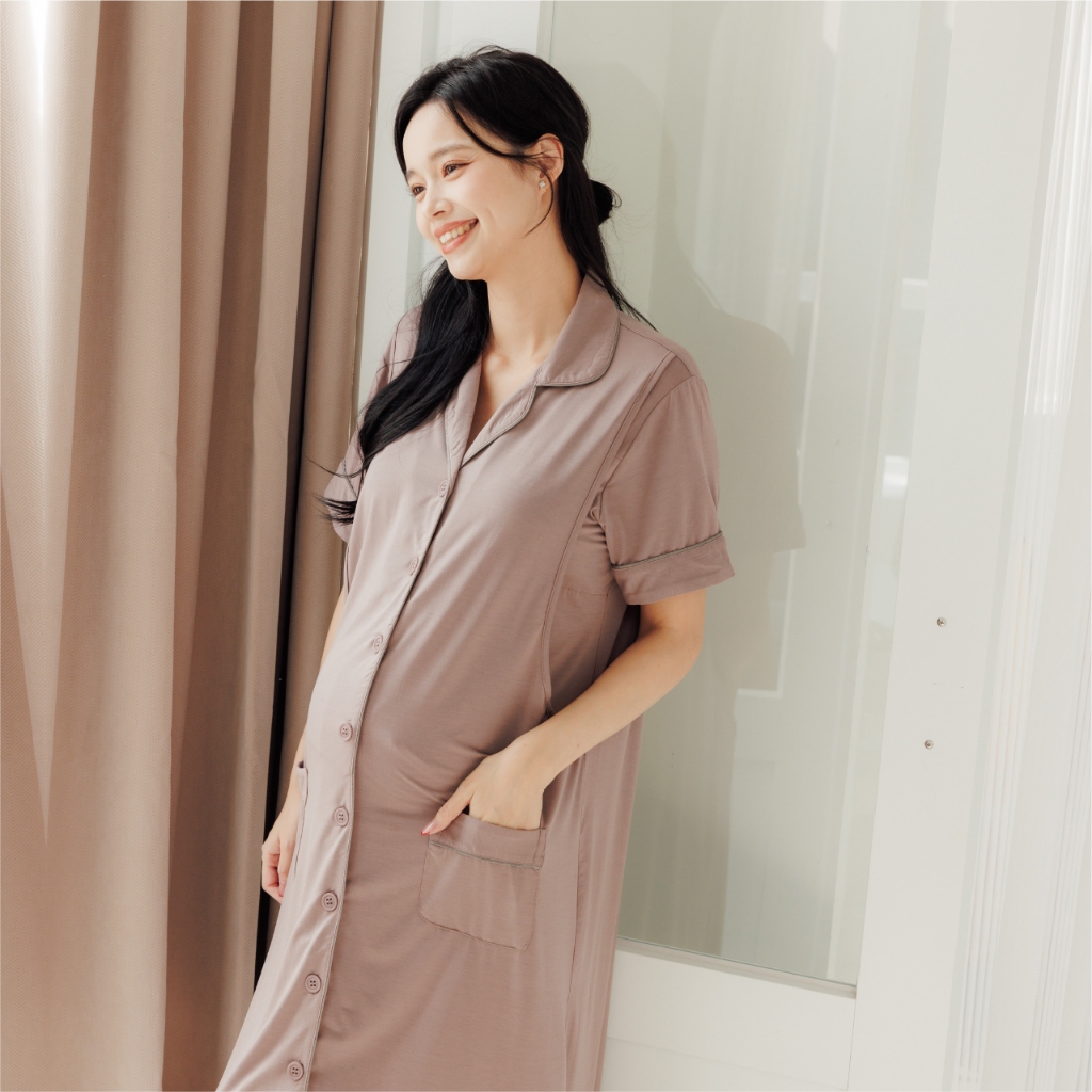 Bra莫代爾柔霧低飽和哺乳洋裝 M~XL 居家服 喂奶衣 短袖 哺乳衣 月子服 孕婦裝[A1974]