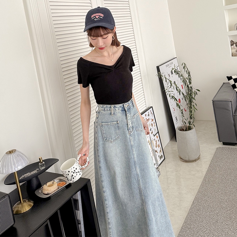 【HARPER】品牌自訂h.co涼夏順身牛仔長裙 | 現貨 裙子 涼感 牛仔裙 長裙【SKZ78034J】藍,S|藍,M|藍,LHARPER