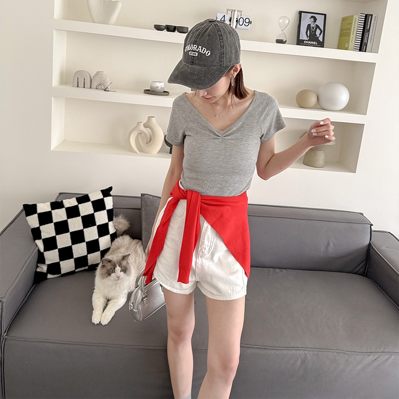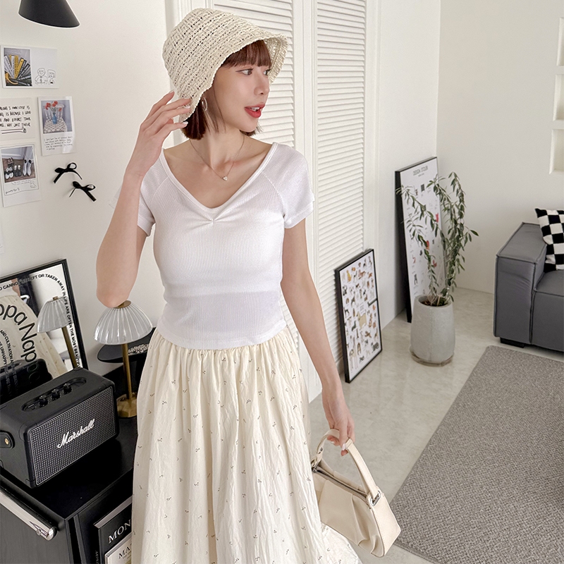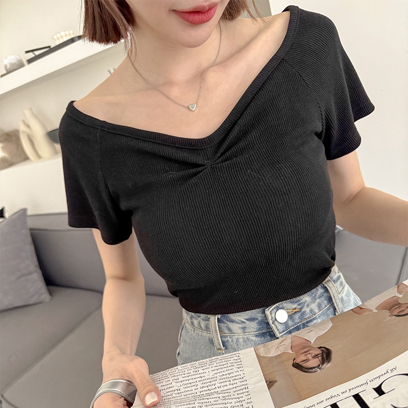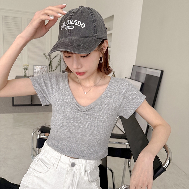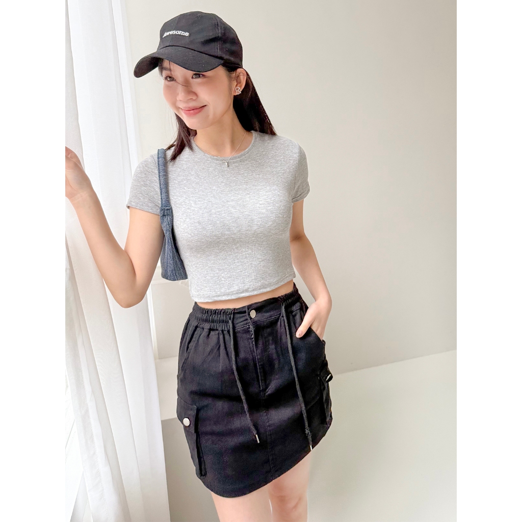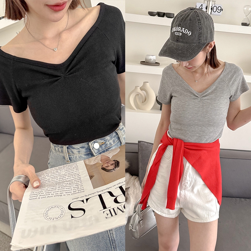 【HARPER】小抓褶修身上衣 | 現貨 短版 上衣 素T【CLF28320J】白,F|灰,F|黑,FT-shirtsHARPER