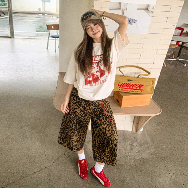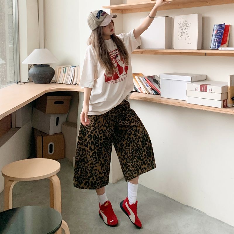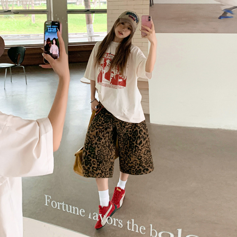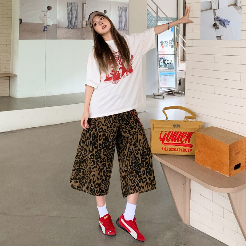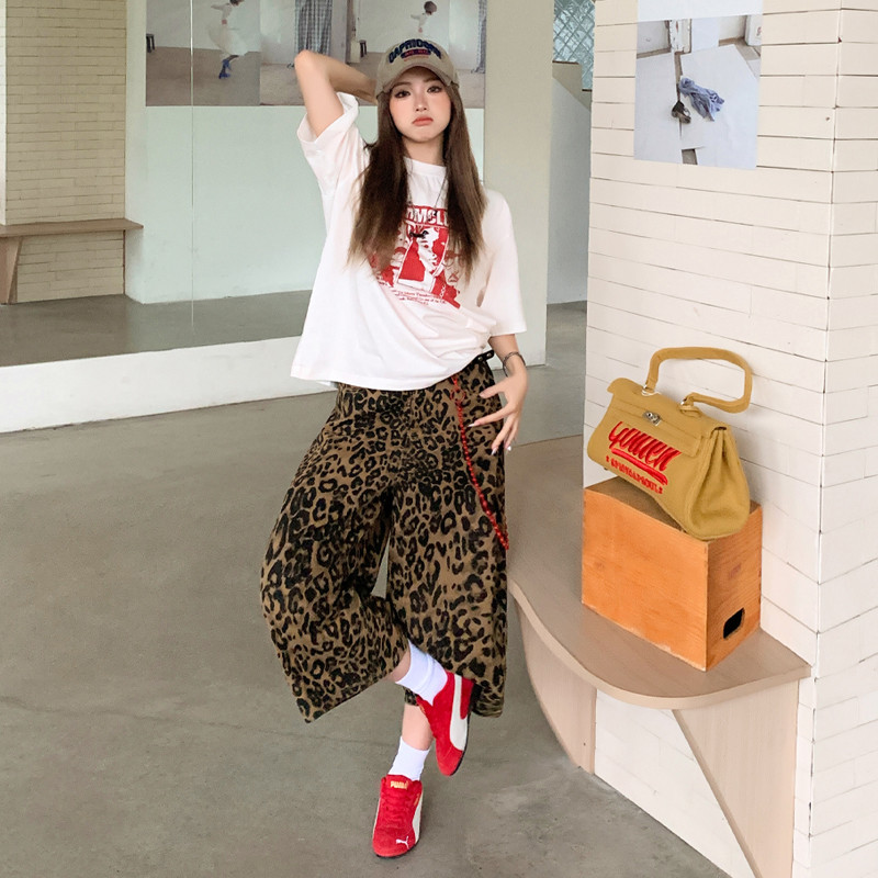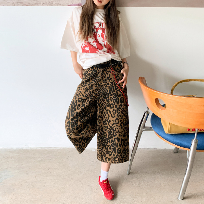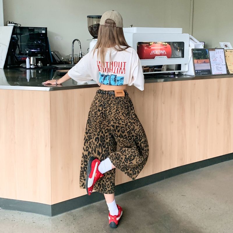 【HOT 本舖】 ~美式豹紋高腰闊腿牛仔七分褲女2025春夏新款辣妹顯瘦直筒褲豹紋,M|豹紋,L|豹紋,XL|豹紋,XS|豹紋,SHOT本舖|女裝館