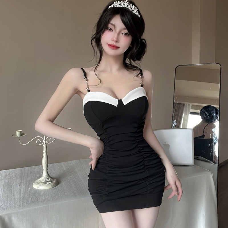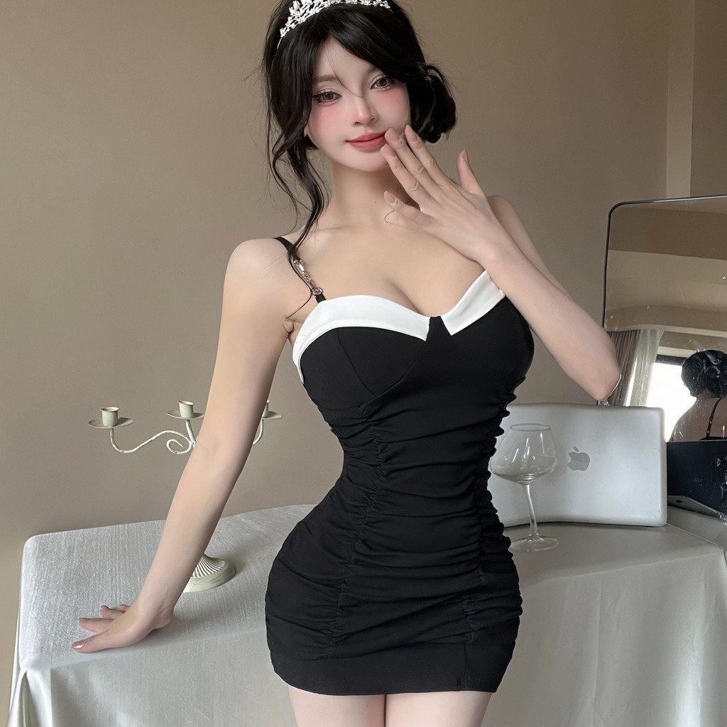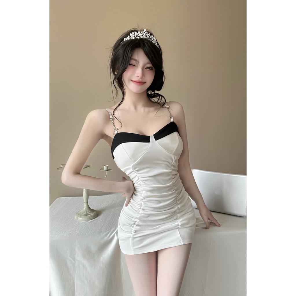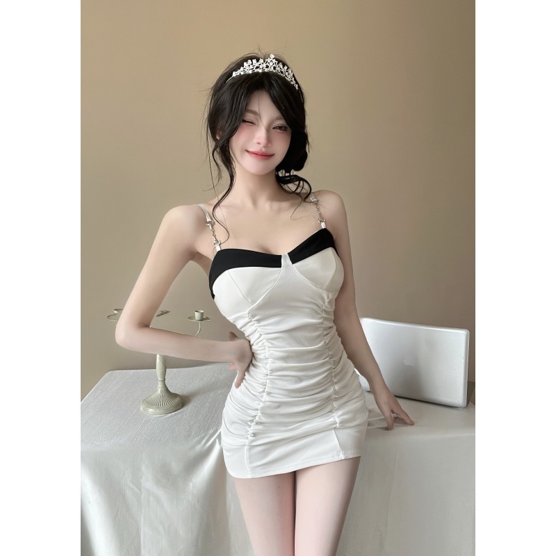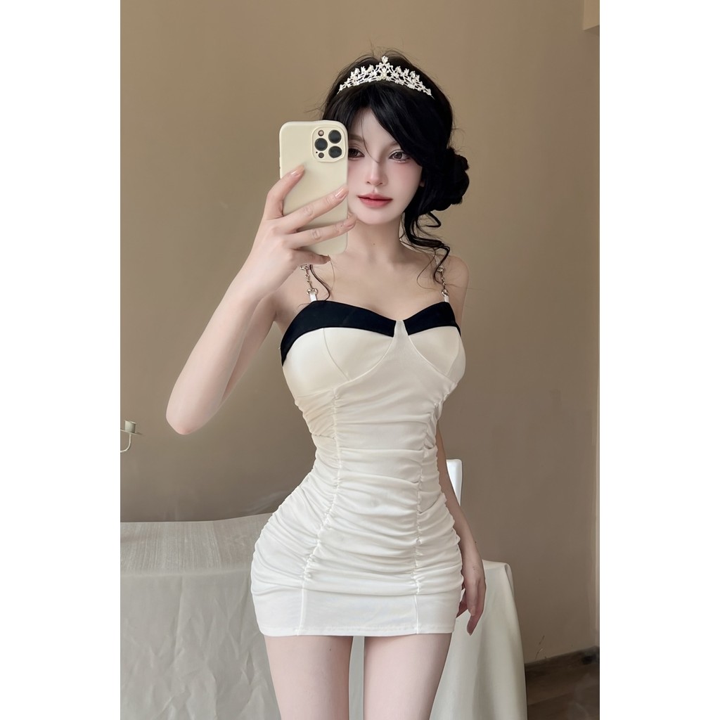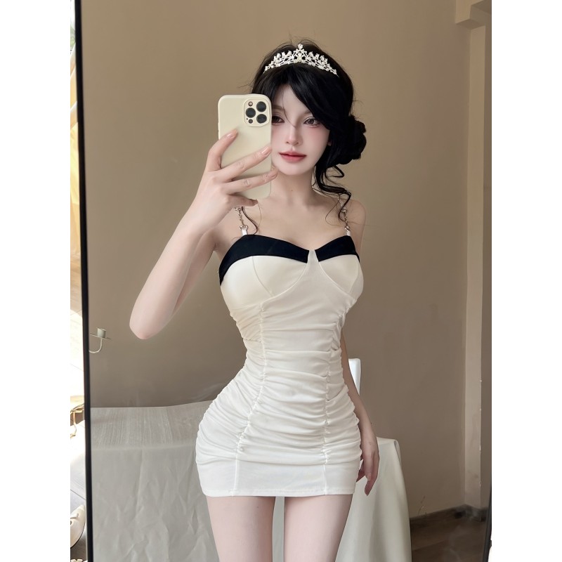 【HOT 本舖】 實拍百搭性感撞色棉質緊身顯瘦收腰吊帶包臀連衣裙子白色,S|白色,M|白色,L|黑色,S|黑色,M|黑色,LHOT本舖|女裝館