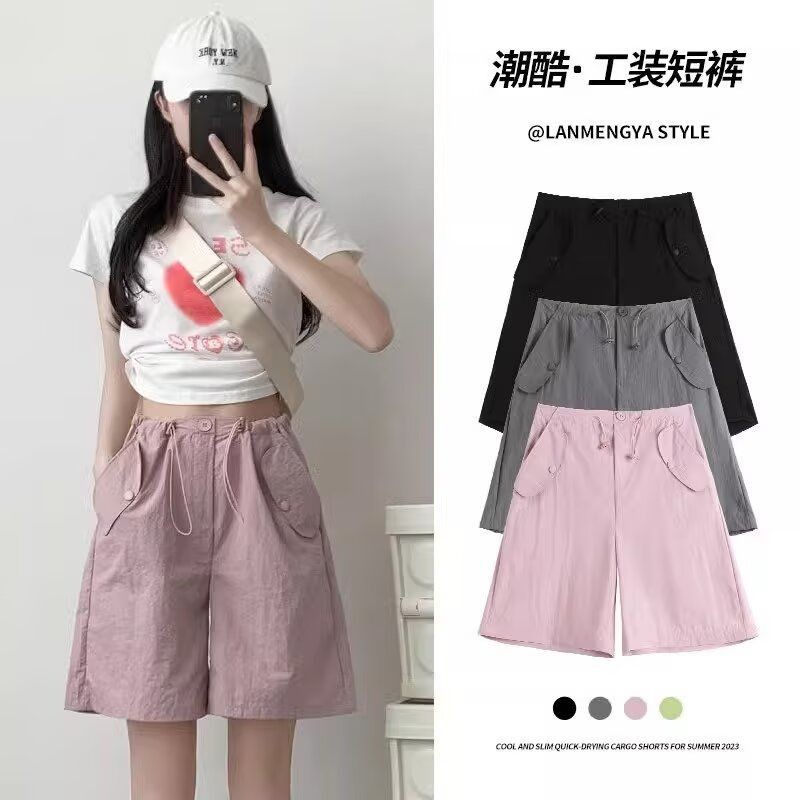 【HOT 本舖】 夏季工裝短褲女薄款高腰休閒闊腿速干運動美式五分褲黑色,XL|黑色,2XL|黑色,3XL|粉紅色,S|粉紅色,M|粉紅色,L|粉紅色,XL|粉紅色,2XL|粉紅色,3XL|深灰色,S|深灰色,M|深灰色,L|深灰色,XL|深灰色,2XL|深灰色,3XL|黑色,S|黑色,M|黑色,LShortsHOT本舖|女裝館