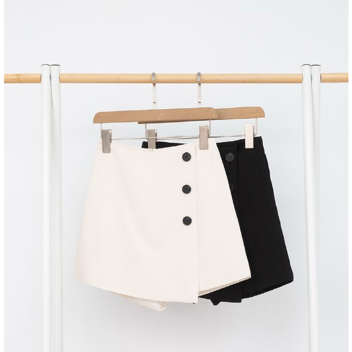 IN SHOP 氣質三釦斜紋褲裙-共2色【KT21691】黑,M|黑,L|杏,S|杏,M|杏,L|黑,SIN’ SHOP 旗艦店