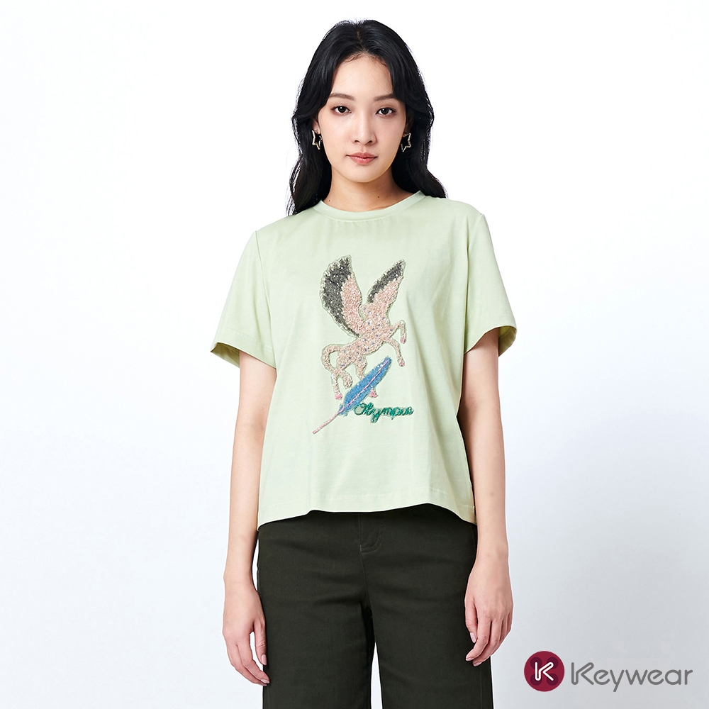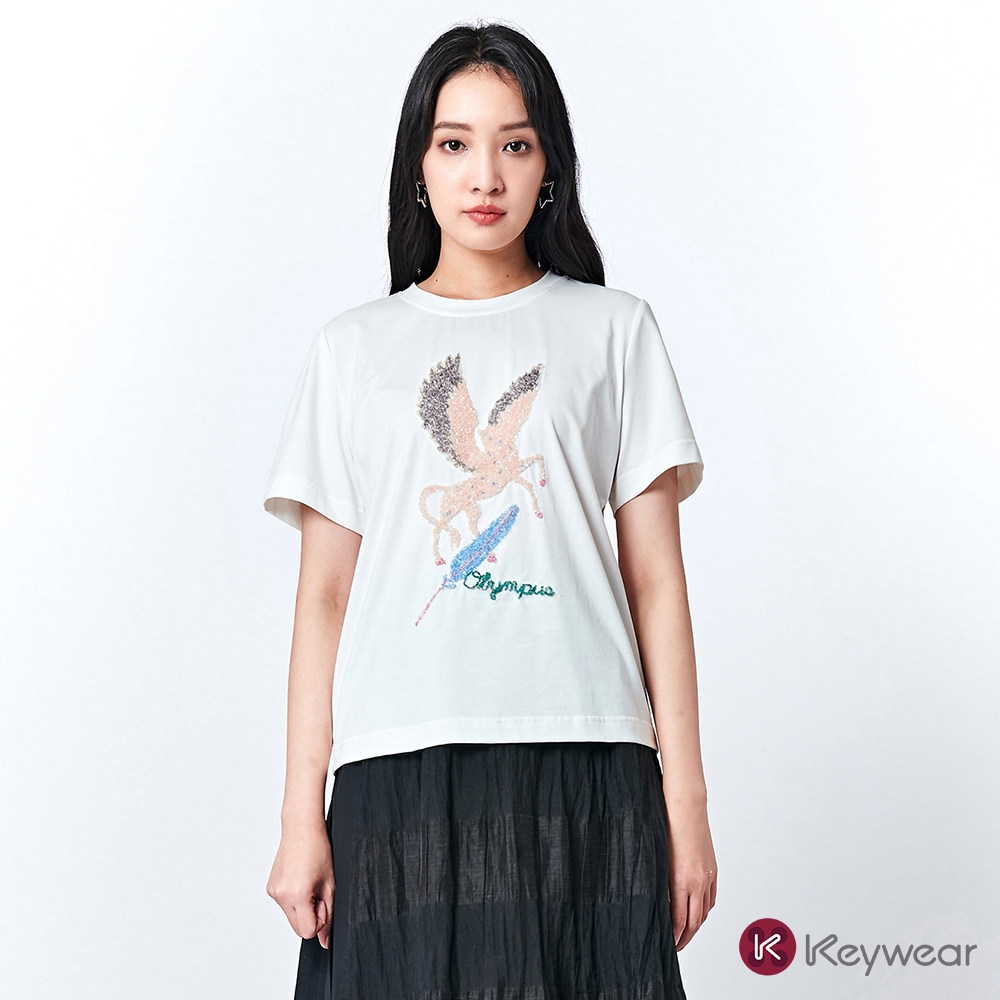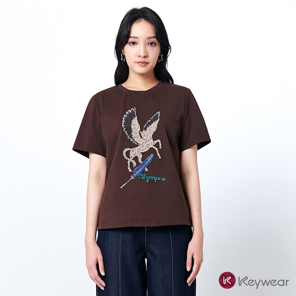 【KeyWear 奇威名品】飛馬圖案工藝休閒寬鬆短袖上衣(共3色)深咖啡,S|白,M|白,S|白,EL|深咖啡,M|深咖啡,L|淺綠,M|淺綠,EL|白,L|深咖啡,XL|淺綠,S|淺綠,XL|白,XL|深咖啡,EL|淺綠,LT-shirtsKeywear奇威官方旗艦店