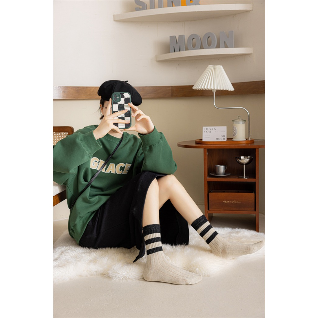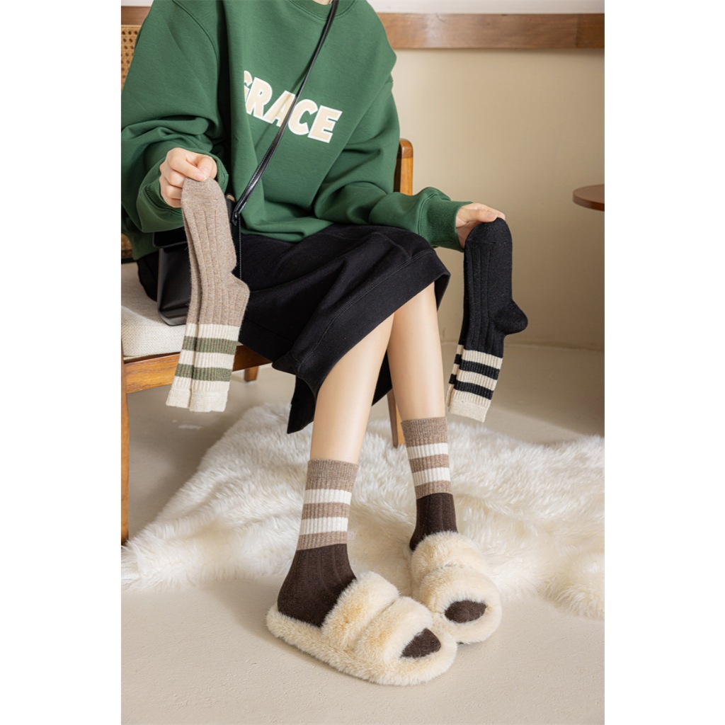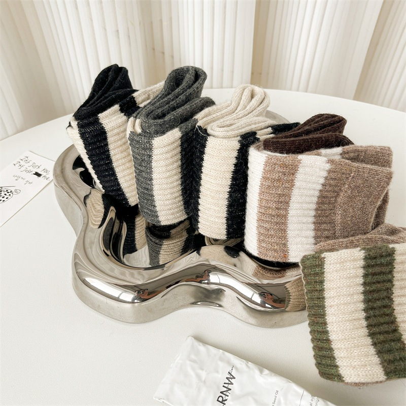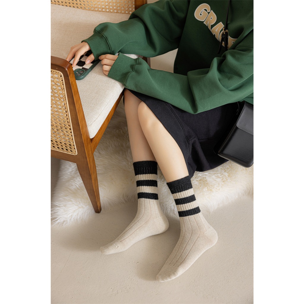 【Pincers 品麝士】文青風百搭奶油色系中筒襪 中筒襪 條紋襪 棉襪文墨黑|米白色|古典灰|焦糖色|大地卡其Sockskyoyeh 國岳