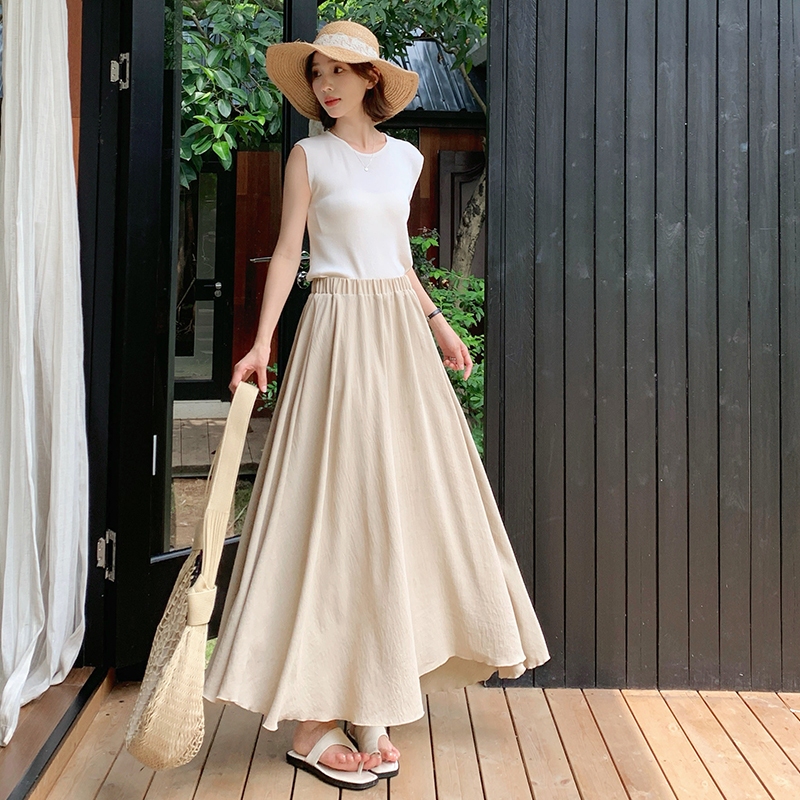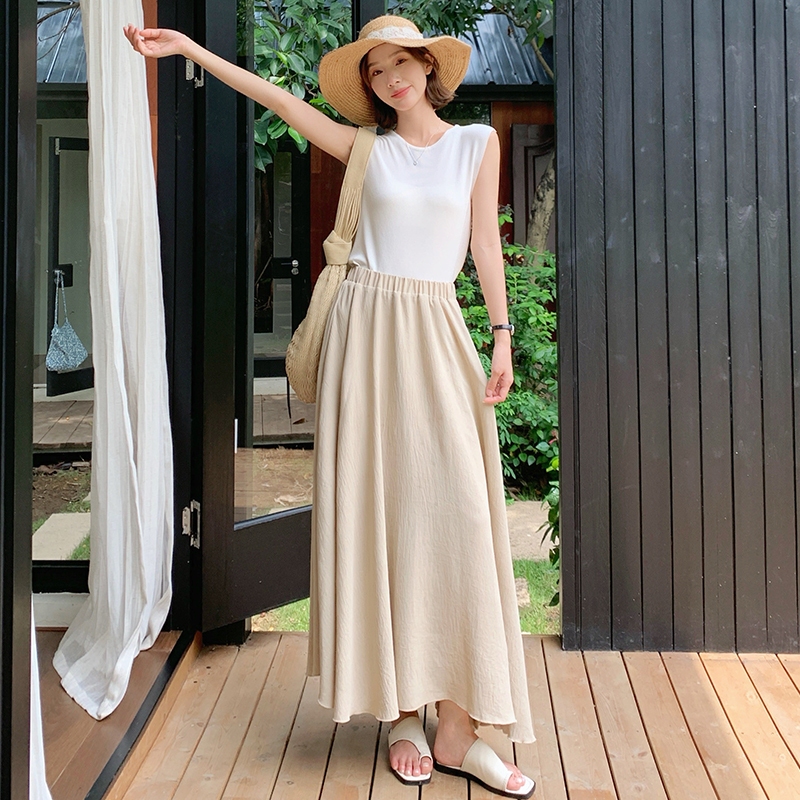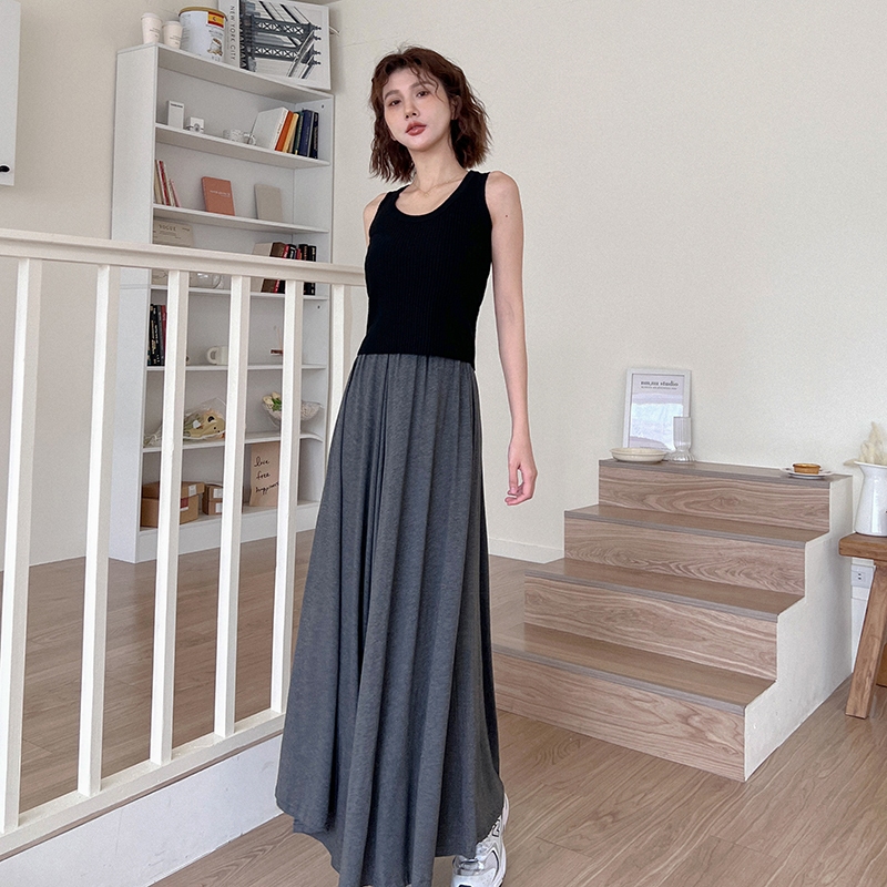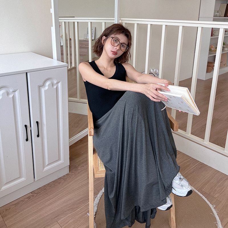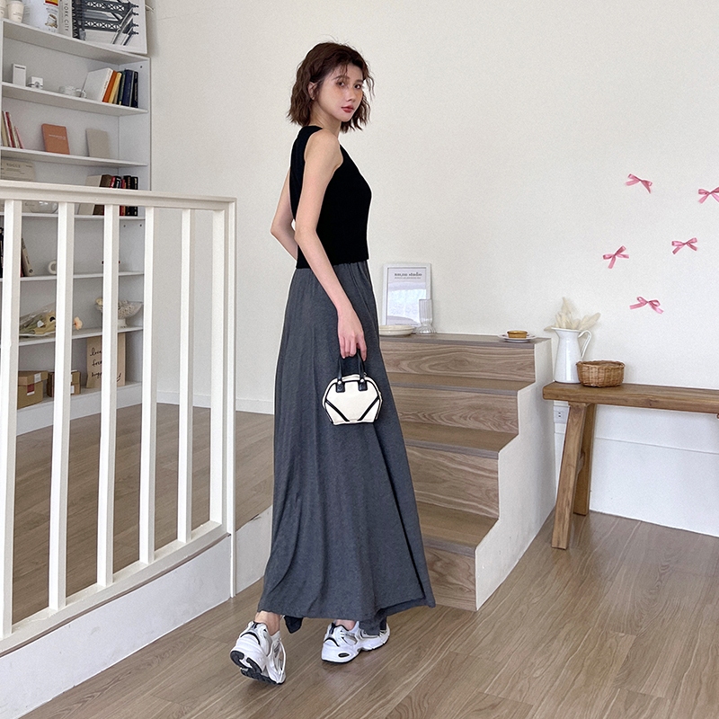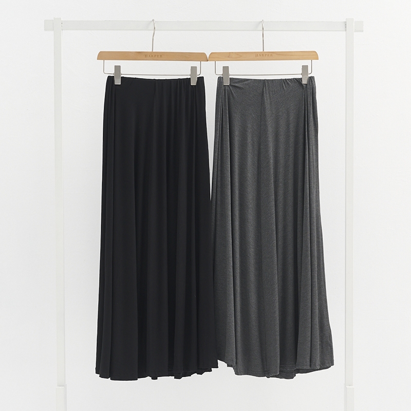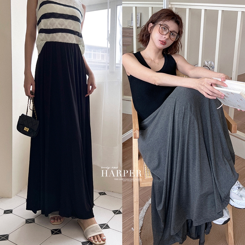 【HARPER】極Q彈輕柔涼感長裙 | 現貨 中長裙 涼感 棉裙 女裝【SKC57325H】深灰,F|黑,FHARPER