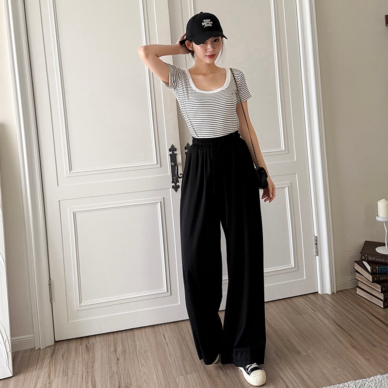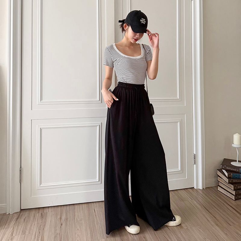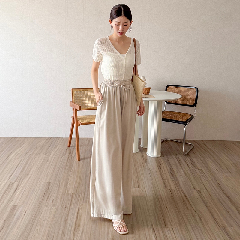 【HARPER】飄逸涼感抽繩寬褲 | 現貨 寬褲 褲子 長褲 涼感【PNE78532J】杏,F|黑,FPantsHARPER