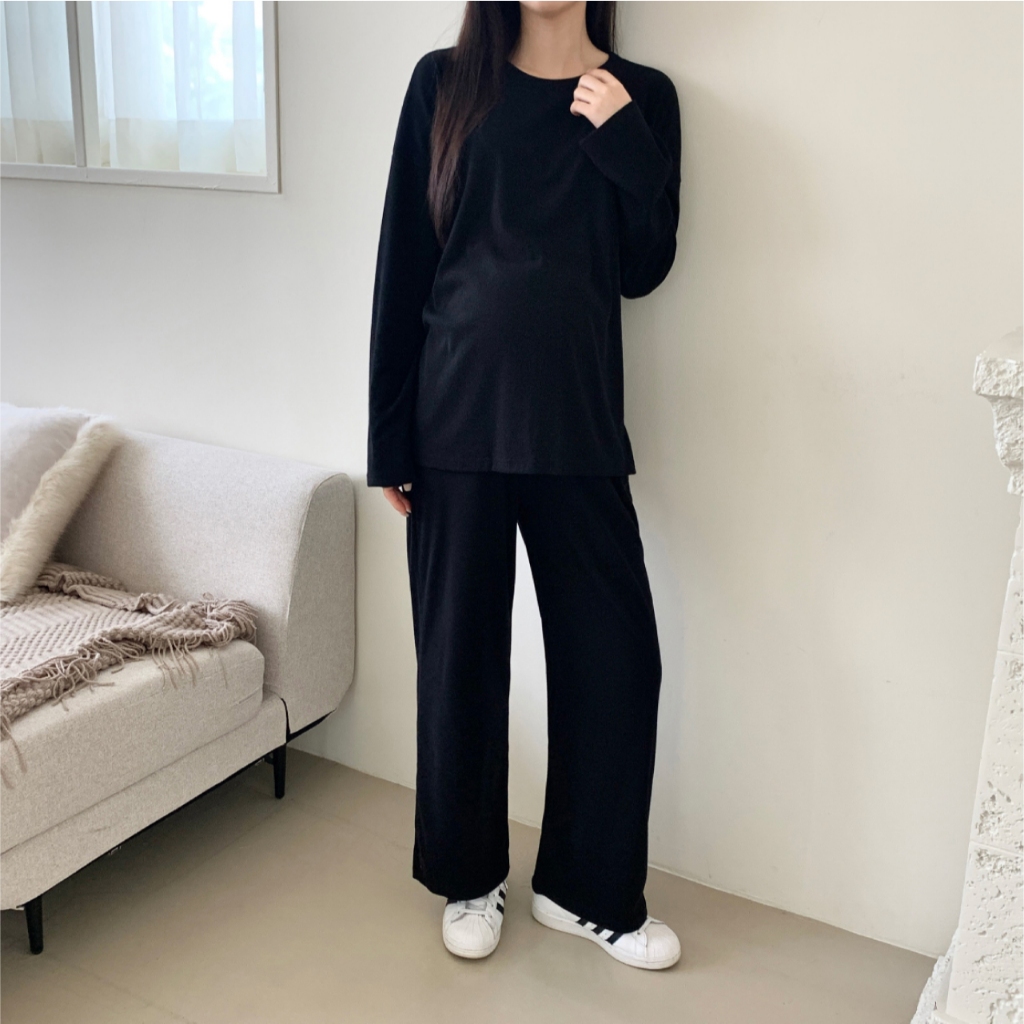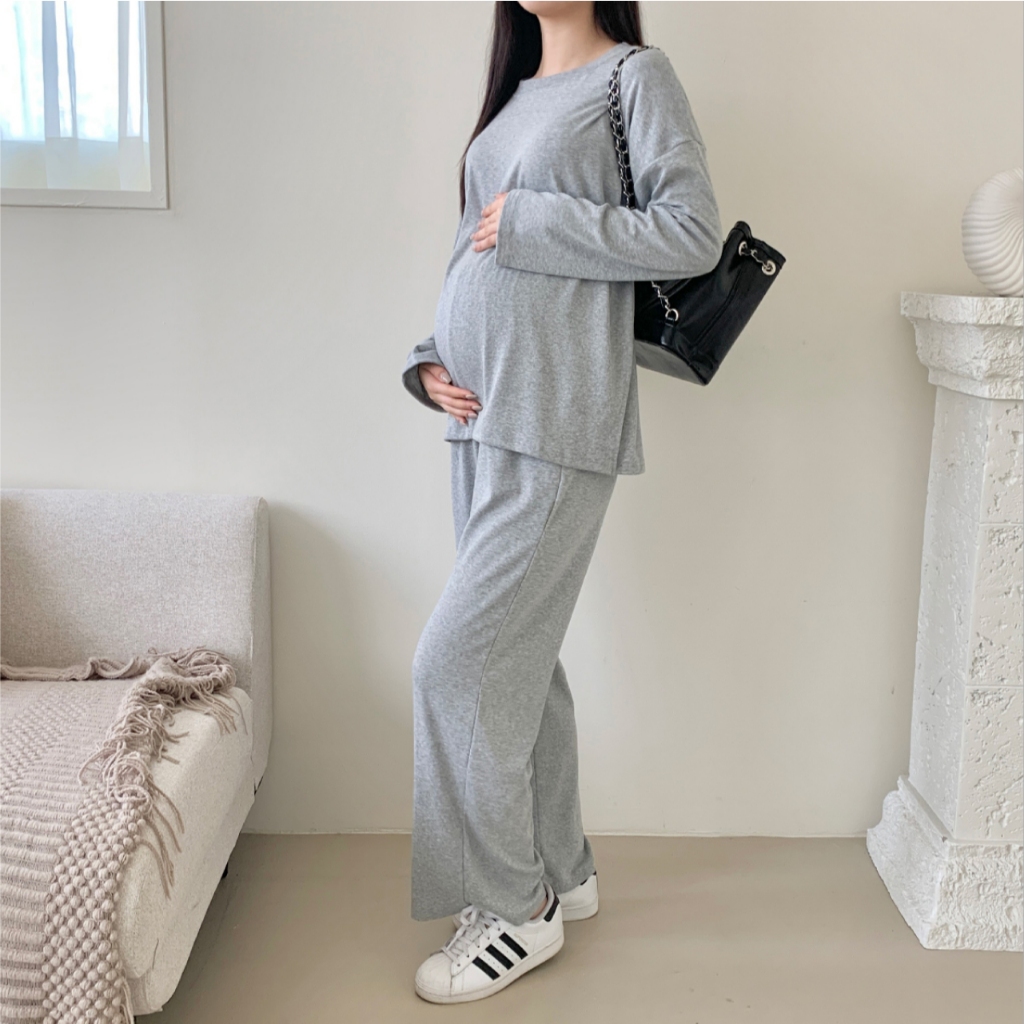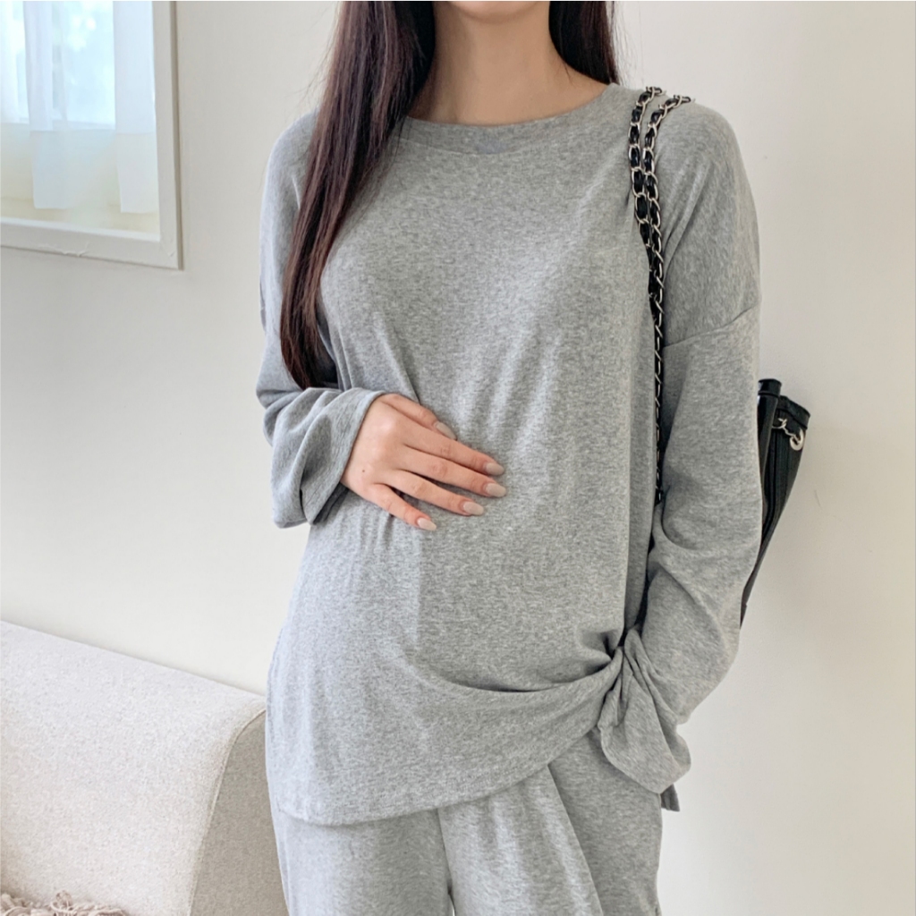 Mamamia孕婦裝 慵懶日常磨毛休閒孕婦套裝 正韓製 孕婦套裝 孕婦褲 長袖 保暖 孕婦裝 [D7734]米白|灰|黑Maternity SetsMamamia孕婦裝