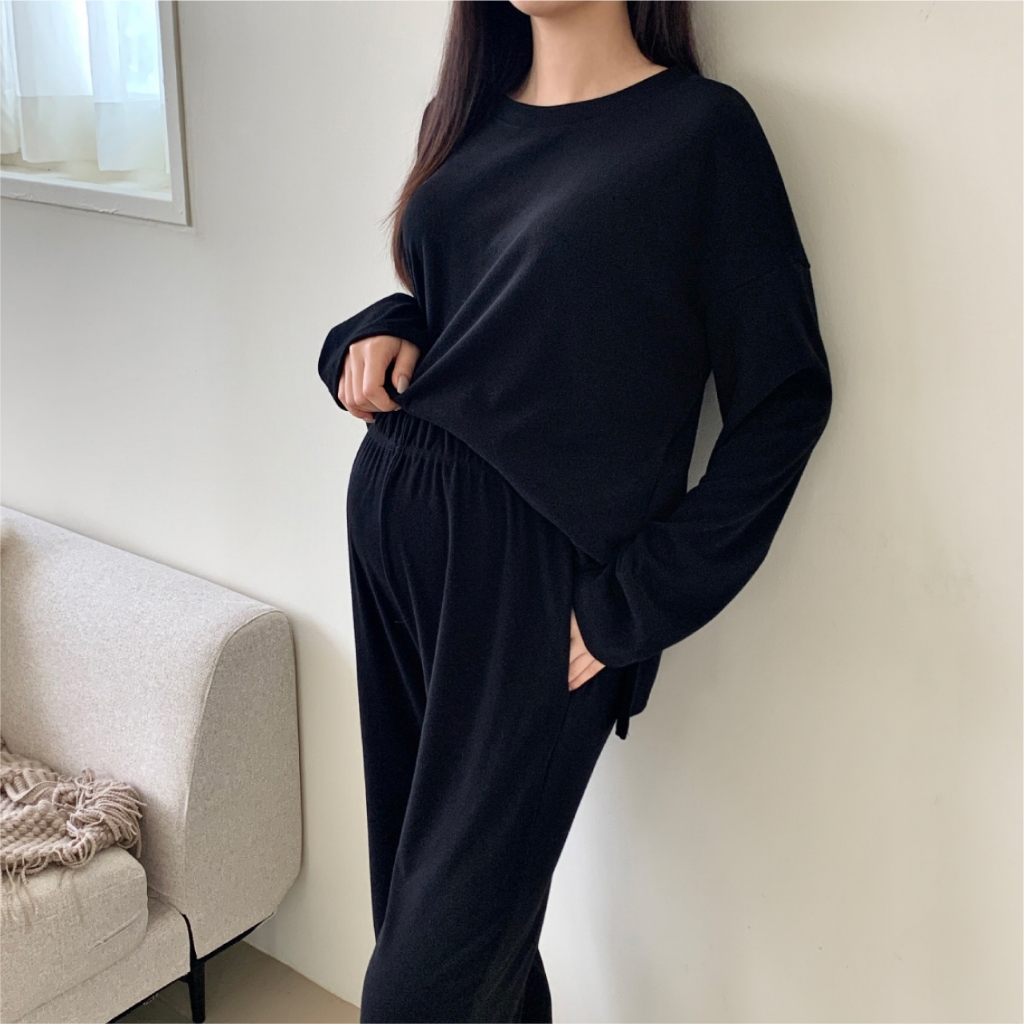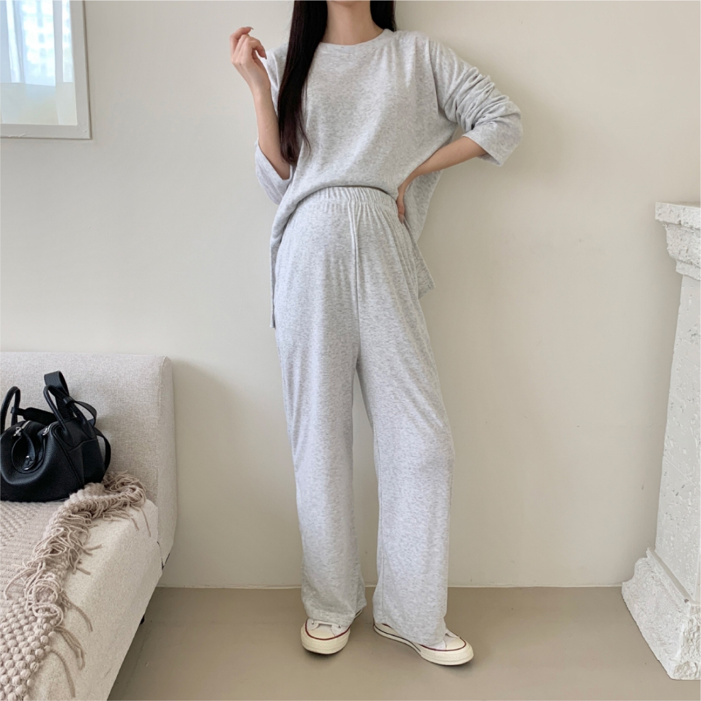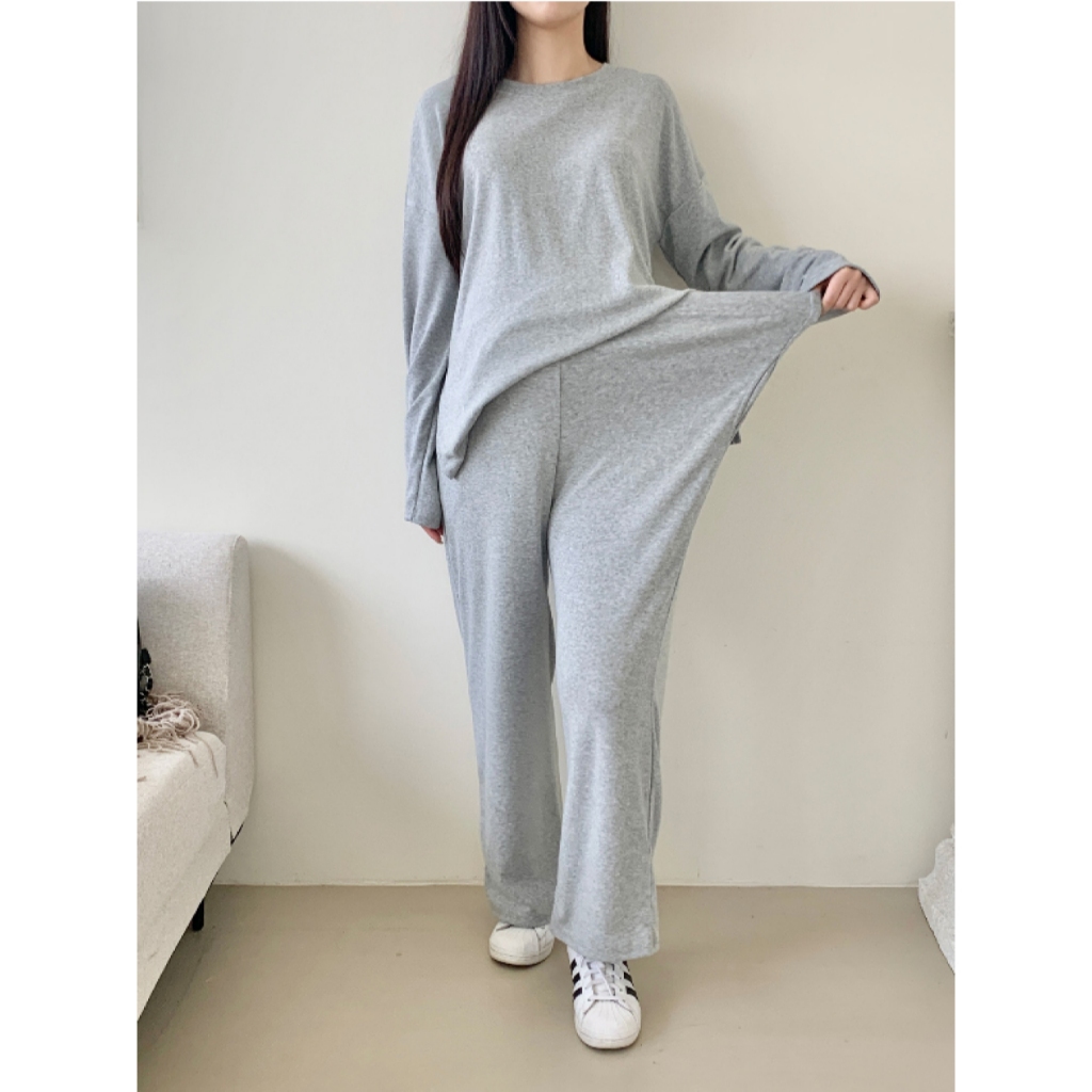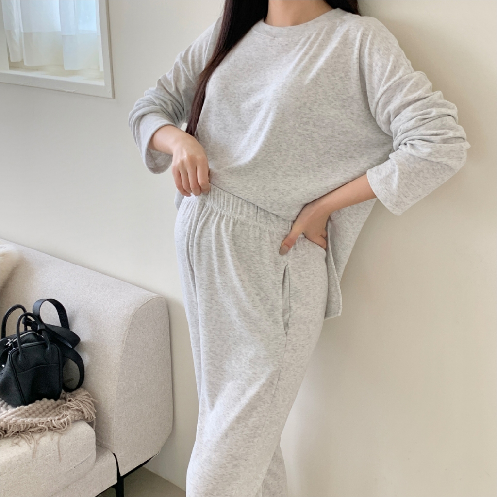 Mamamia孕婦裝 慵懶日常磨毛休閒孕婦套裝 正韓製 孕婦套裝 孕婦褲 長袖 保暖 孕婦裝 [D7734]米白|灰|黑Maternity SetsMamamia孕婦裝