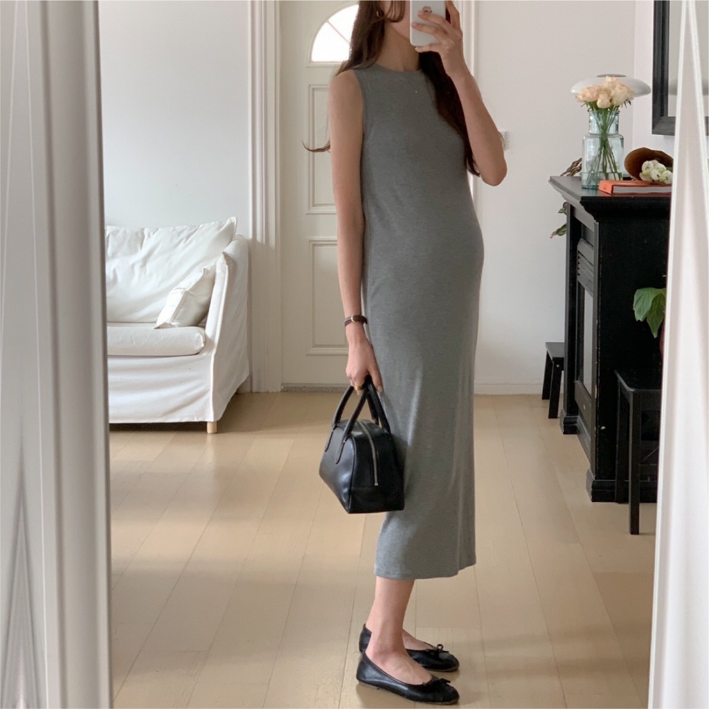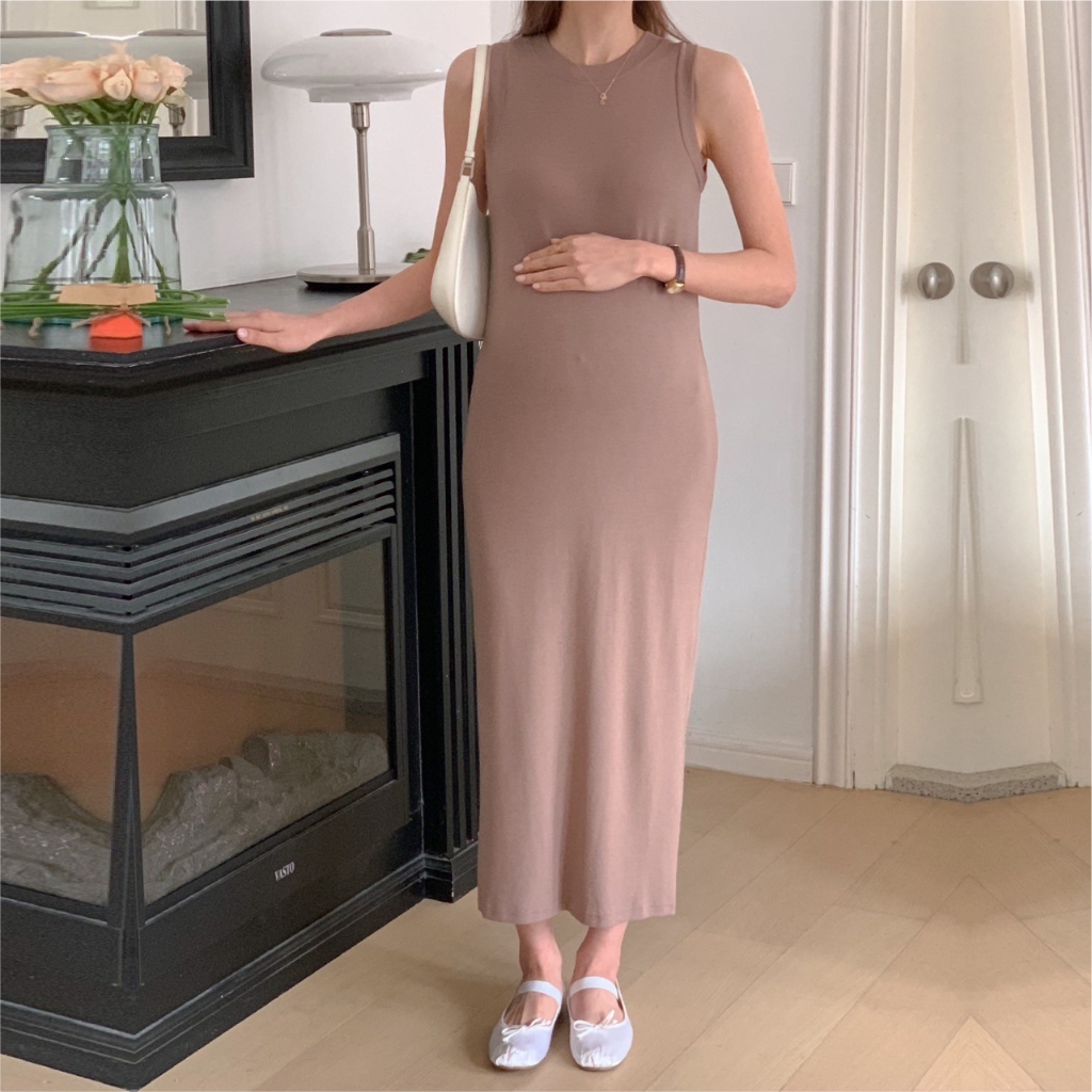 Mamamia孕婦裝 舒適好穿坦克背心孕婦洋裝正韓製 孕婦裝 孕婦裙 洋裝 連身洋裝 孕婦洋裝 [A1970]灰|咖|黑Maternity DressesMamamia孕婦裝
