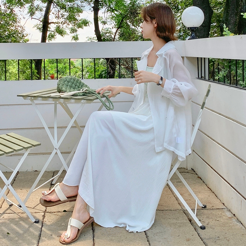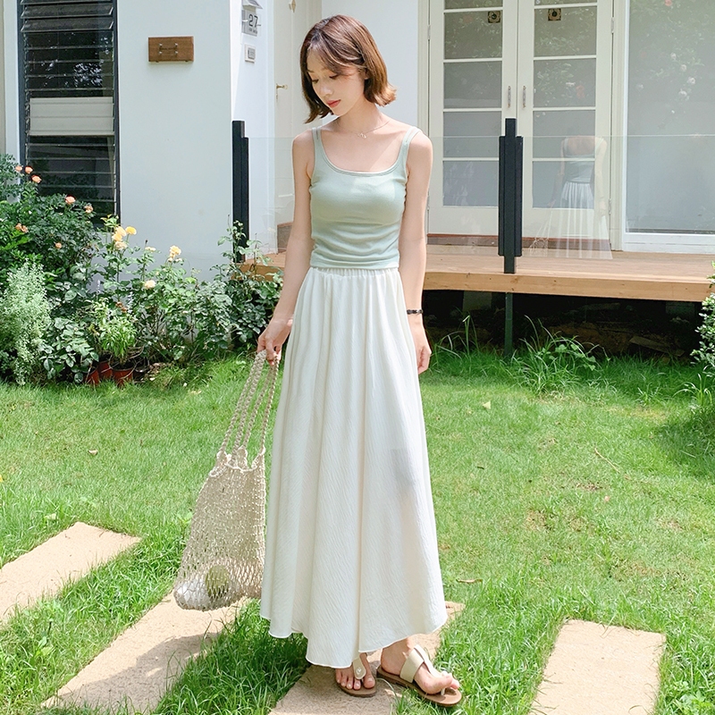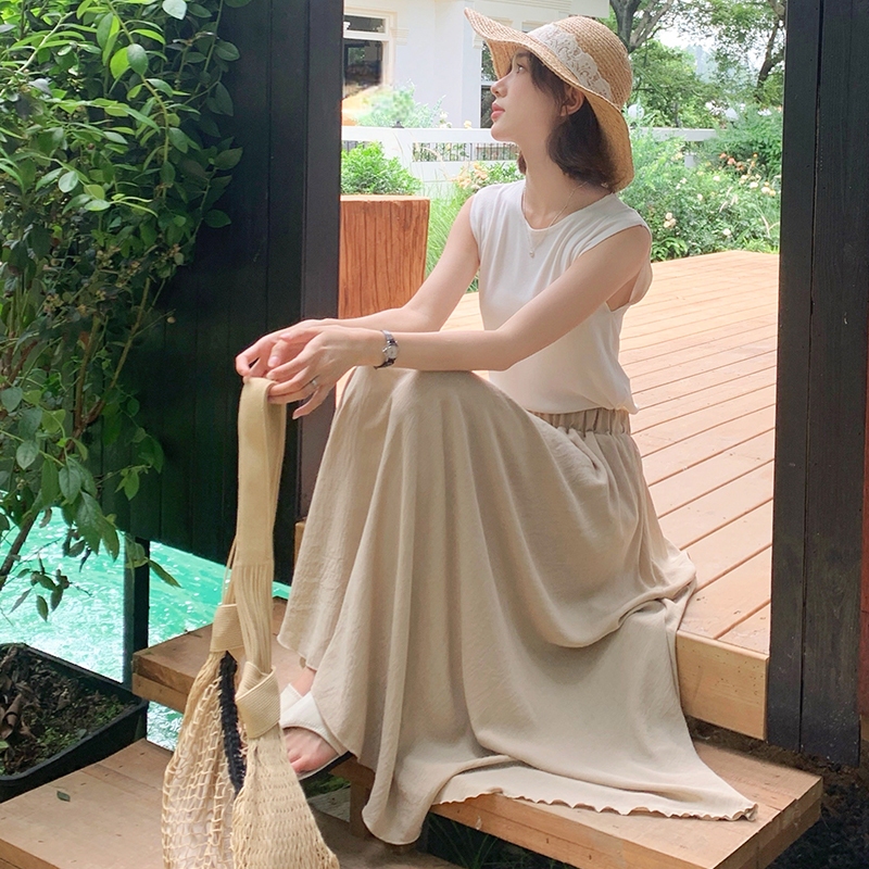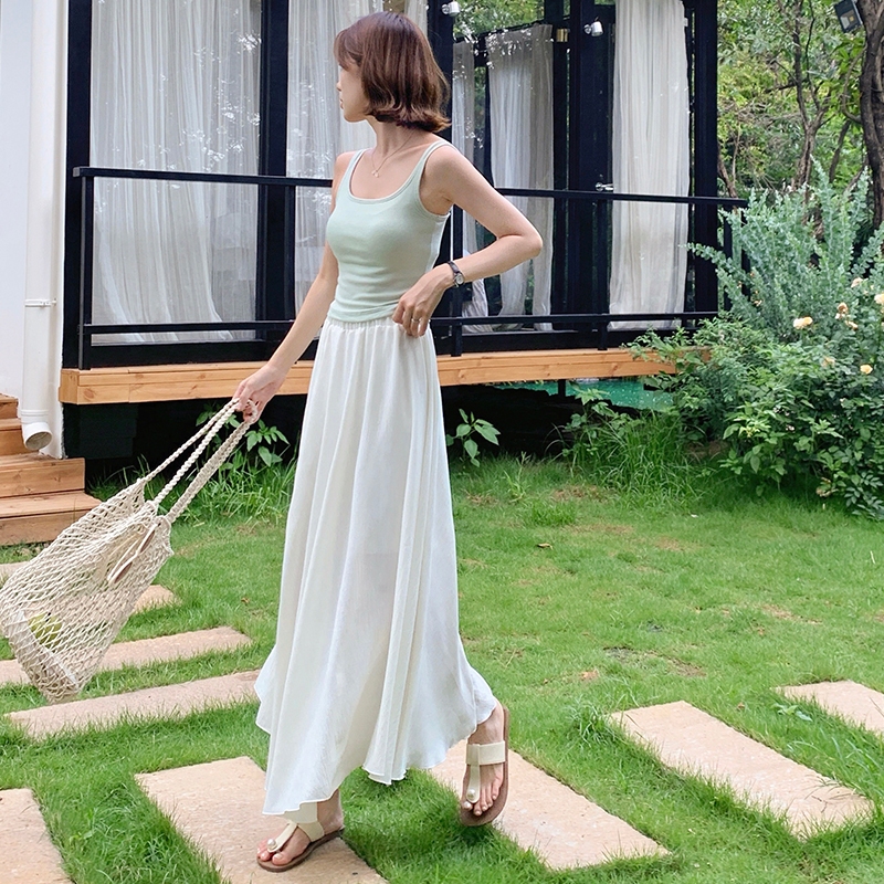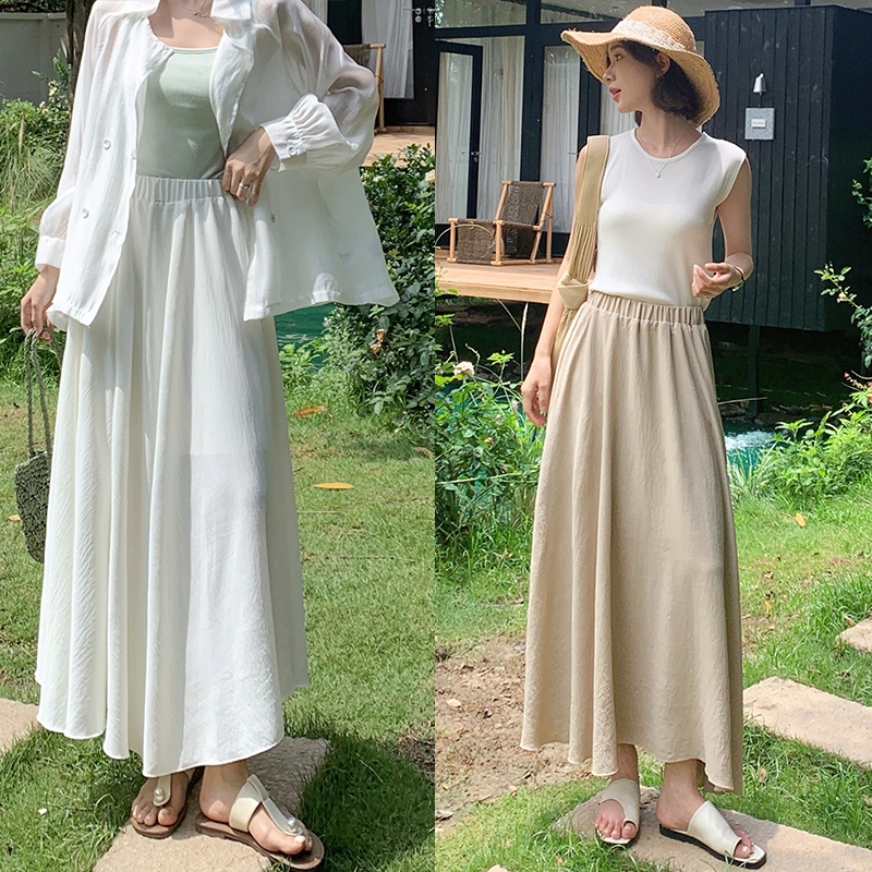 【HARPER】仙女飄逸不規則冰絲長裙 有內裏 | 現貨 涼感 中長裙 裙子【SKE37723J】米白,F|奶茶,FHARPER