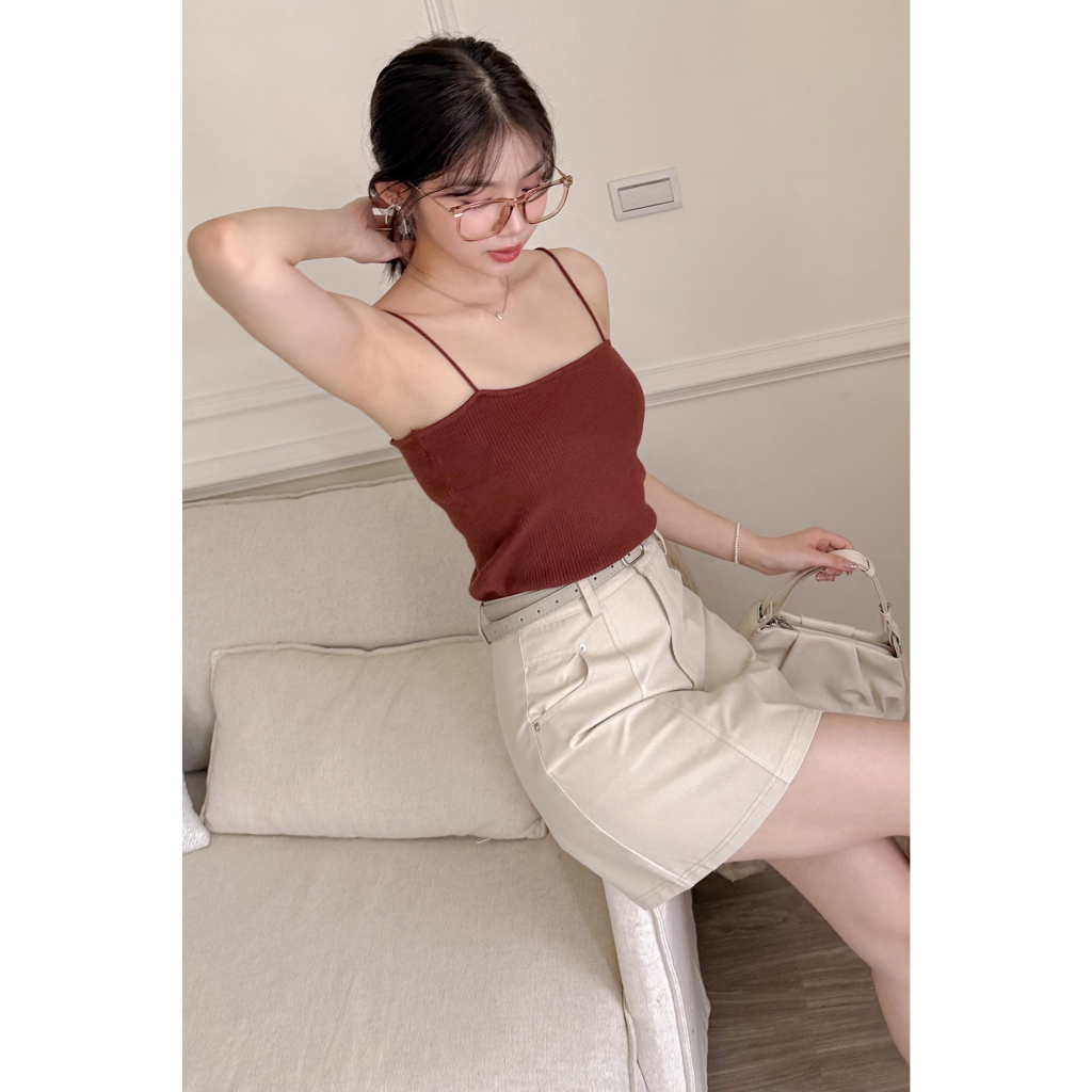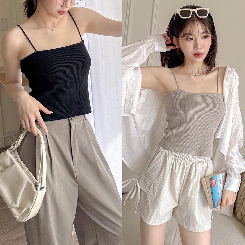 【HARPER】舒適細肩針織背心 | 現貨 背心 上衣 無袖 細肩帶【CLB49117J】白,F|灰,F|紅棕,F|黑,FTanks & CamisolesHARPER