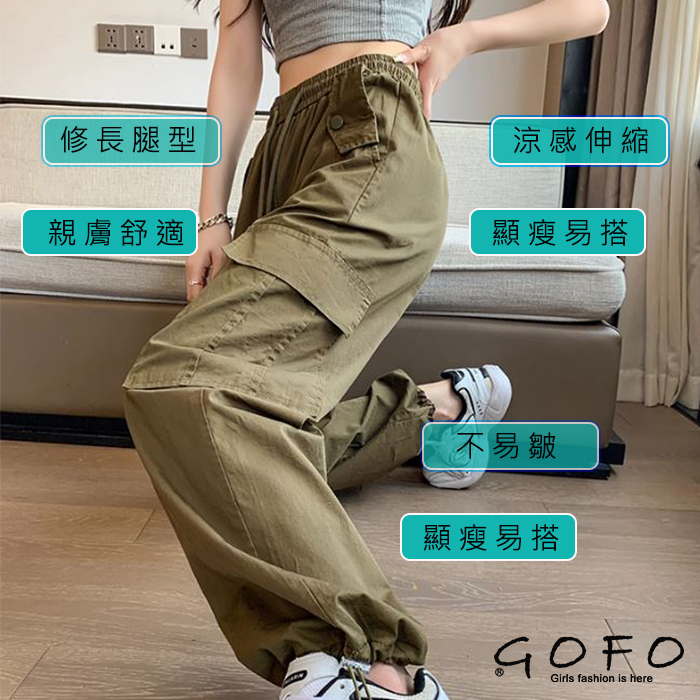 GOFO 長褲 韓系穿搭夏天 高腰顯瘦 薄款涼感不透明 好穿抽繩伸縮 軍工褲 工作褲 闊腿褲 直筒褲 縮口褲 女生夏季黑色,S(建議腰圍23~24腰)|黑色,M(建議腰圍25~26腰)|黑色,L(建議腰圍27~28腰)|黑色,2XL(建議腰圍31~32腰)|綠色,S(建議腰圍23~24腰)|黑色,XL(建議腰圍29~30腰)|綠色,M(建議腰圍25~26腰)|綠色,L(建議腰圍27~28腰)|綠色,XL(建議腰圍29~30腰)|綠色,2XL(建議腰圍31~32腰)|灰色,S(建議腰圍23~24腰)|灰色,M(建議腰圍25~26腰)|灰色,L(建議腰圍27~28腰)|灰色,XL(建議腰圍29~30腰)|灰色,2XL(建議腰圍31~32腰)PantsGOFO 台灣賣家 台灣出貨 台灣現貨