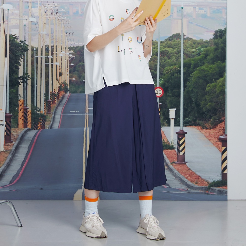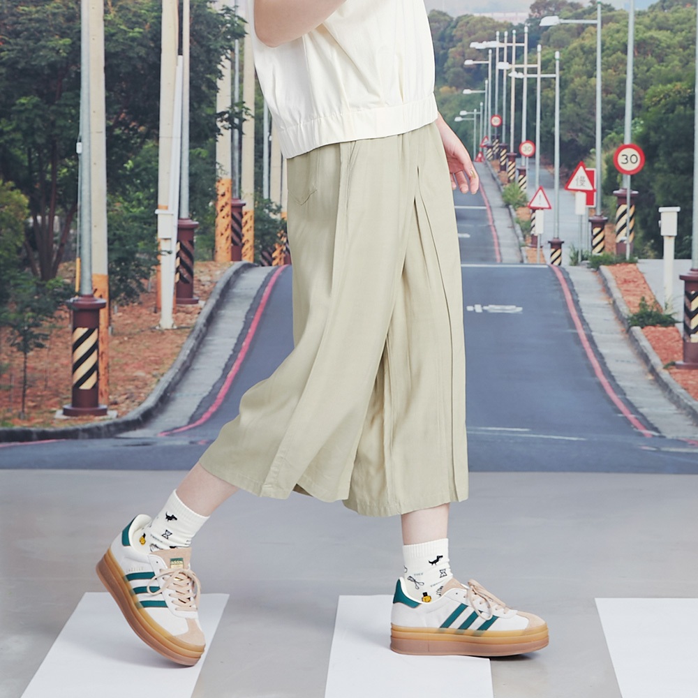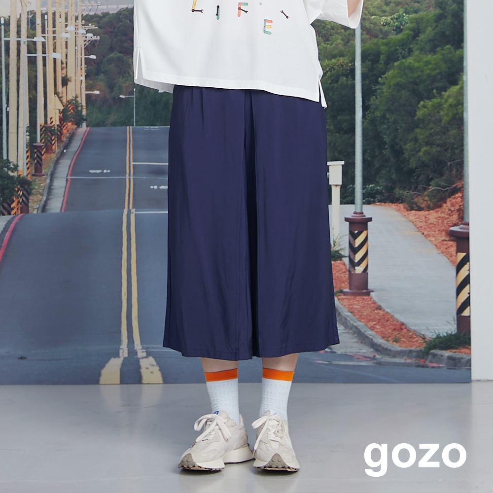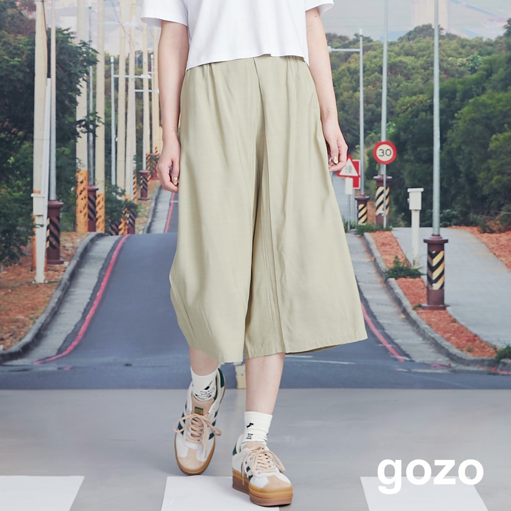 【gozo】涼感垂墜打褶造型七分褲裙(深藍/綠色_M/L) | 女裝 修身 休閒深藍,M|深藍,L|綠色,M|綠色,LPantsgozo 品牌旗艦店