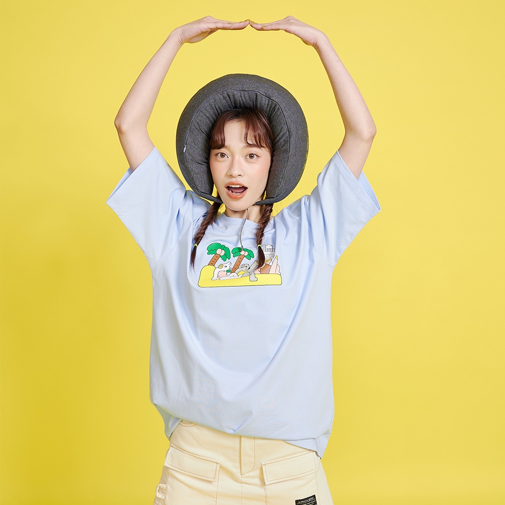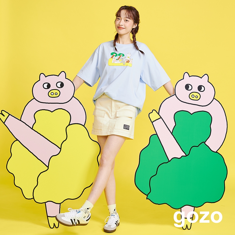【gozo】➤gozoX小高潮 屏東好chill日光浴豬腳好呷T恤(淺藍_ML/OVERSIZE) | 女裝 短袖T恤淺藍,M-L|淺藍,OVERSIZET-shirtsgozo 品牌旗艦店